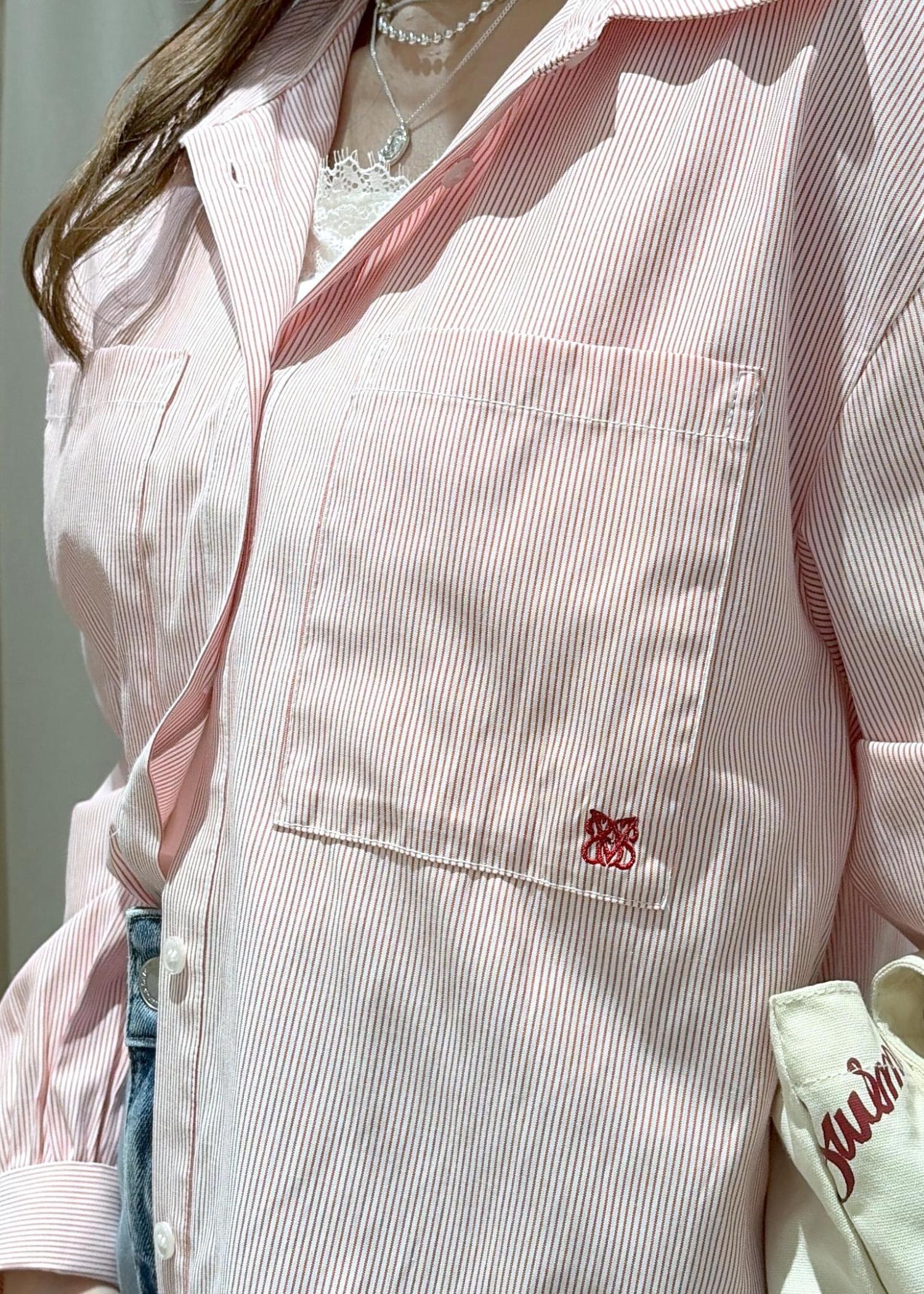 VIS【SWIMMER×VIS】ポイント刺しゅうストライプシャツレッド系 / F¥6,589レビューSWIMMERコラボの刺繍シャツです♪