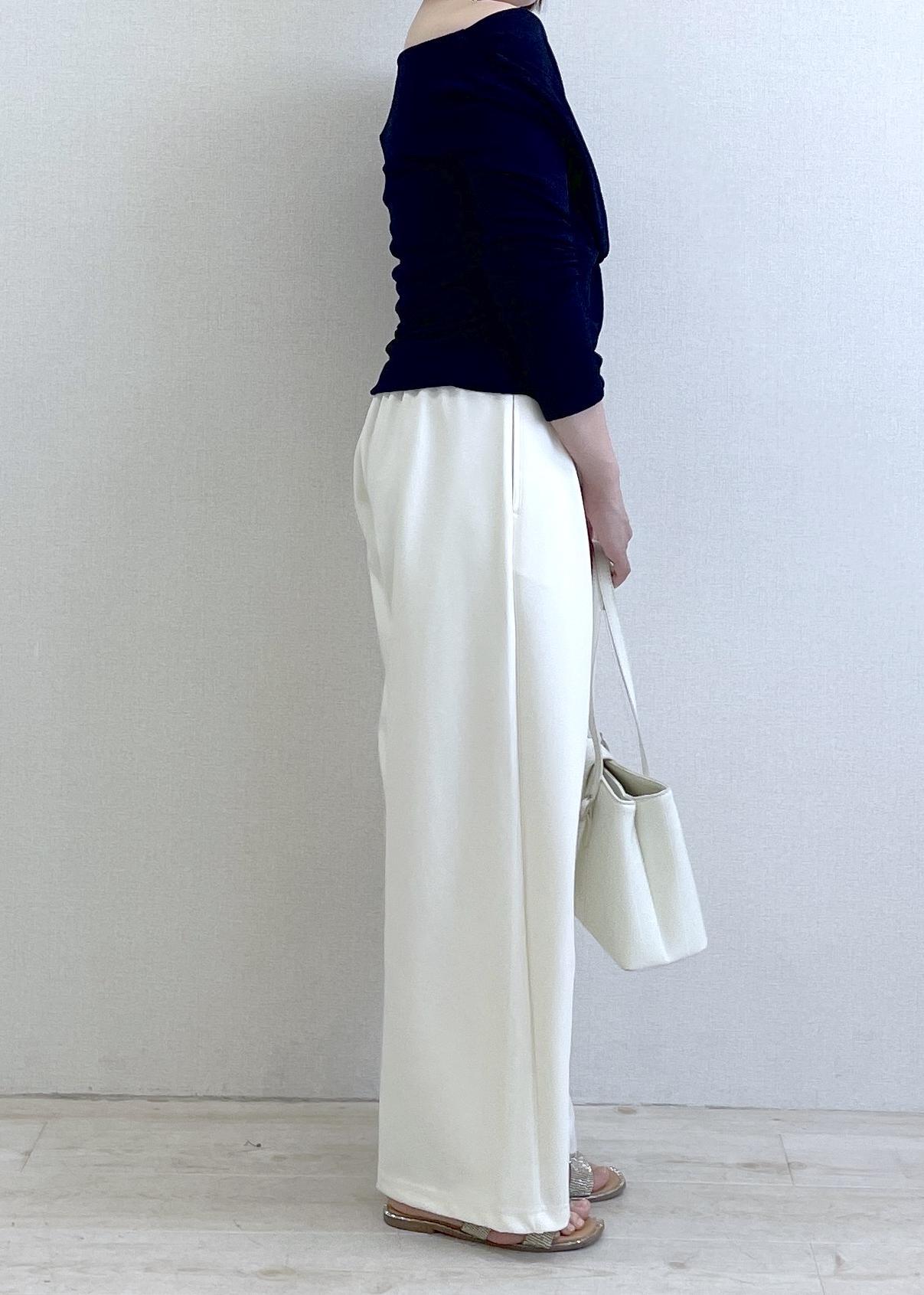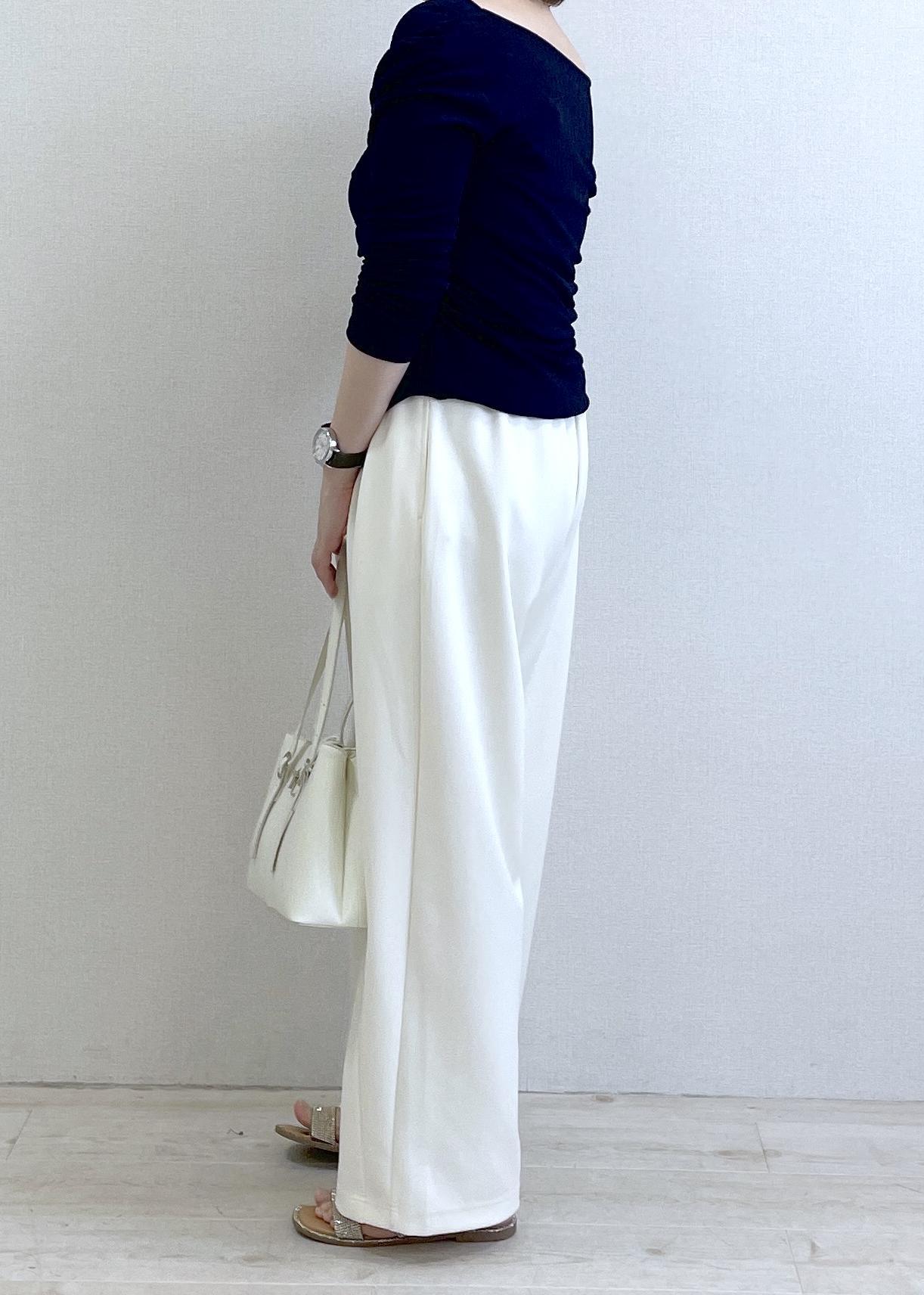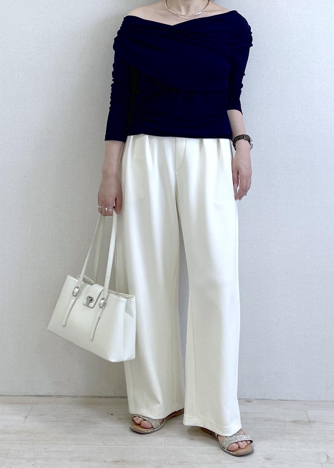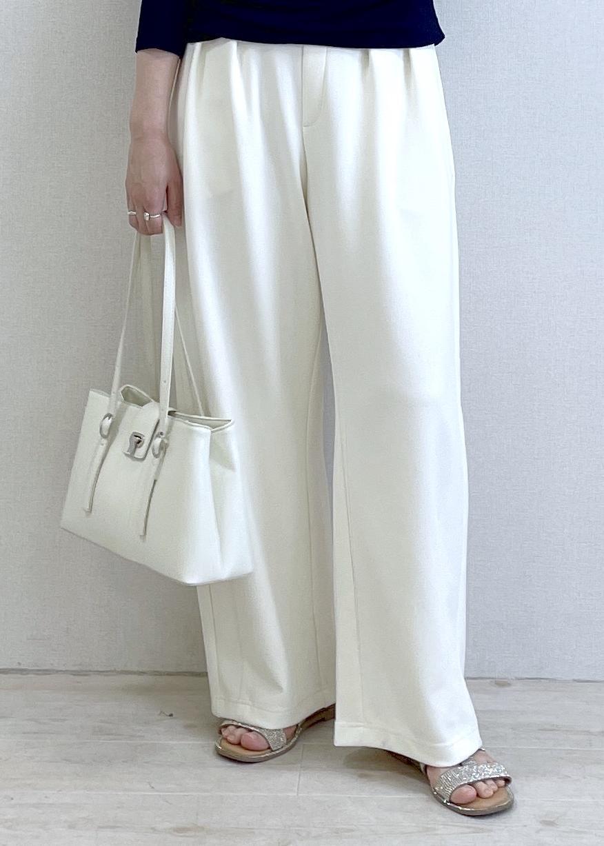 VISカットカーブスラックスパンツオフホワイト / F¥6,589レビューモチっとサラッとした素材が、とても肌触りと着心地がよく、ずっと着ていたくなります!