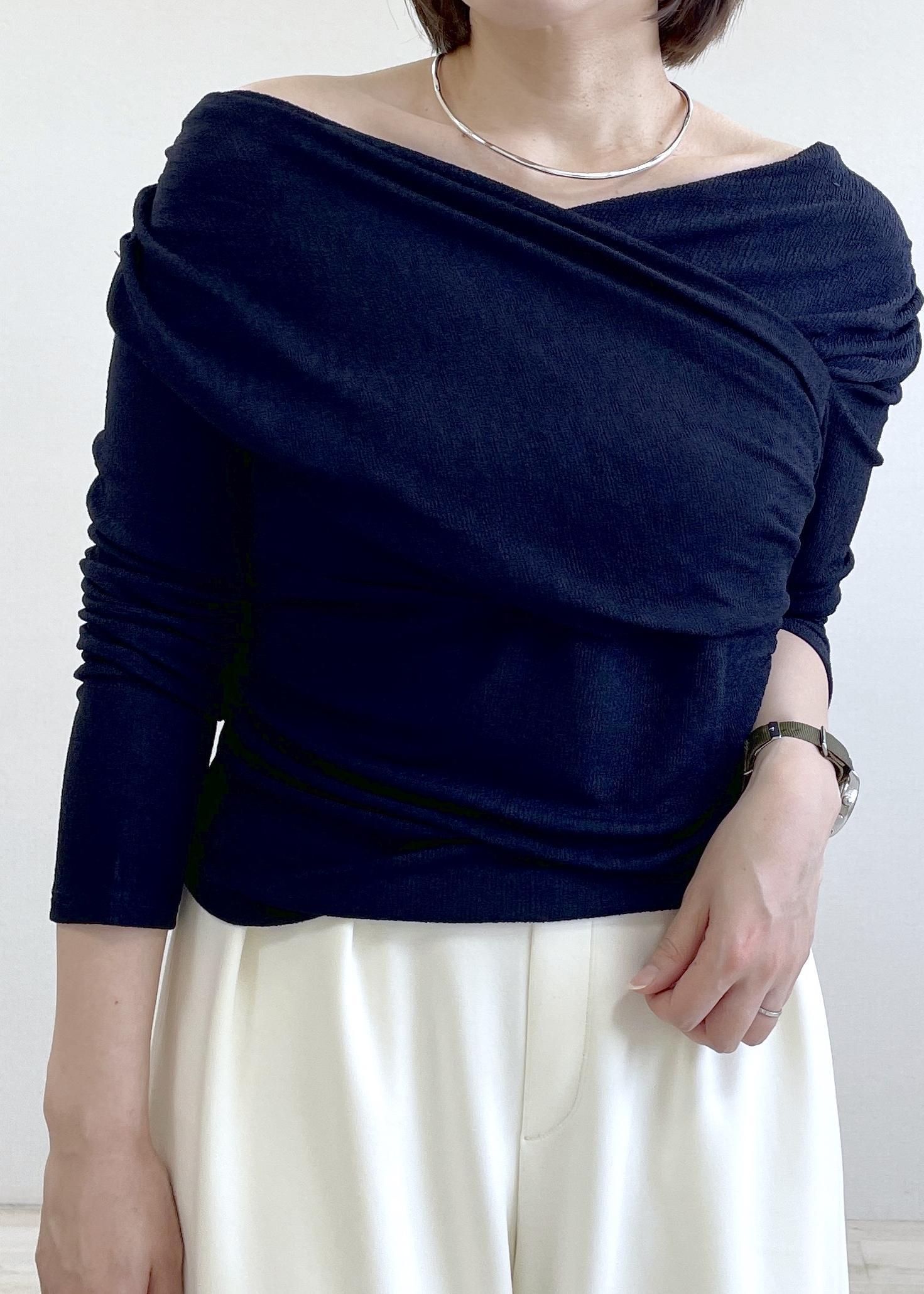 VISシアードレープトップス/イージーケアネイビー / F¥4,939レビューオフショルにもなるドレープトップス。
