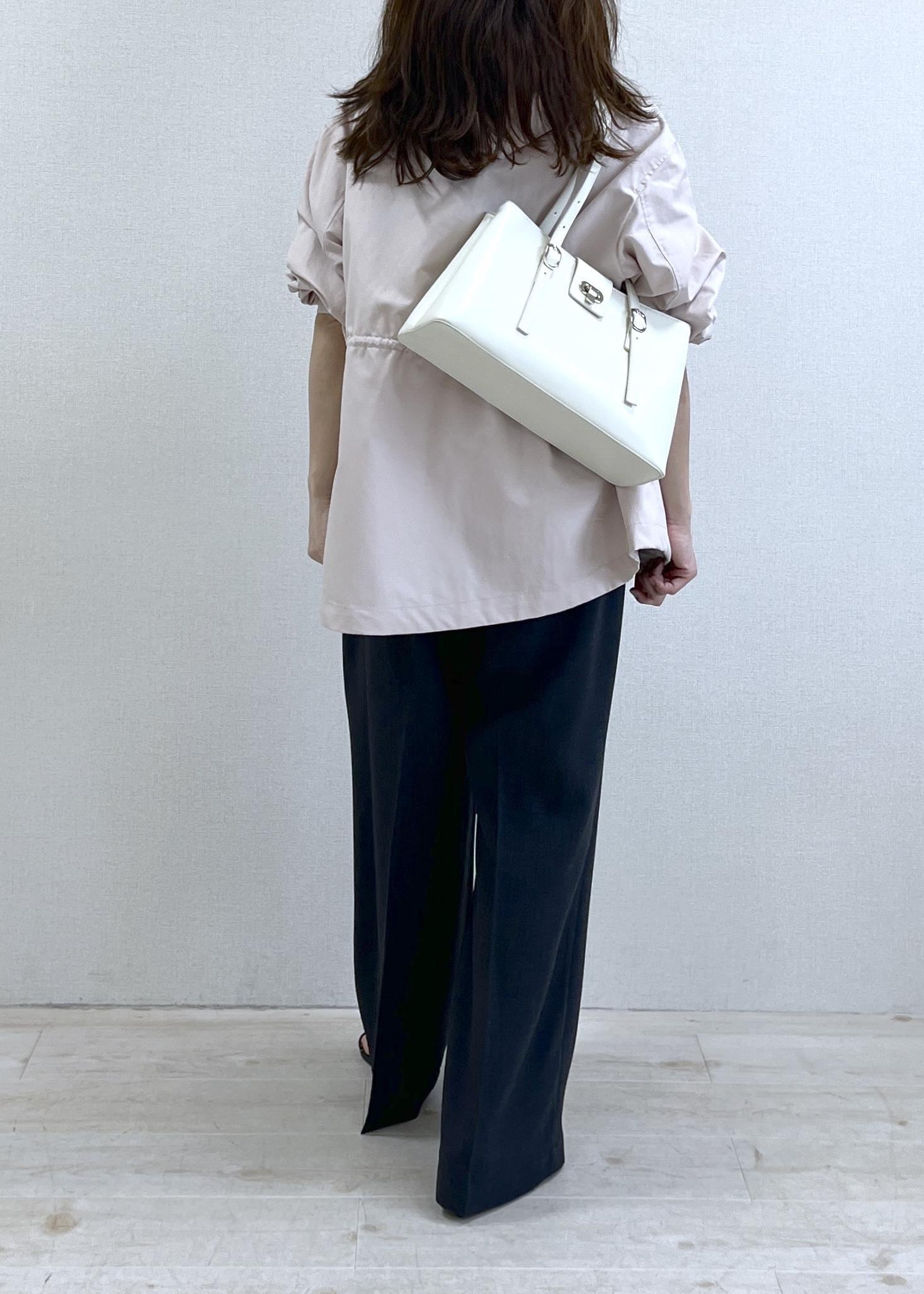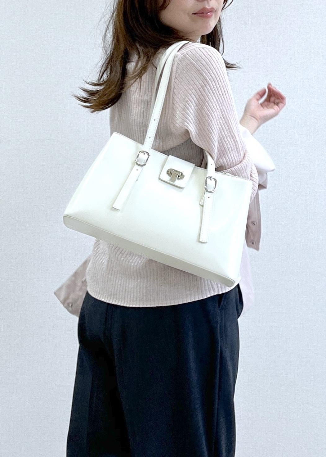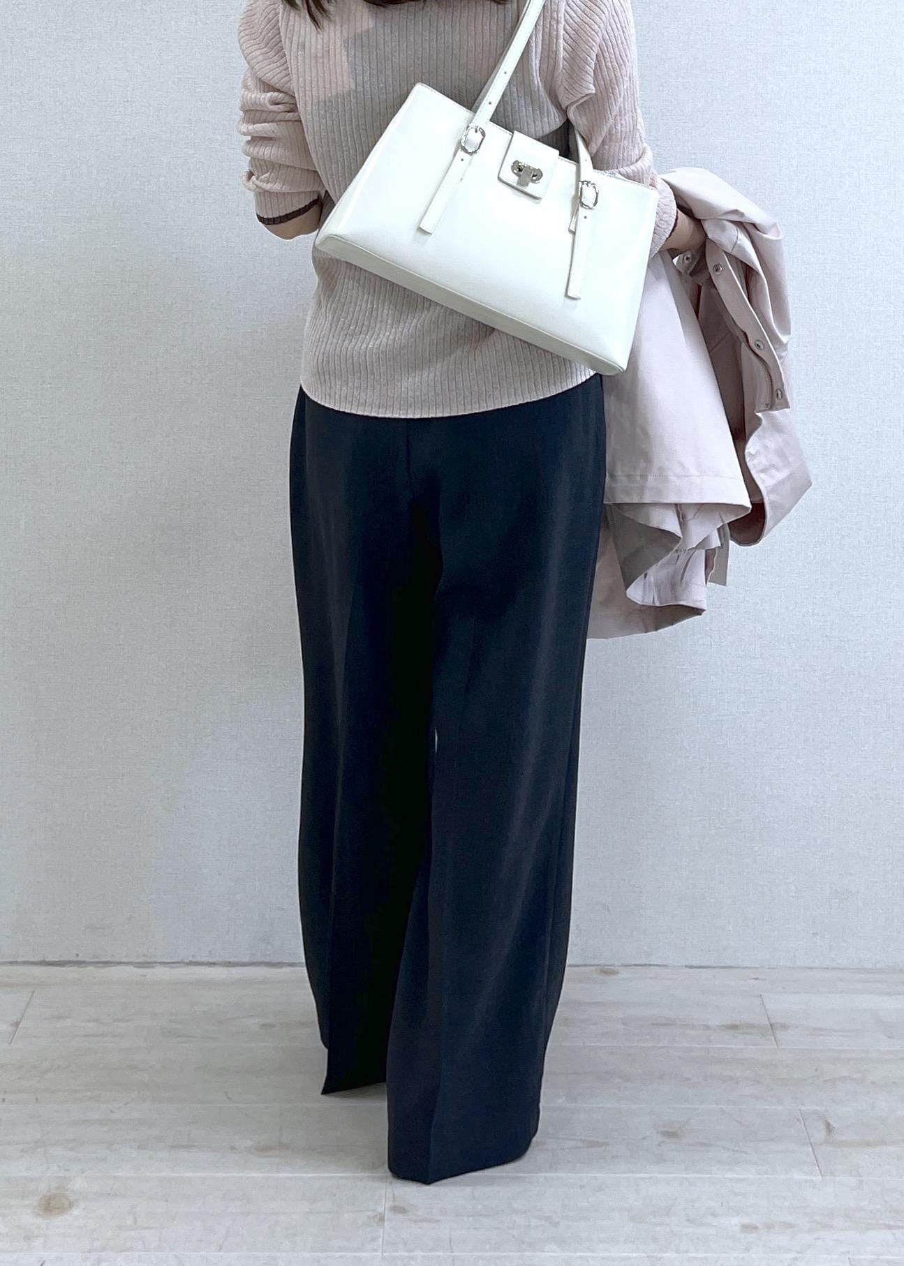 VIS2層ロングハンドルバッグキナリ / F¥6,919レビュー長めのハンドルで肩掛けしやすく、とっても軽い!荷物もしっかり入れられる大きすぎないバッグなので、小柄さんでもバランスがとりやすいです。カチッと見えしすぎることなくカジュアルスタイリングにも合わせやすい。柔らかい素材感でゴワつきすぎません。レディライクなデザインが◎