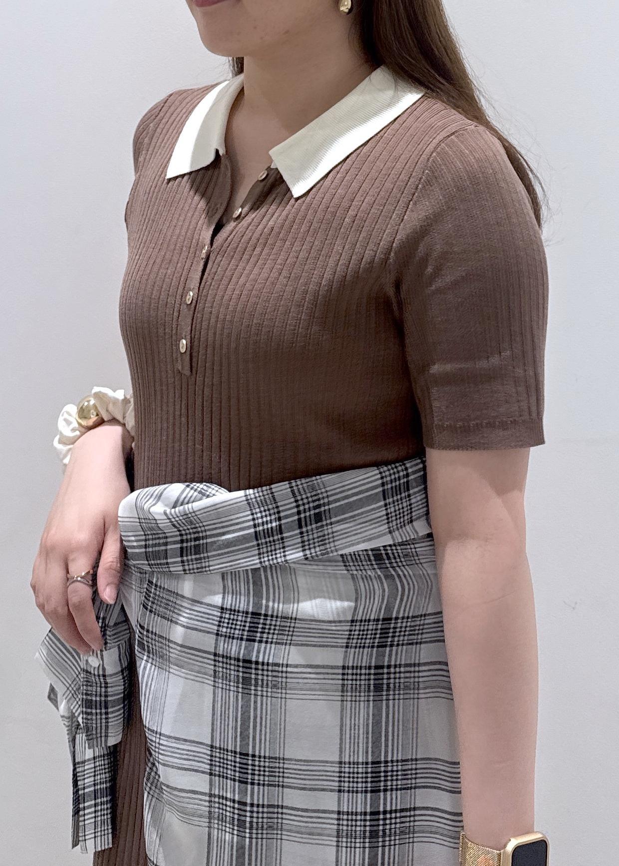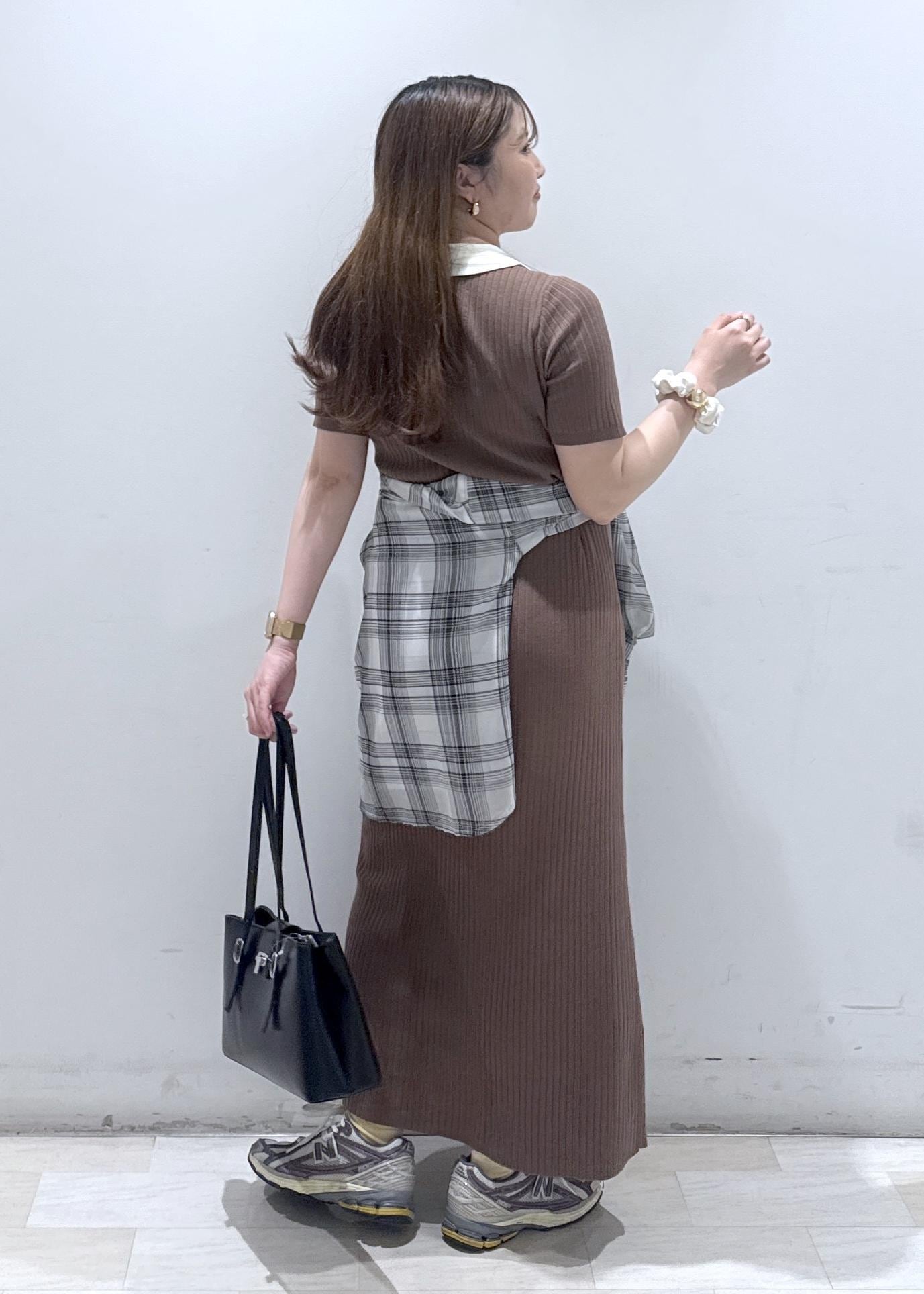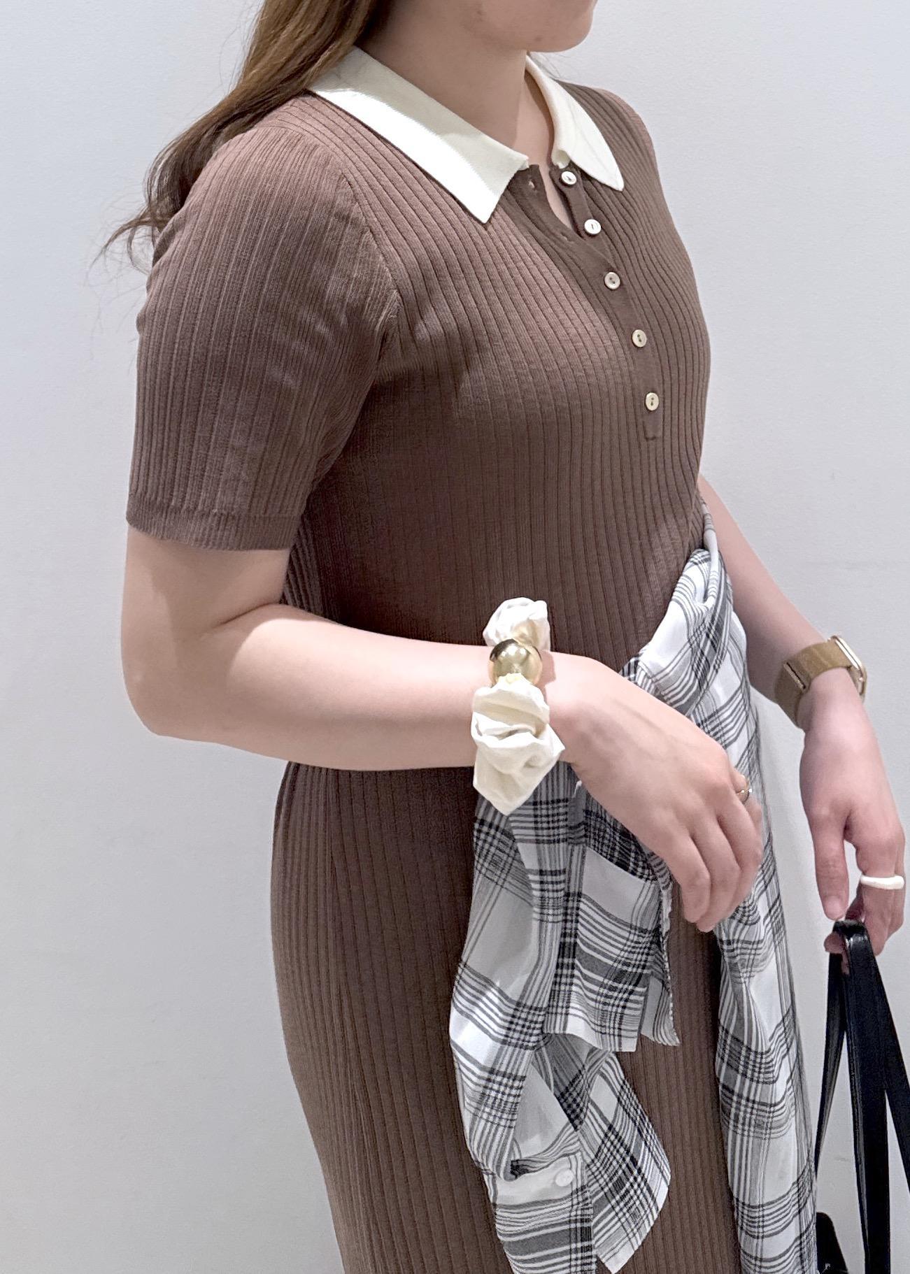 今回は新作で入荷しました、襟ポロワンピースにチェック柄のシャツを腰巻きにして体型カバーを隠しつつスッキリとしたコーディネートにしました。休日のどこかお出掛けの日にぜひ着ていただきたいワンピースです