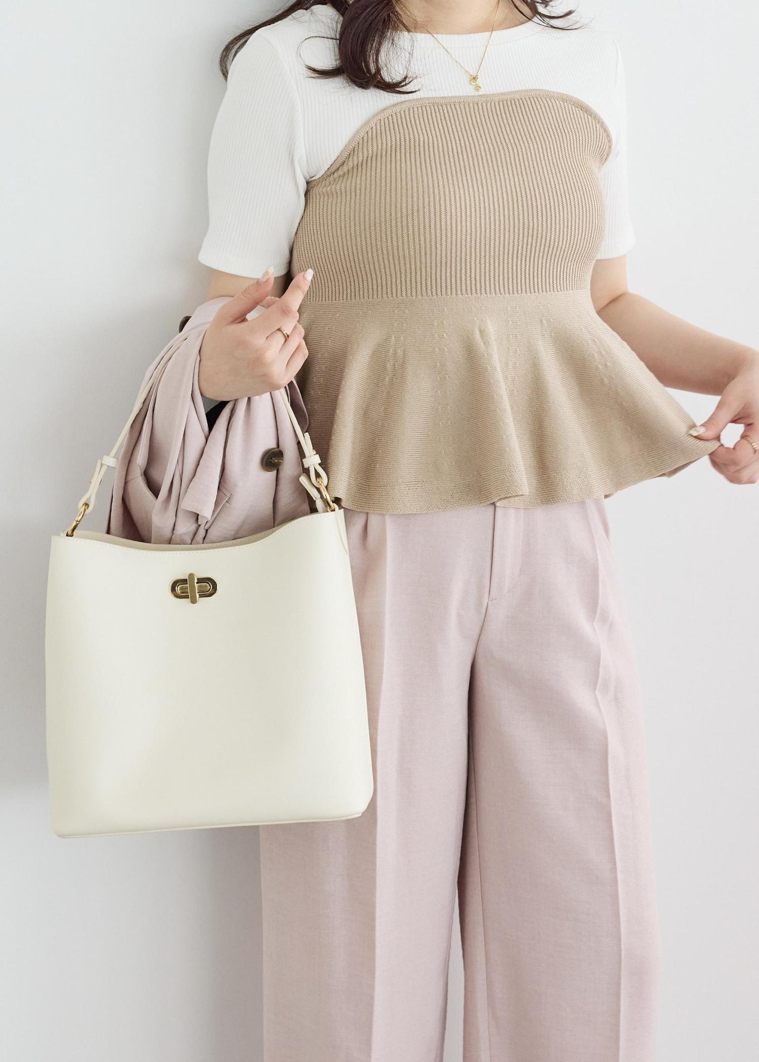 小物はホワイト系で合わせ、綺麗めシーンに使いやすいスタイリングにしてみました◎