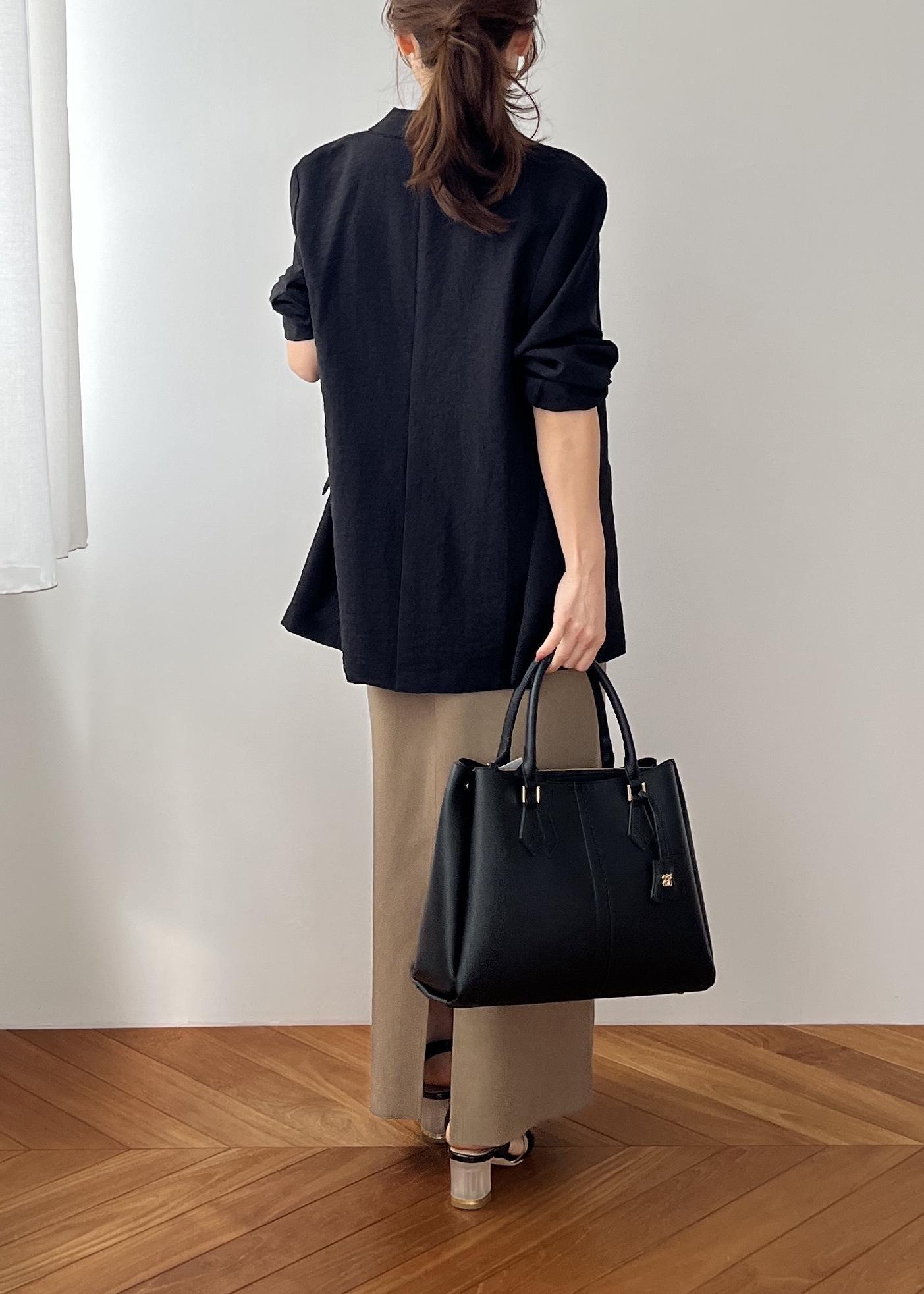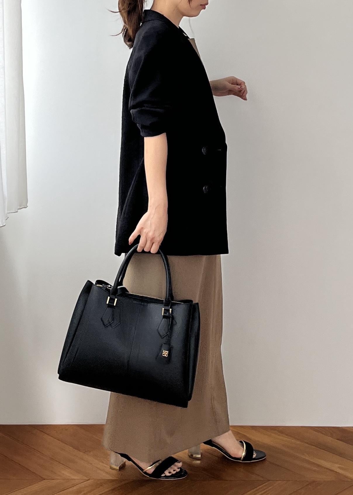 VIS【COHINA×VIS】チャーム付き2WAYトートバッグ/A4対応・軽量ブラック / F¥7,909レビューA4サイズの書類もしっかり入れられる大きさですが、小柄の私が持ってもまとまりがよく、バランスがとれました。いつも待たされている印象の大きめバッグですが、こちらのデザインは小柄さんも似合う拘りデザインがつまってます。軽くてシンプルなのでコーディネートの邪魔にならず、馴染んでくれます。