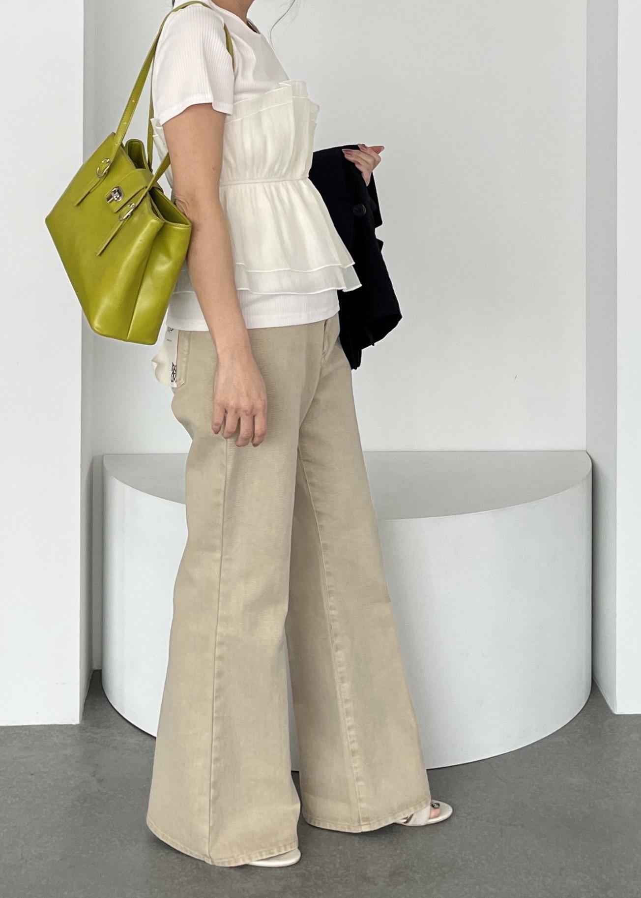 2BUY10%OFFVISカラーフレアデニムパンツベージュ / M¥8,899レビュー152cmでS着用し、ペタンコ靴でも床につきませんでした。キレイなフレアシルエットと後ろポケットが高めの位置にあり、脚長効果抜群!今年は細身シルエットも欲しいですよね。柔らかいデニムでゴワつきなく着用できました。履き馴染みがでてくるとより着心地が良さそうです!どのカラーも素敵なので、迷い中…こちらの画像はMサイズ着用。