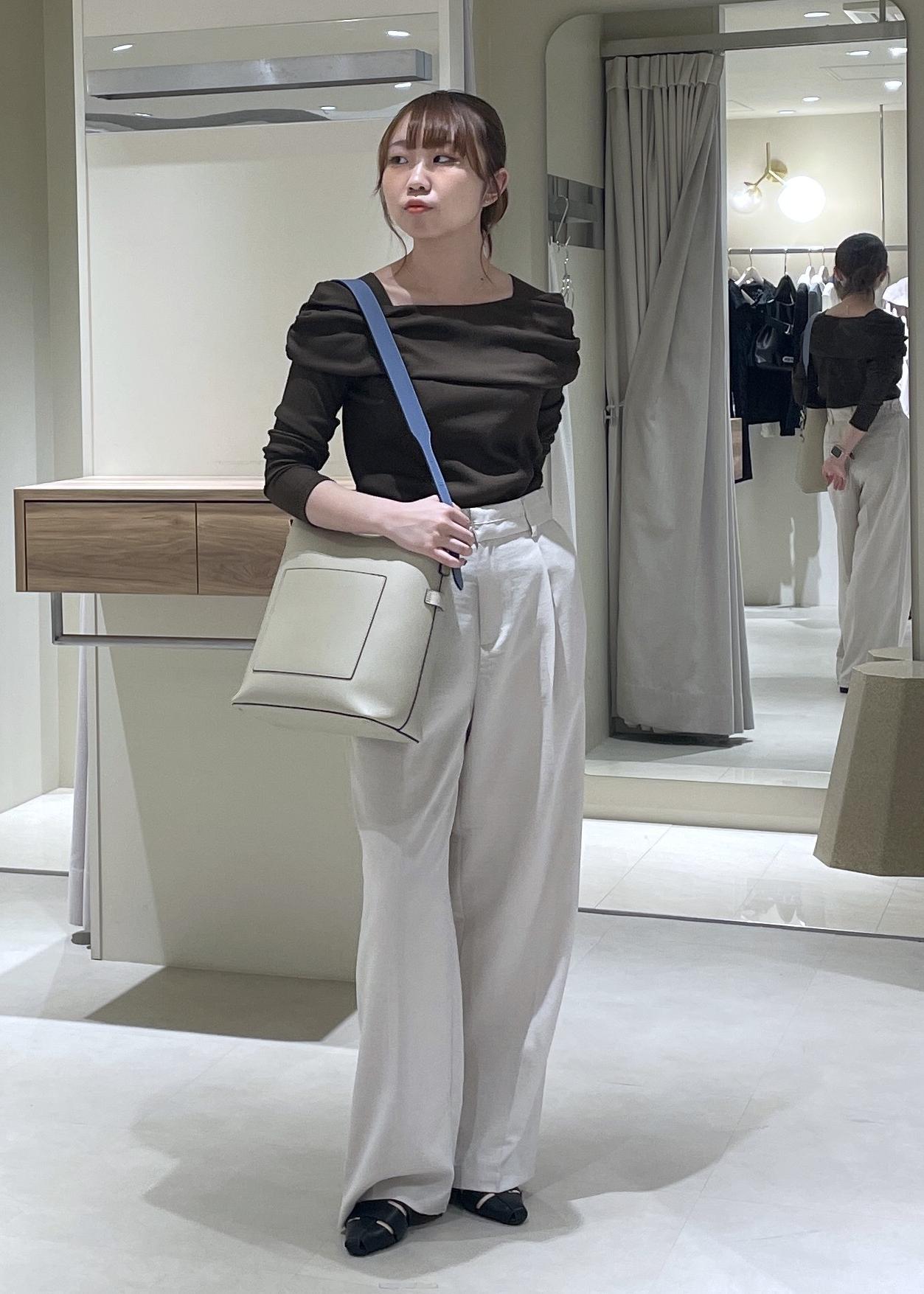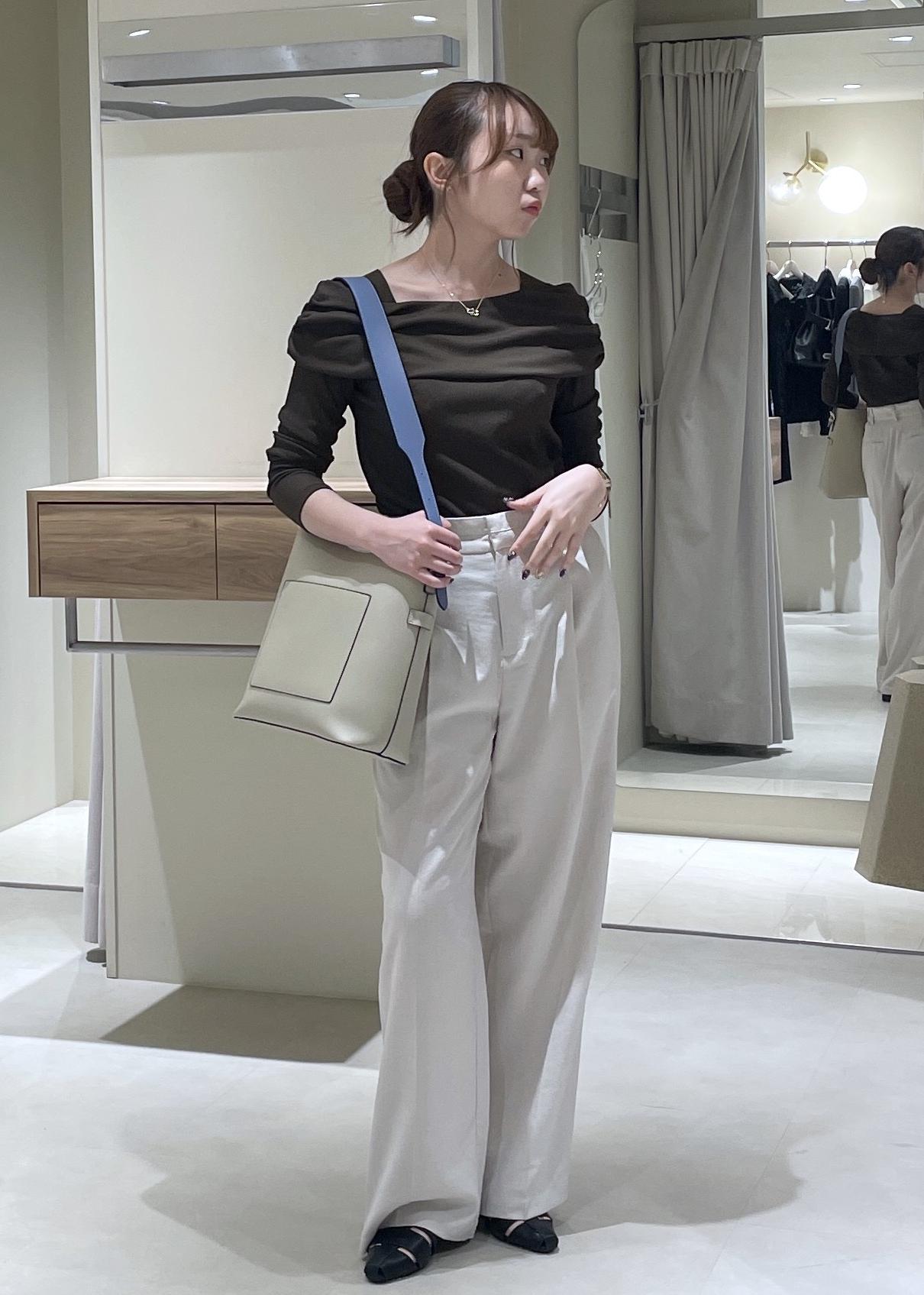 春から夏の終わりまで使っていただける麻風素材で、薄手で着た感じもとても軽いです。ボタンでウエスト調整可能な点も推しポイントです。 -