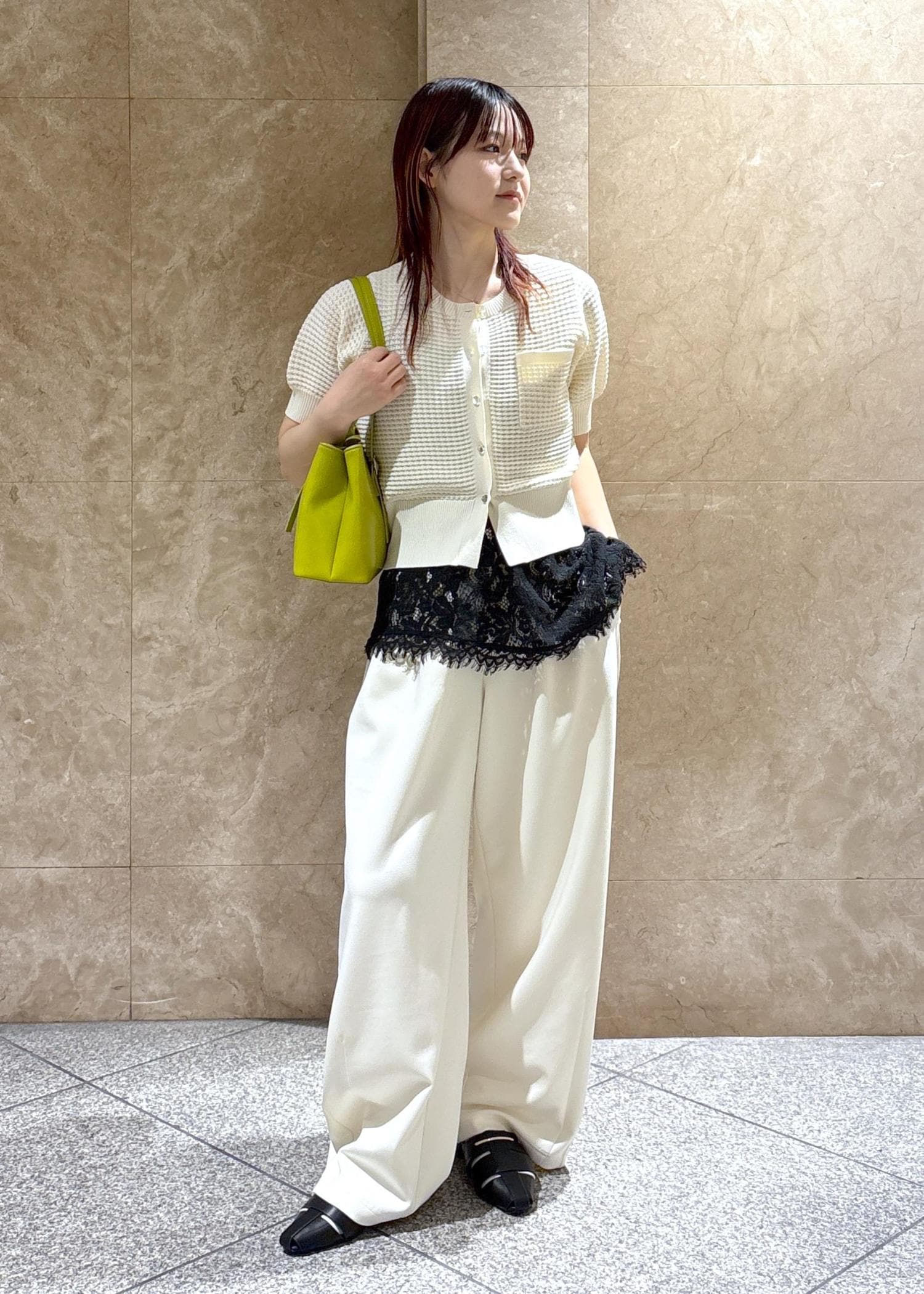 全体的にゆったりと着れるサイズ感で、テロンとしている生地感なので涼しげありです。