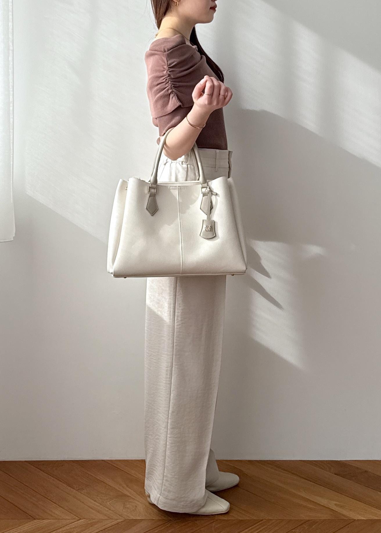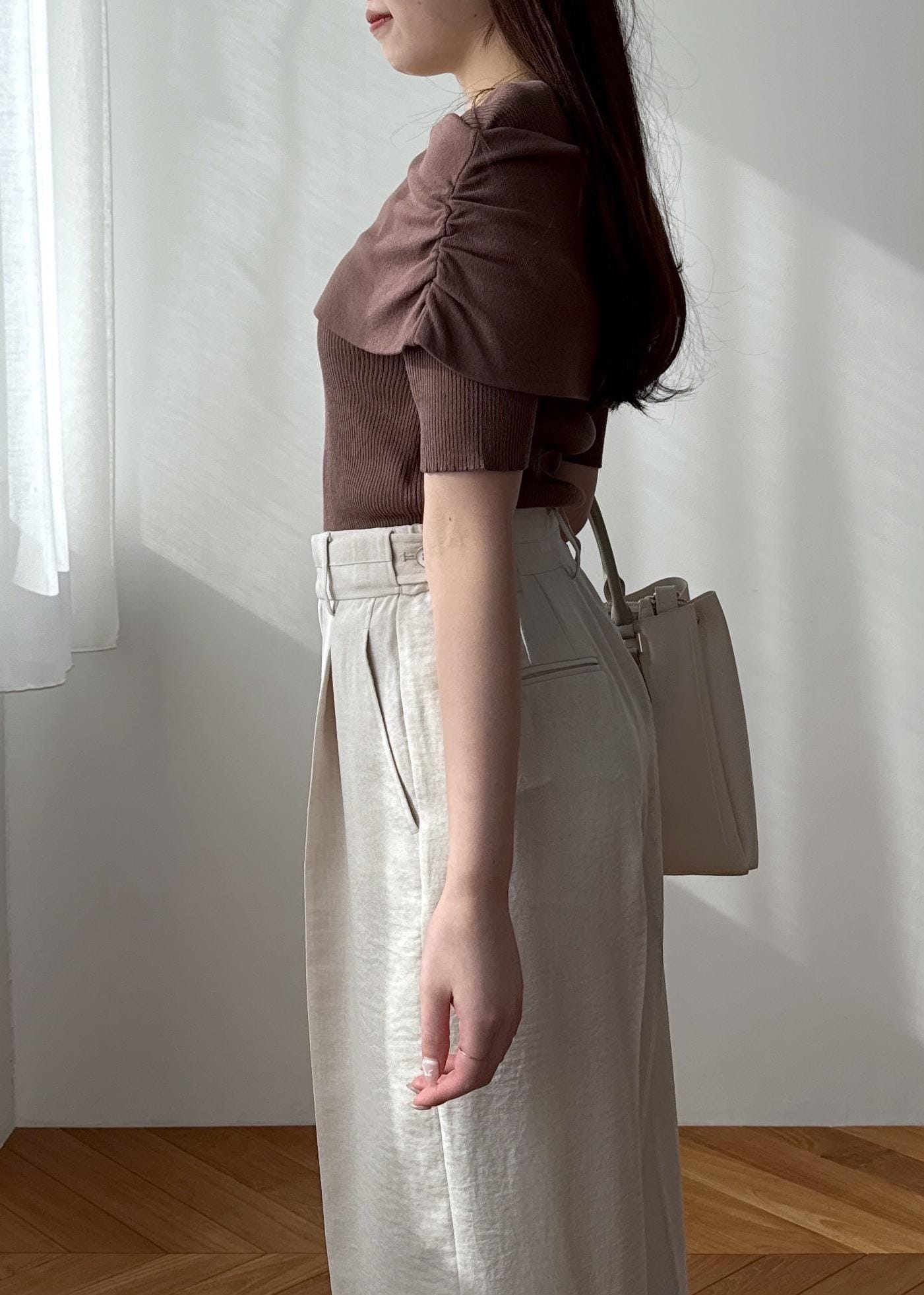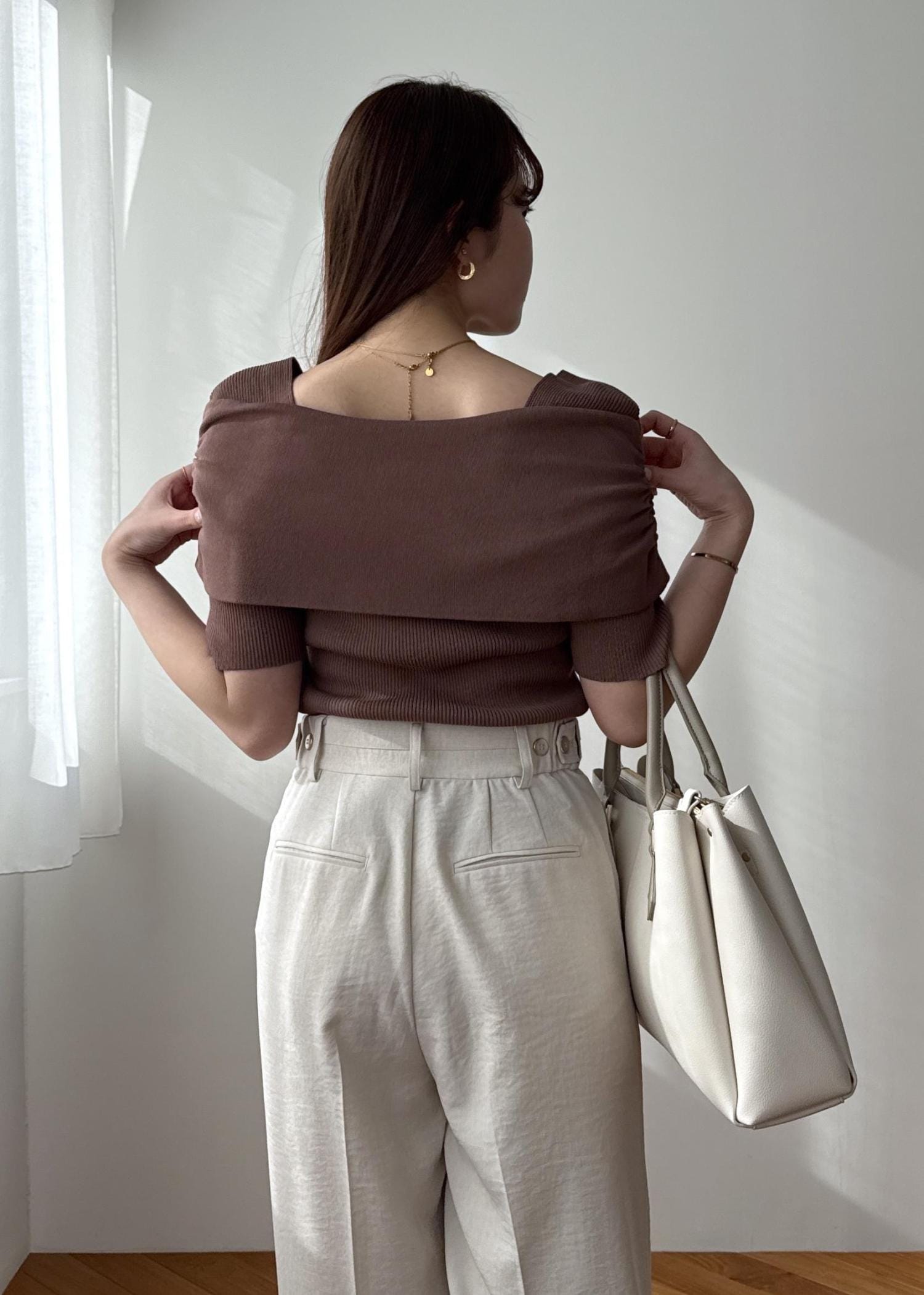 大人気のマチ付きオフショルニットに美easyリネンライクワイドパンツを合わせてすっきりお仕事スタイルに!◎