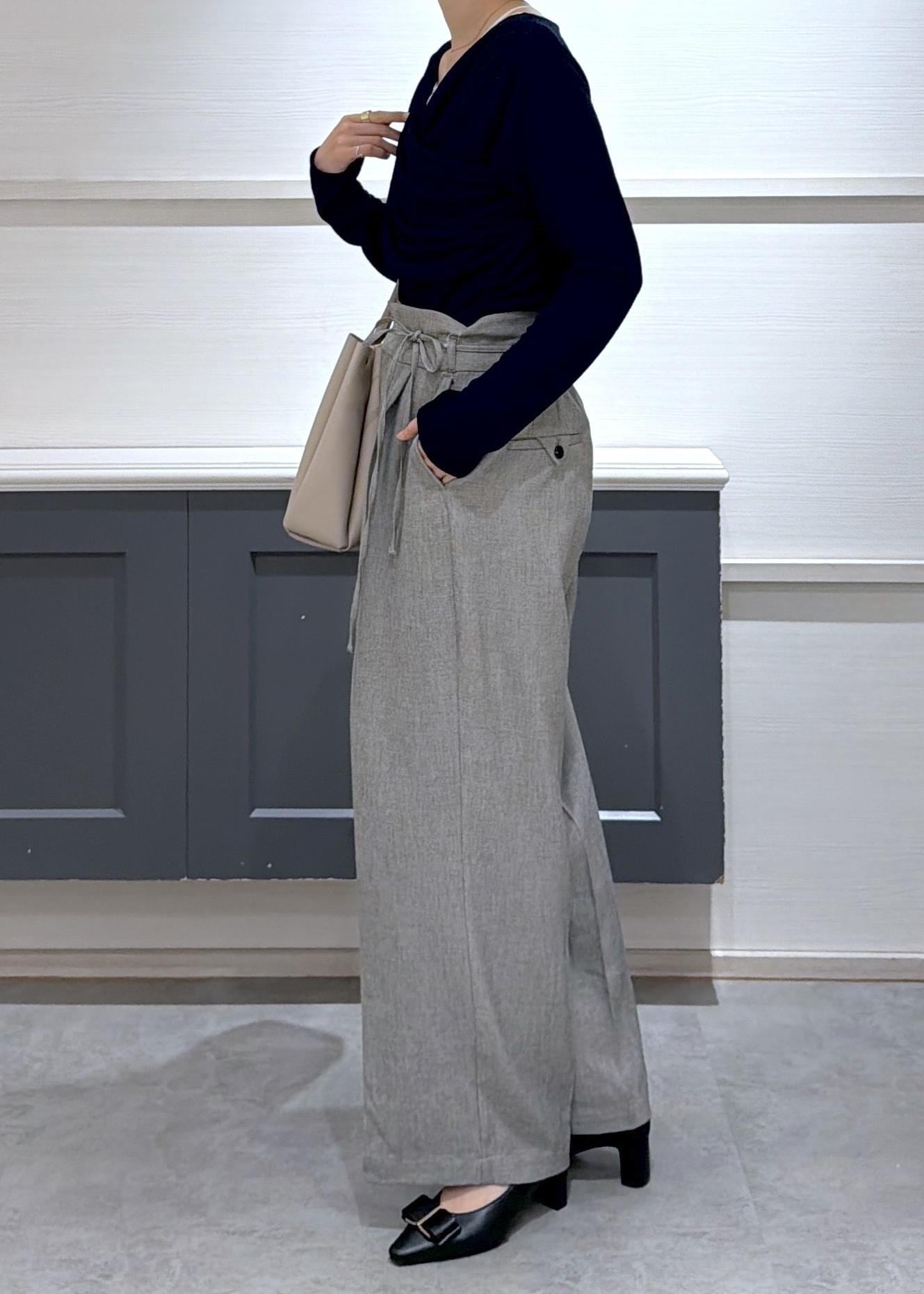 2BUY10%OFFVISサマーツイードリボンベルトパンツ/UVケア・イージーケアグレー / M¥6,589レビュー166cm/Mサイズ着用