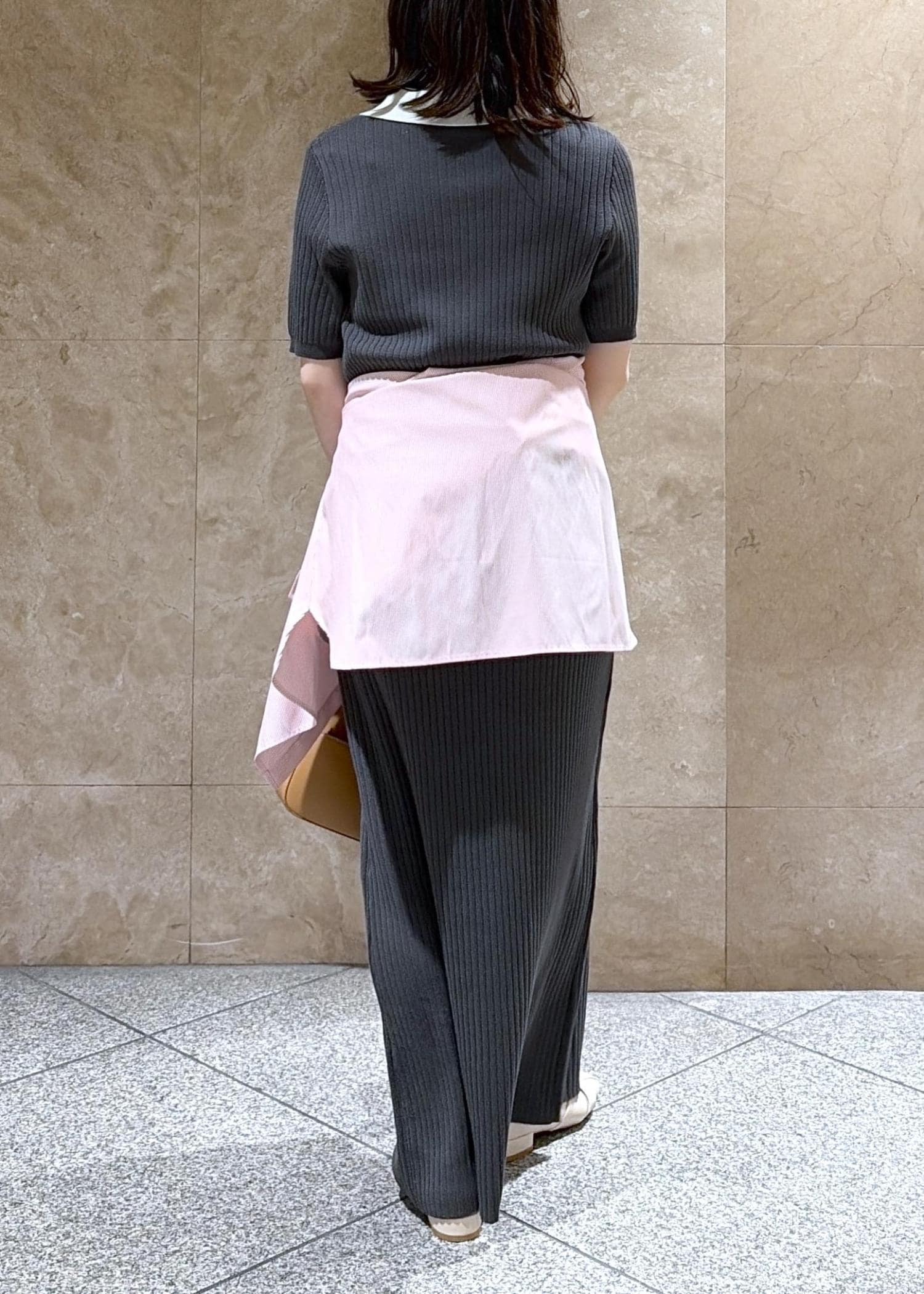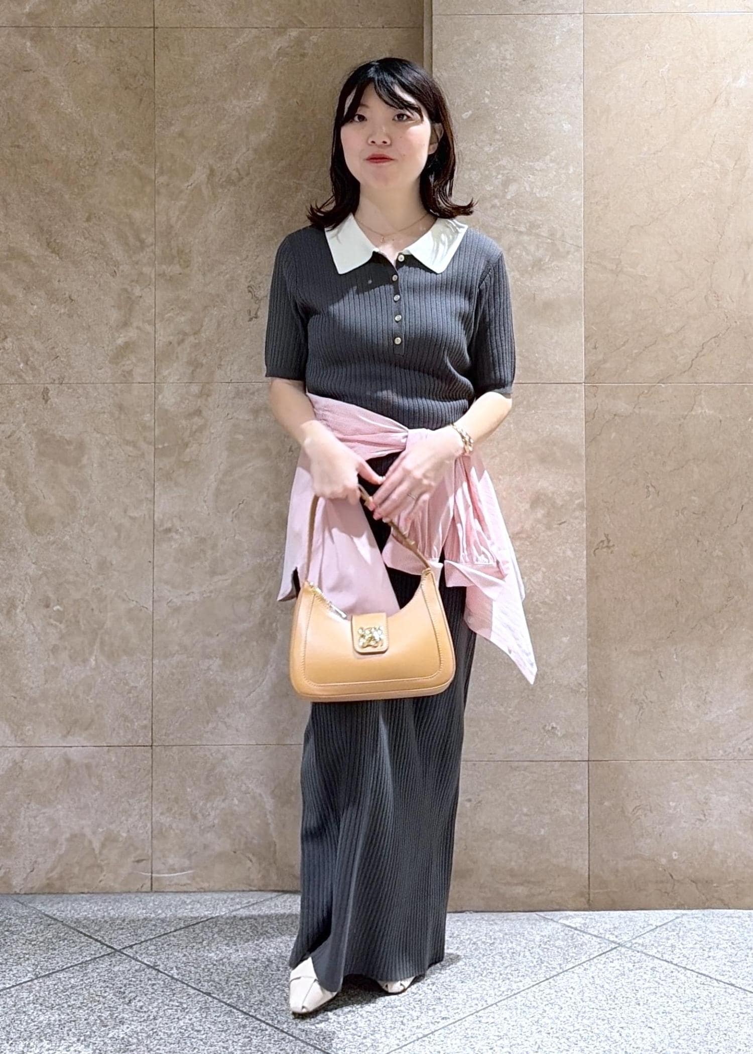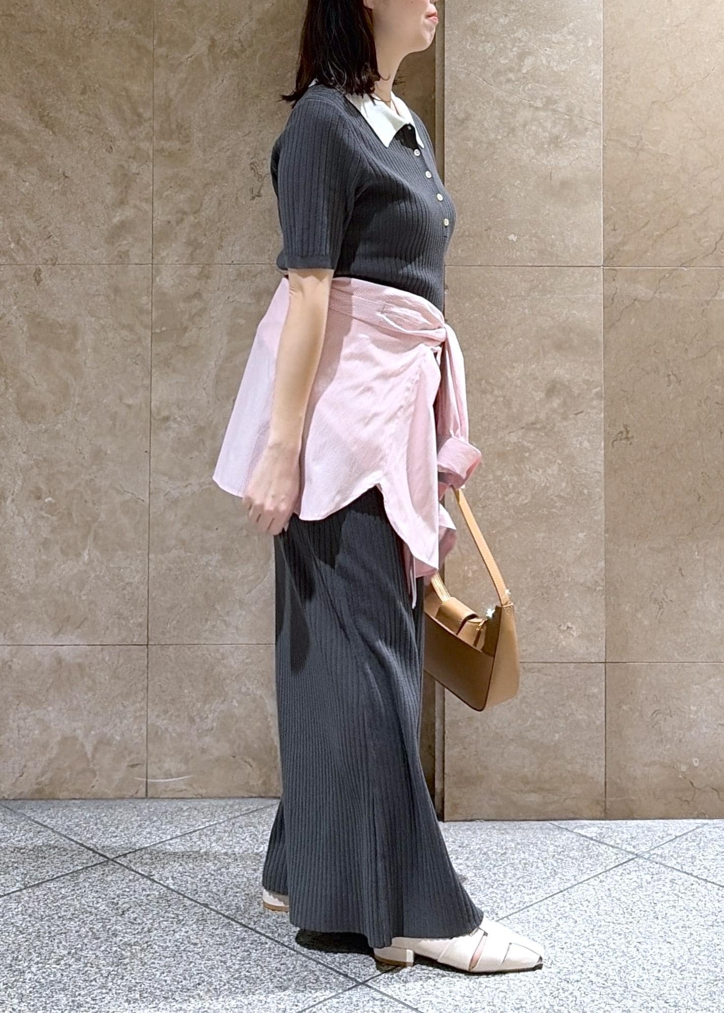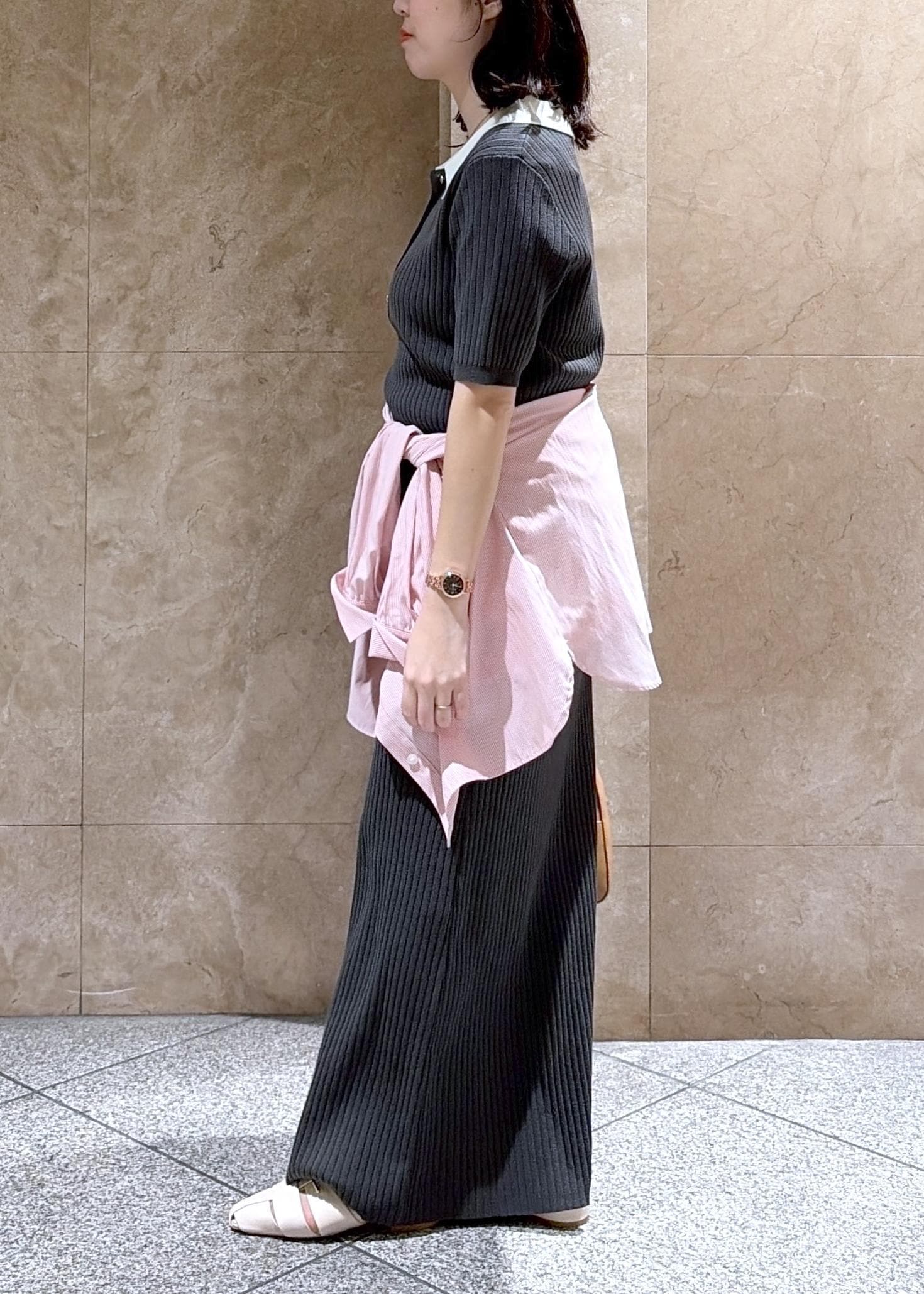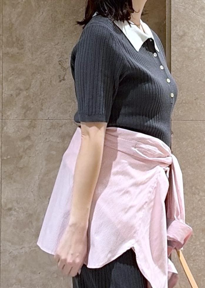 VISポロ襟ニットワンピースチャコール / F¥7,689レビュー149cmでFサイズ着用し、地面に着くぐらいの丈感だったので、低身長さんだとヒールを履くのがオススメです◎