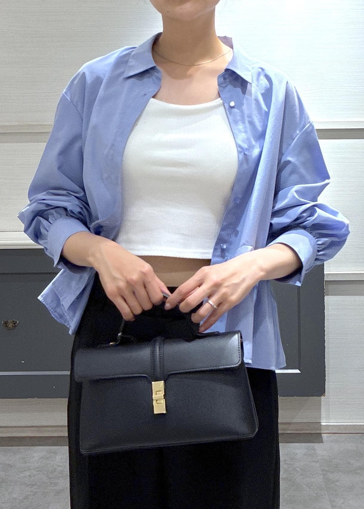 オフィスではボタンを全て止めて着用、お出かけ時はボタンを開けて開放感を出すなど様々な着こなしを楽しめるスタイリングです♡