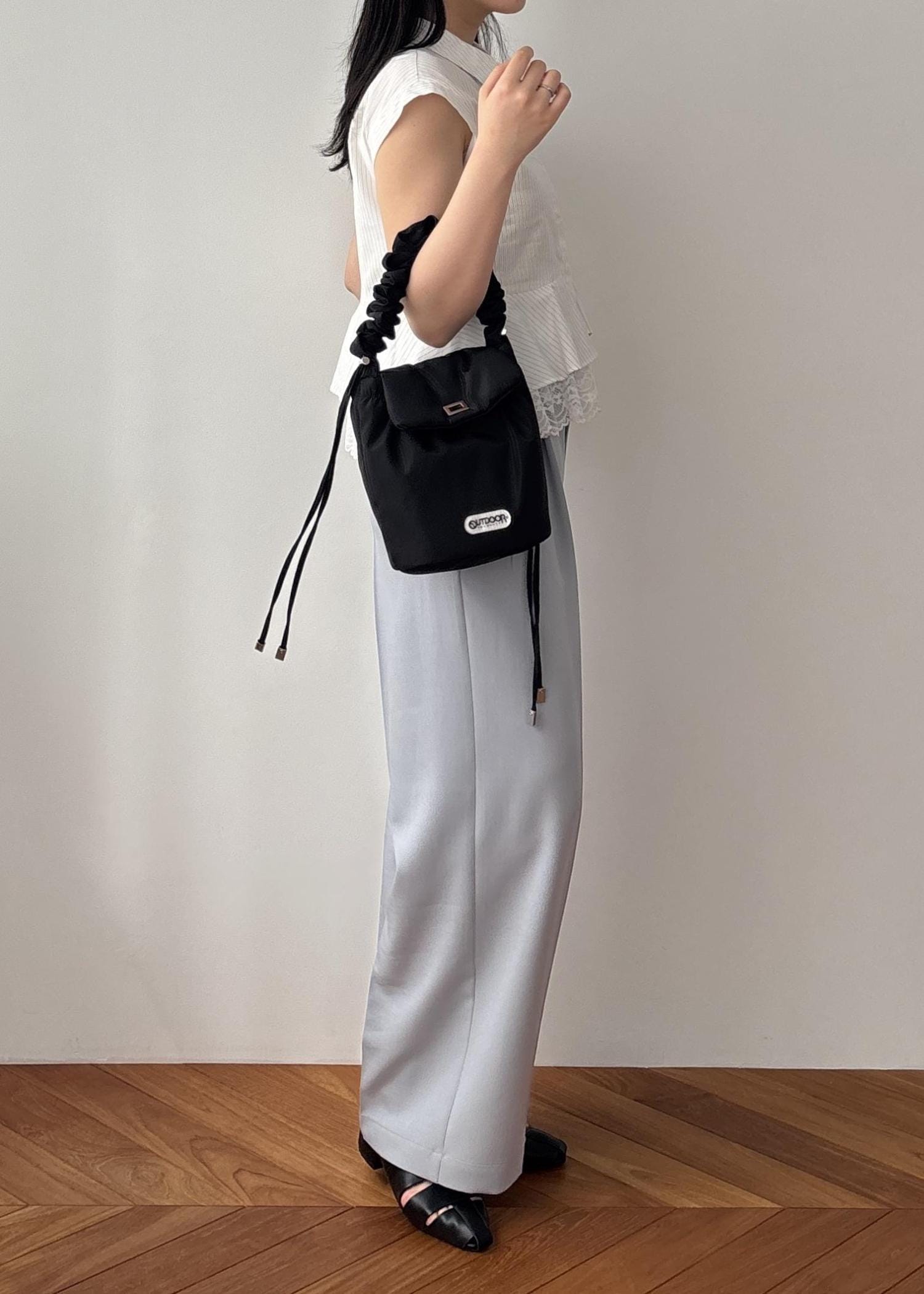 くしゅっと持ち手の長さを変えられて、斜めがけも可能です◎
