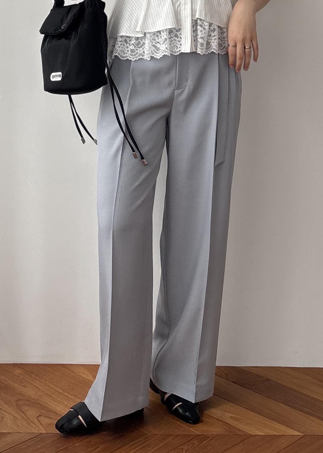 予約VISベルトディティールタックワイドパンツ/イージーケア・接触冷感サックス / M¥6,589レビュー165cmでMサイズ着用、くるぶし上あたりの丈感です!ウエストばベルトで調節出来ます!