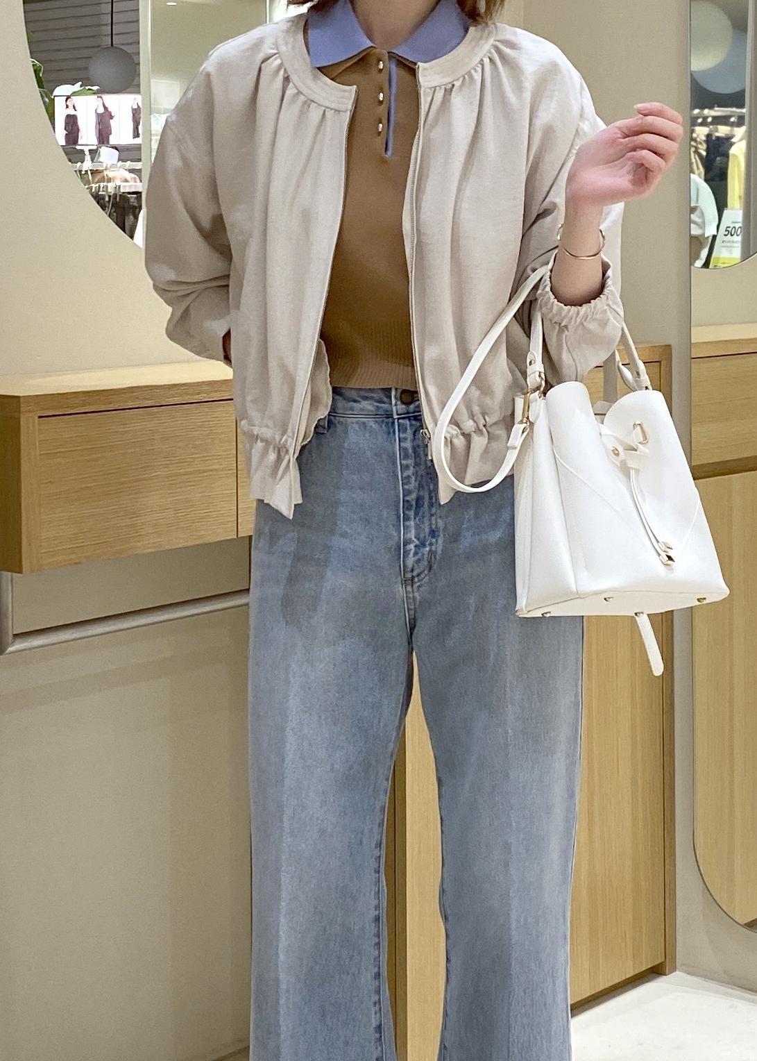 ボトムスにインをすると出やすい印象でしたが、コンパクトな丈感のため、アウトでもスッキリ見えします◎