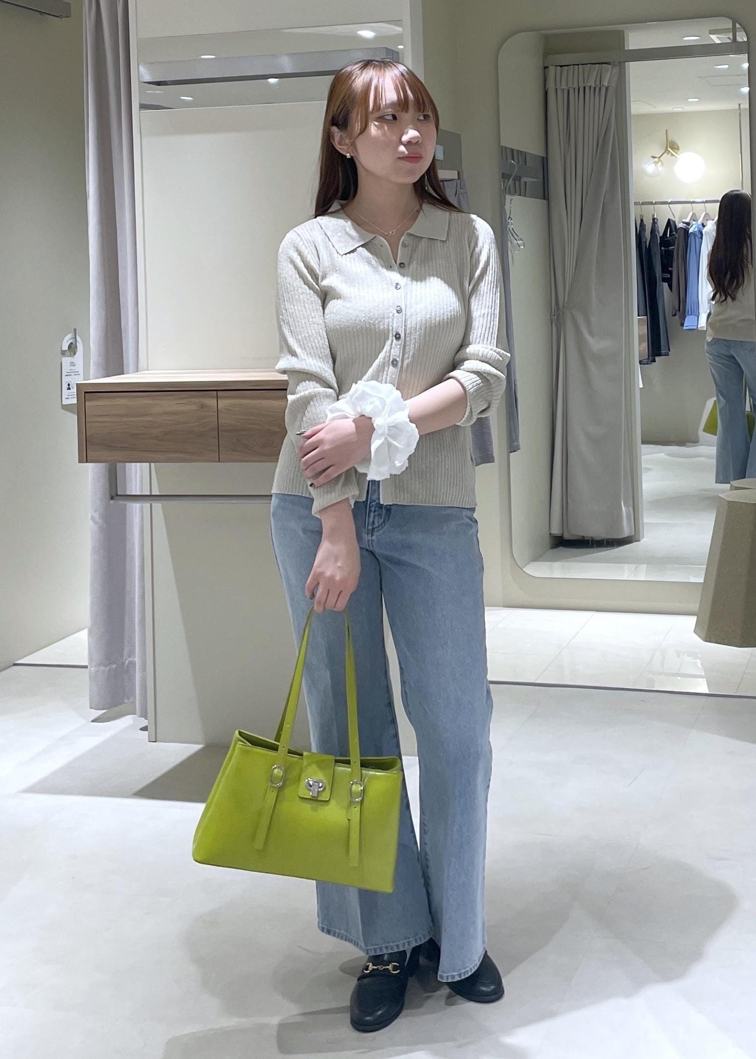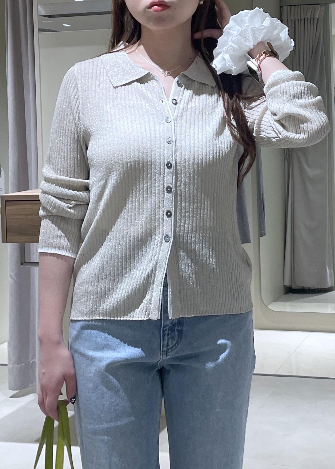 VISポロ襟配色シアーリブカーディガン/イージーケアベージュ / F¥6,589レビューバイカラーが今年っぽい、ポロ襟カーディガンです。