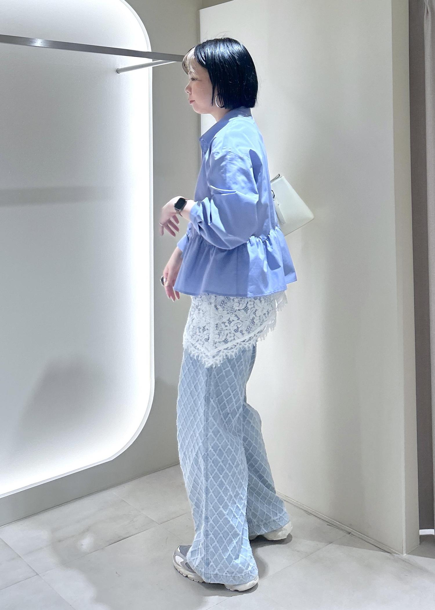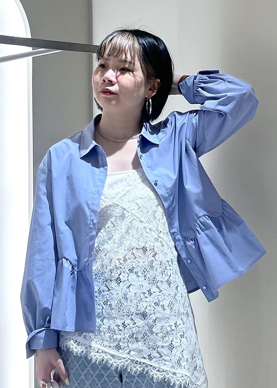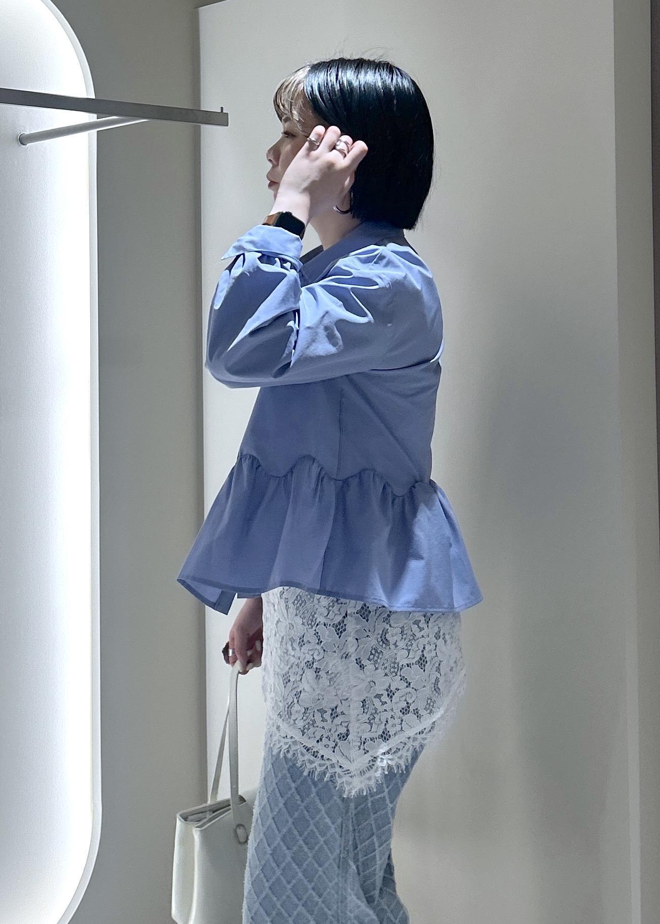 VISウエーブヘムペプラムシャツブルー / F¥6,589レビュー163cmで腰が隠れる着丈です。