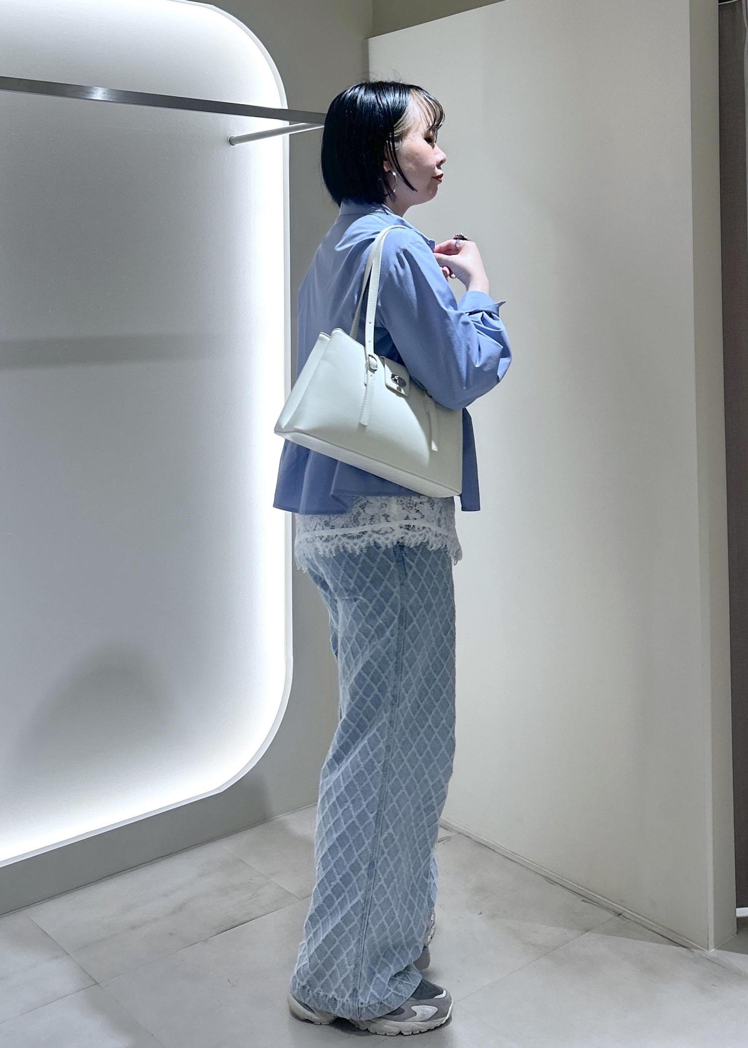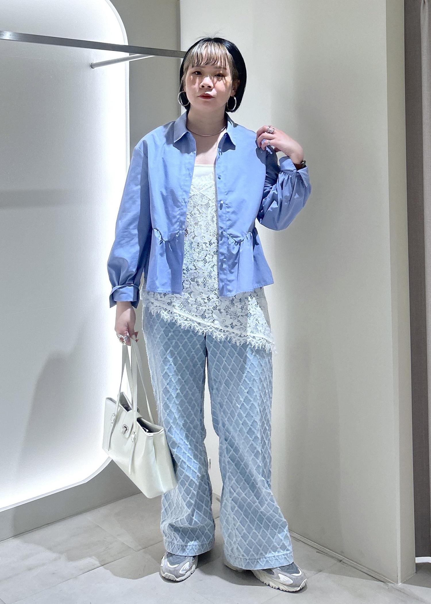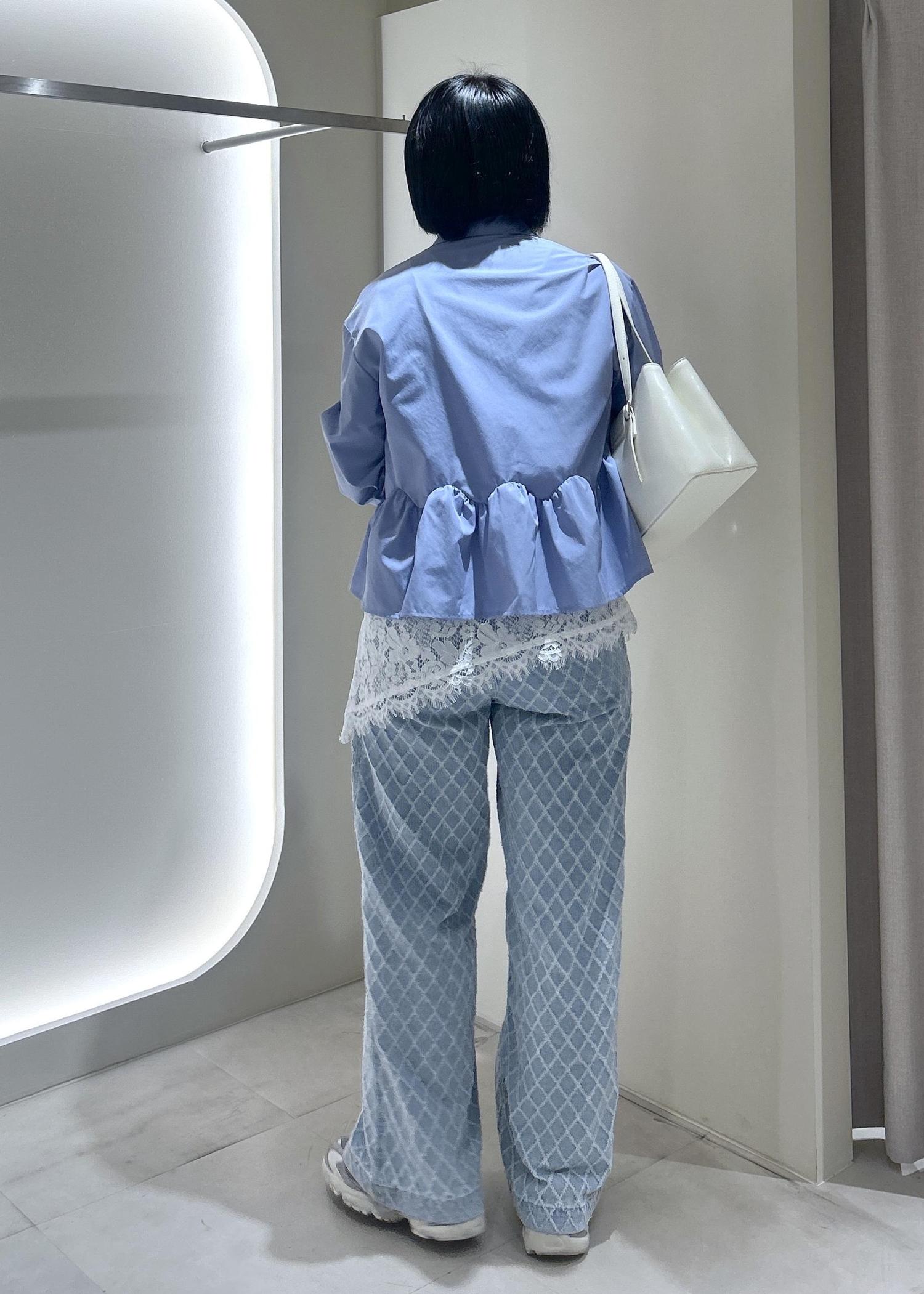 VISウエーブヘムペプラムシャツブルー / F¥6,589レビュー163cmで腰が隠れる着丈です。