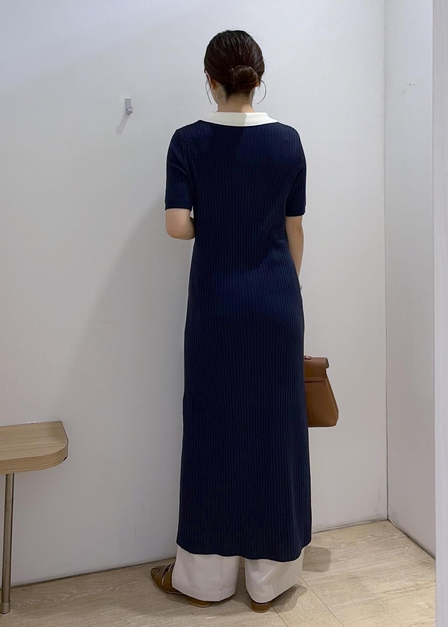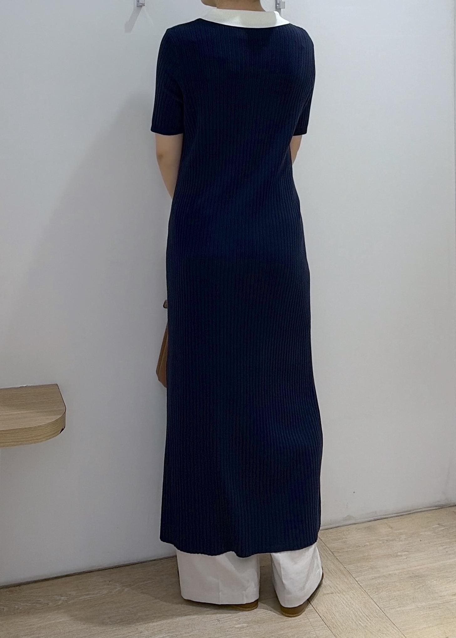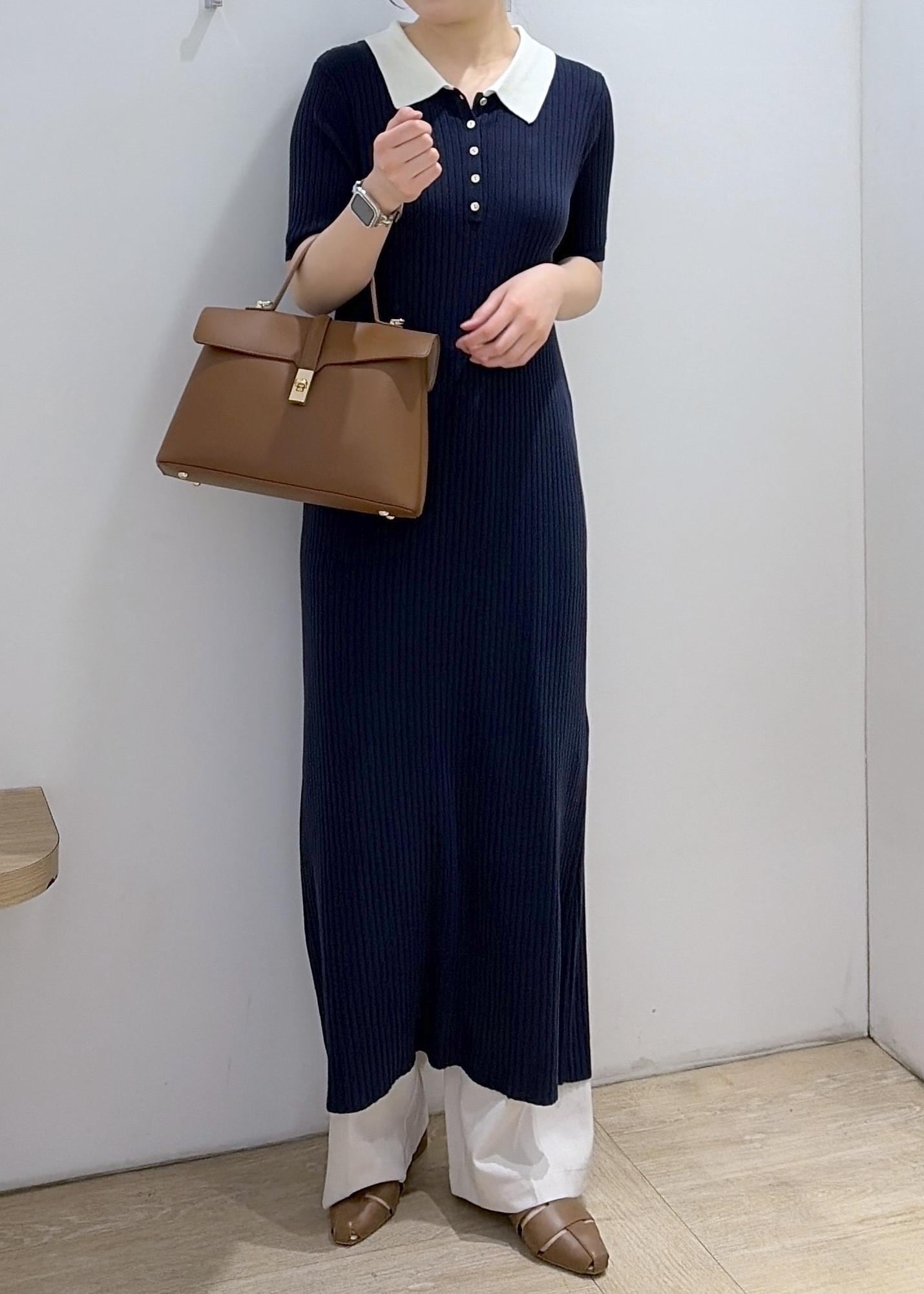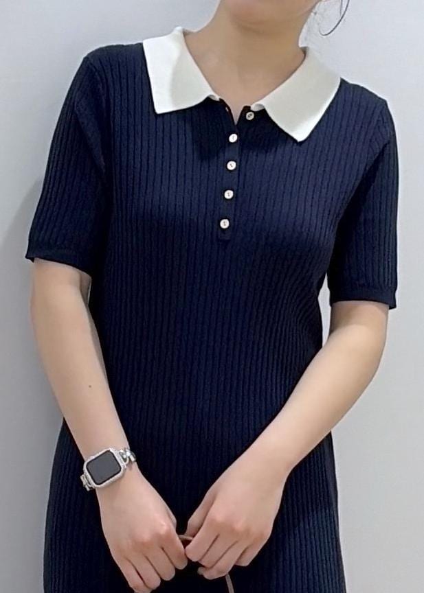 VISポロ襟ニットワンピースネイビー / F¥7,689レビュー169cmでfreeサイズ着用。