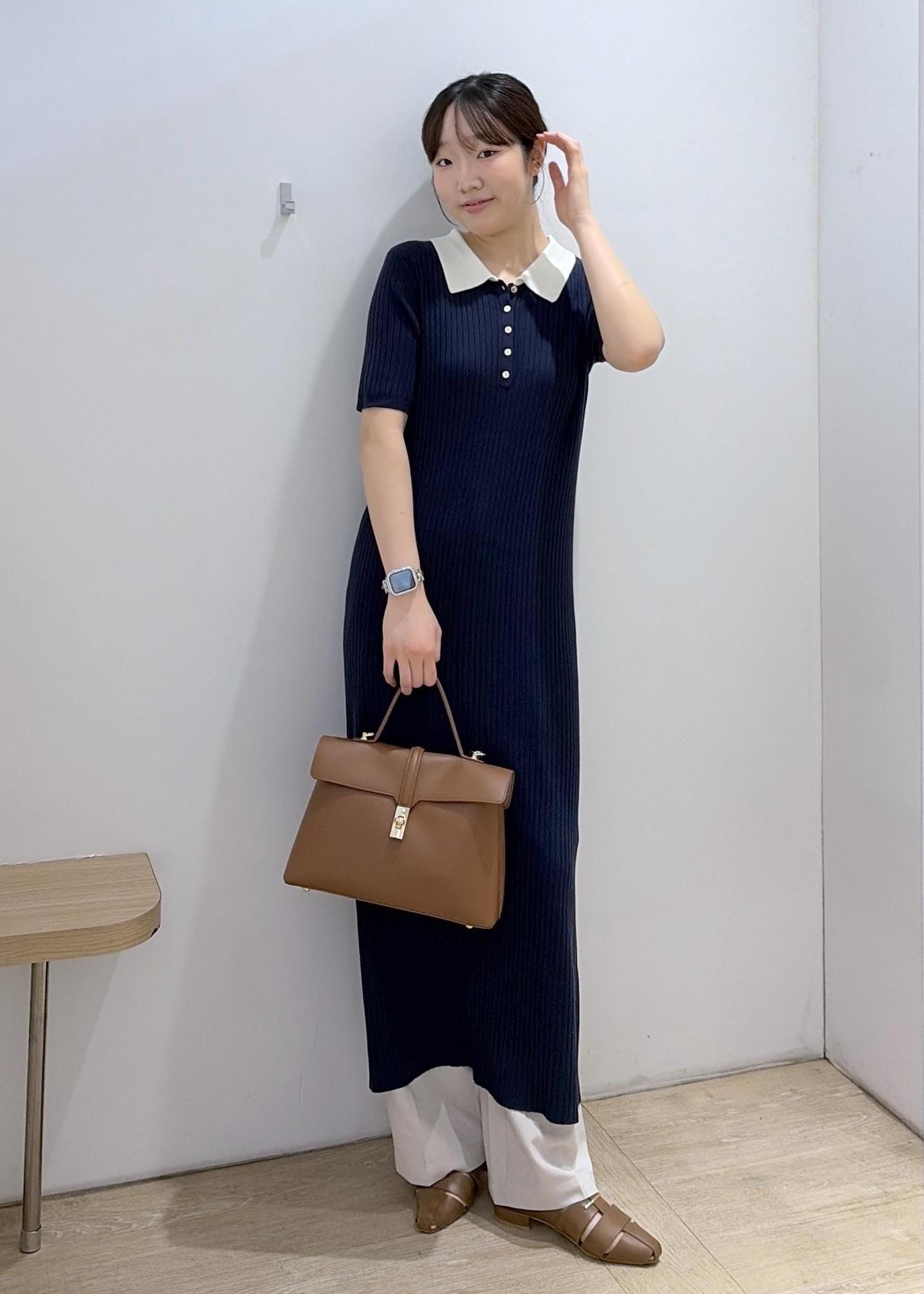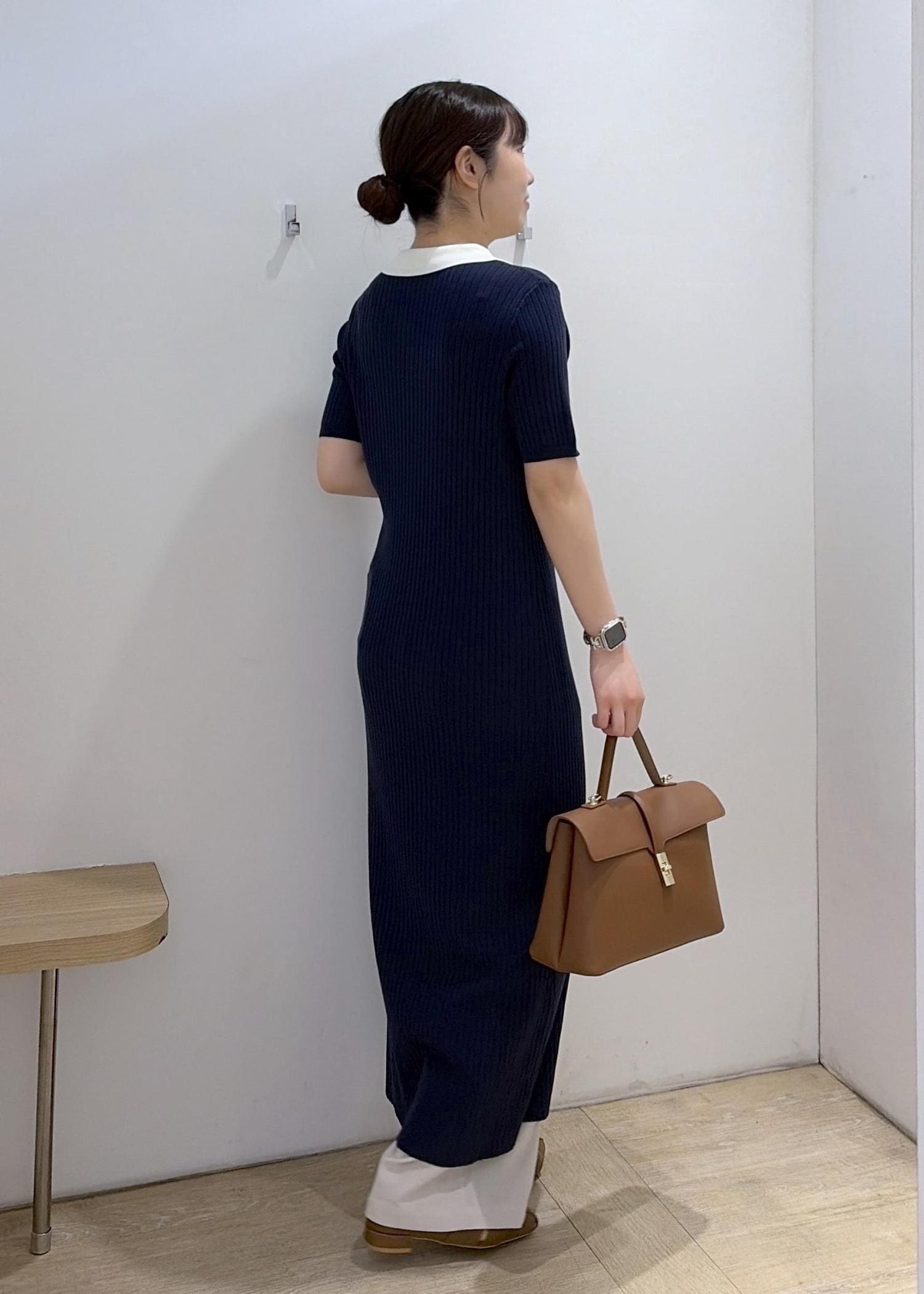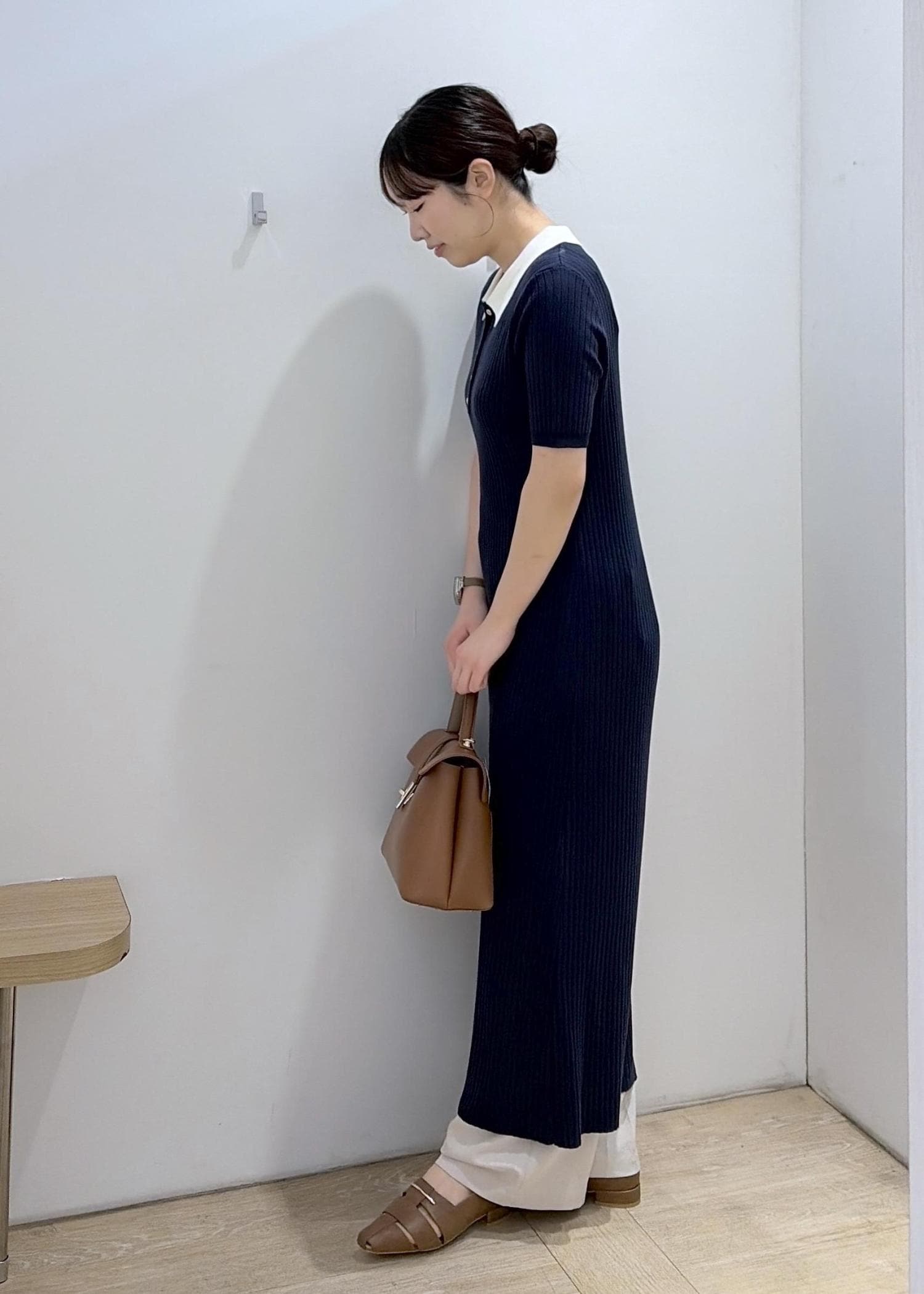 VISポロ襟ニットワンピースネイビー / F¥7,689レビュー169cmでfreeサイズ着用。