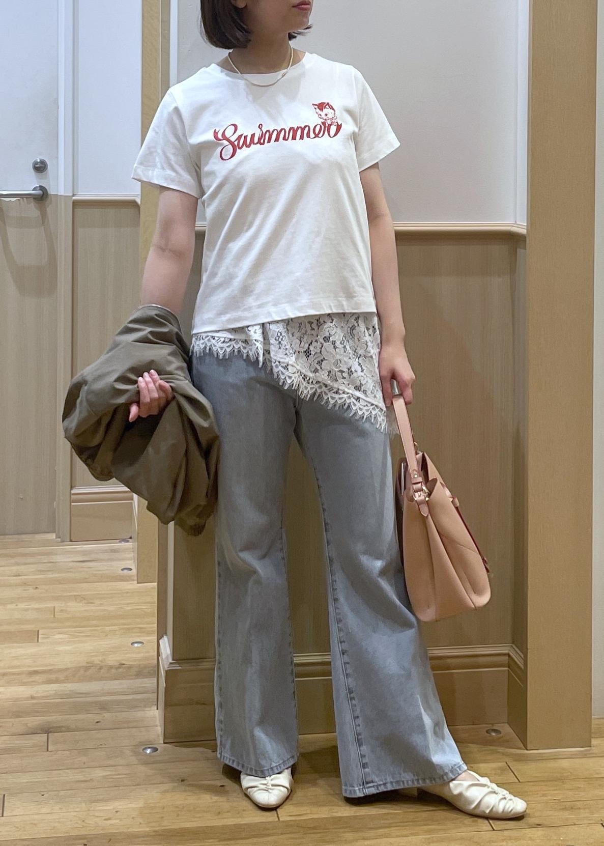 清涼感あるレース素材で、甘くなり過ぎないので着回しが効きます◎