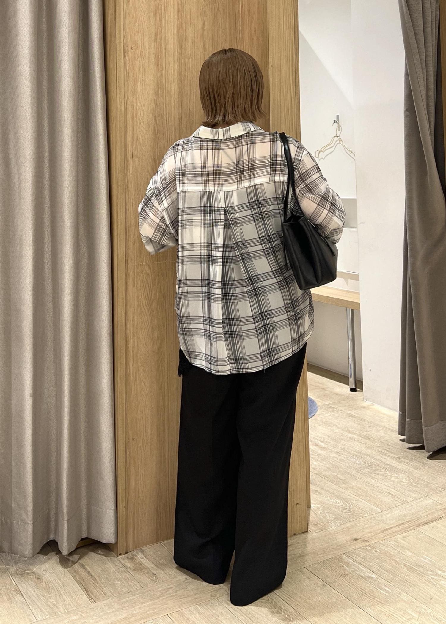 身長152cmで後ろはヒップが隠れる丈感で、肉感を拾いにくいので体型カバーもできます! -