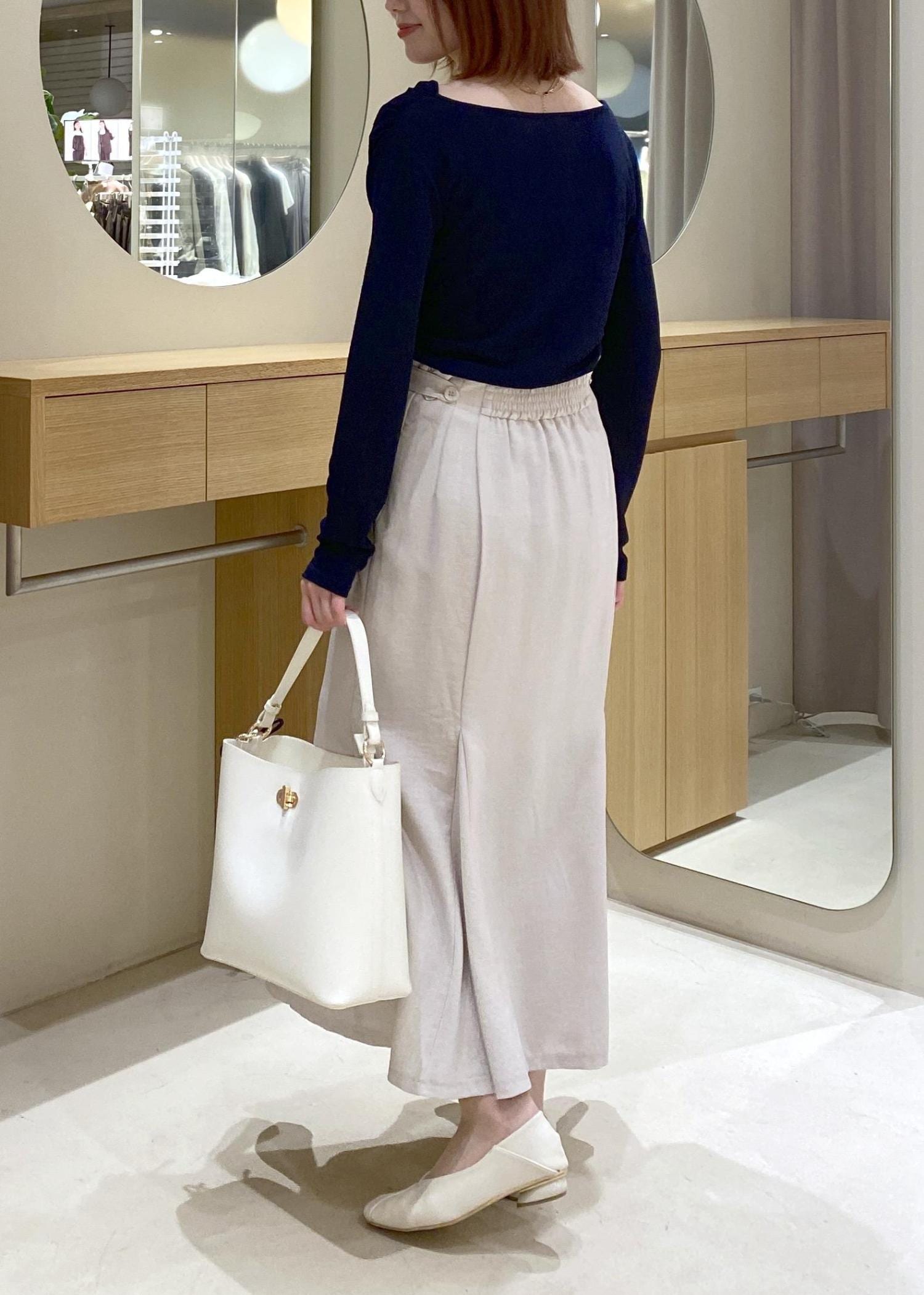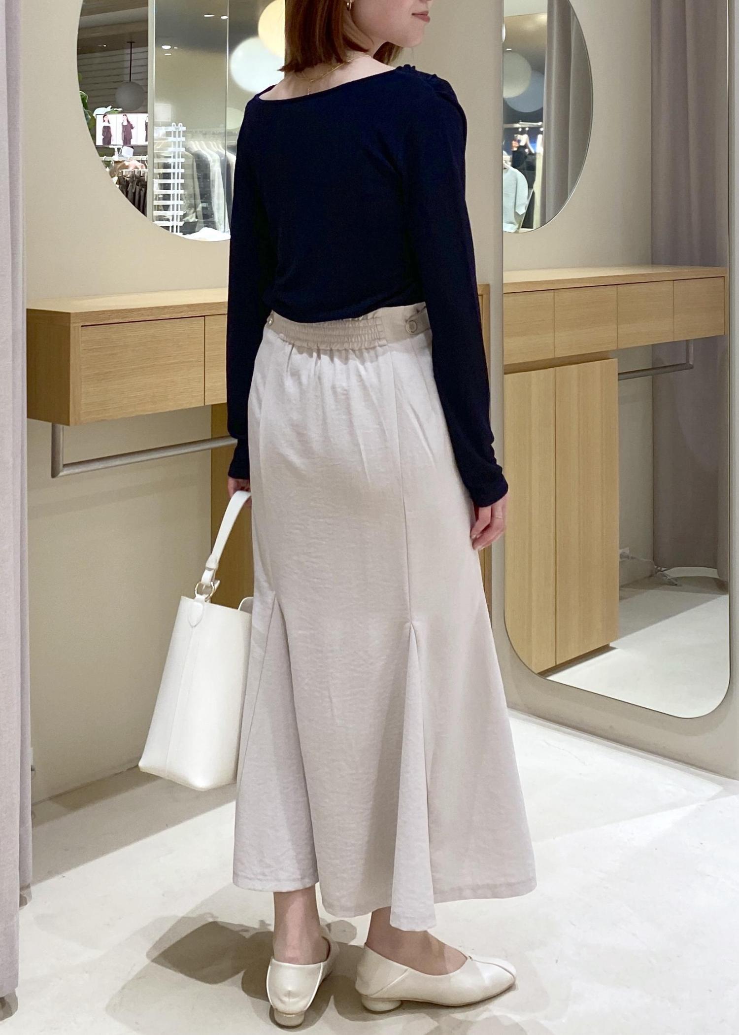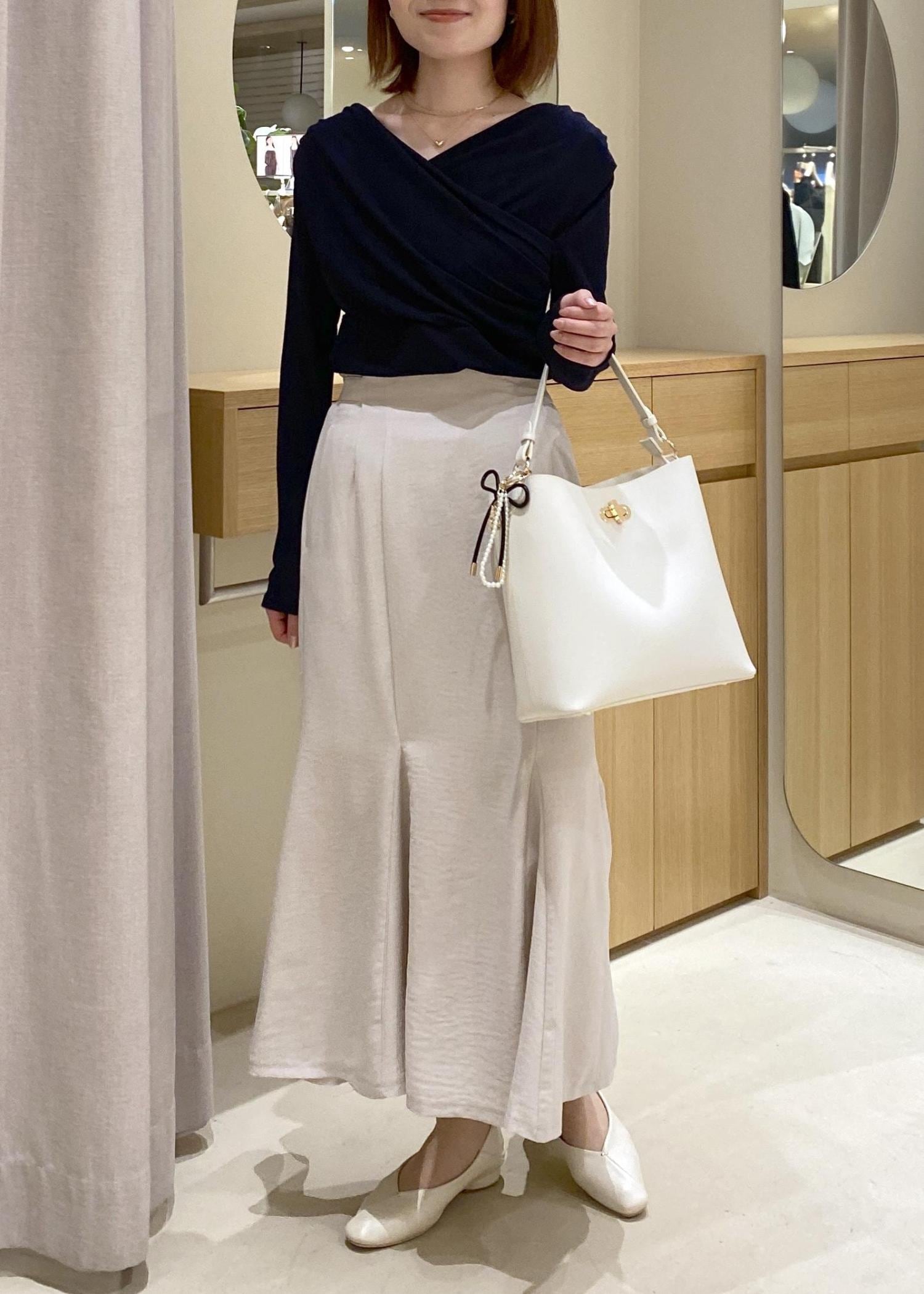 ドレープトップスにさらっとした生地感のマーメイドスカートを合わせた、上品なスカートスタイルを作ってみました!