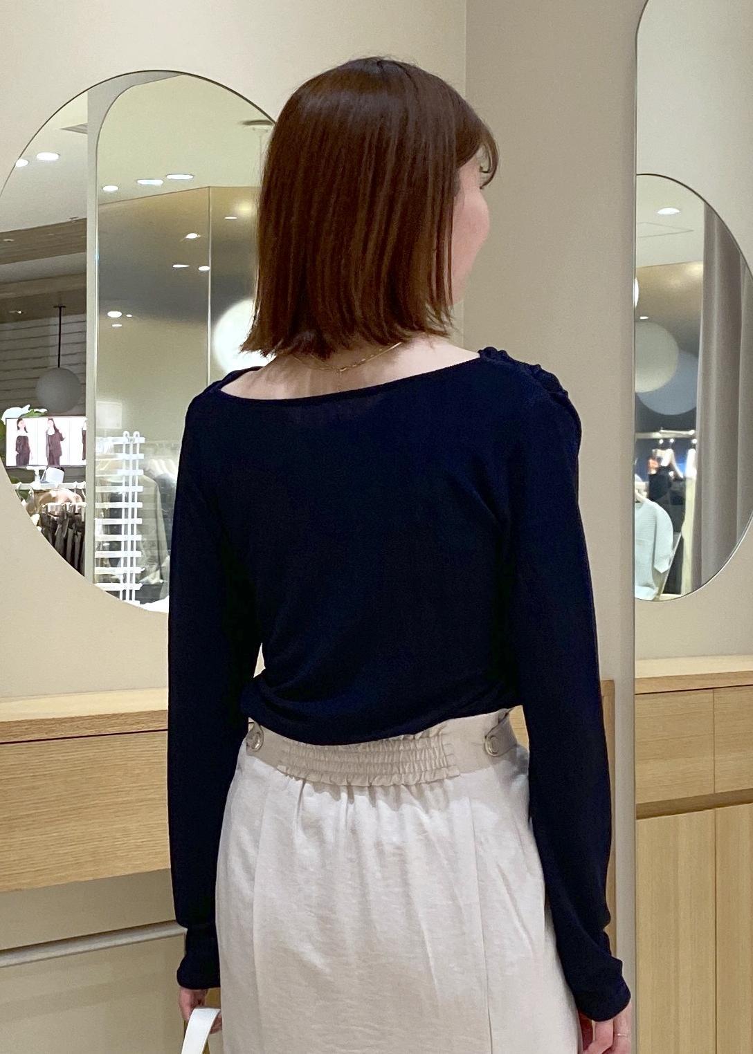 デコルテ部分が開くため、アクセサリーをプラスするとより顔周りが華やかな印象に! -