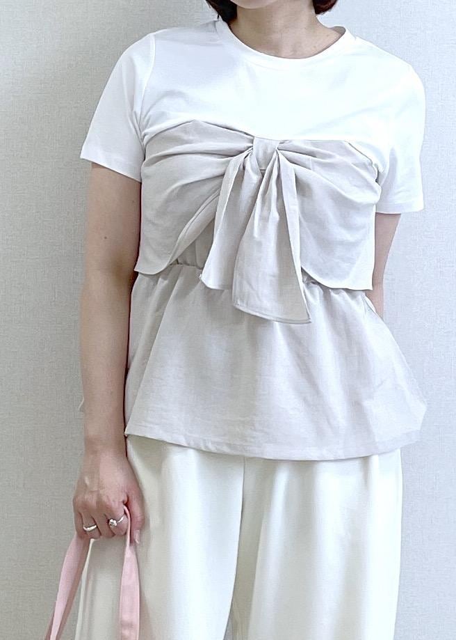 Tシャツ部分はなめらかなTシャツ生地で、ビスチェ部分はサラッとした涼しい素材感。