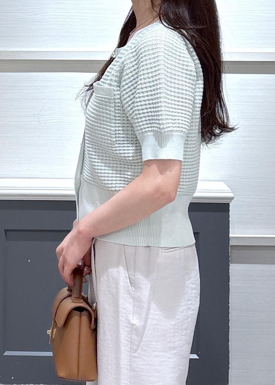 薄手のサラッとしたニット素材で、夏場も1枚でも羽織としても活躍しそうです! -