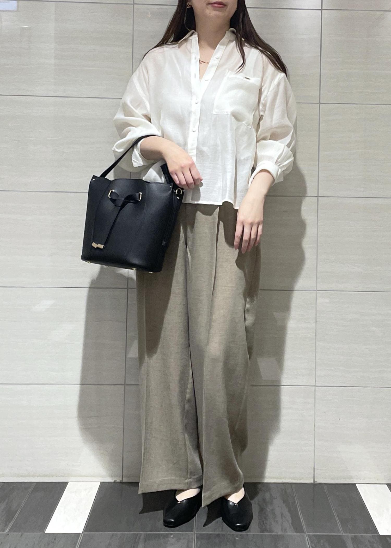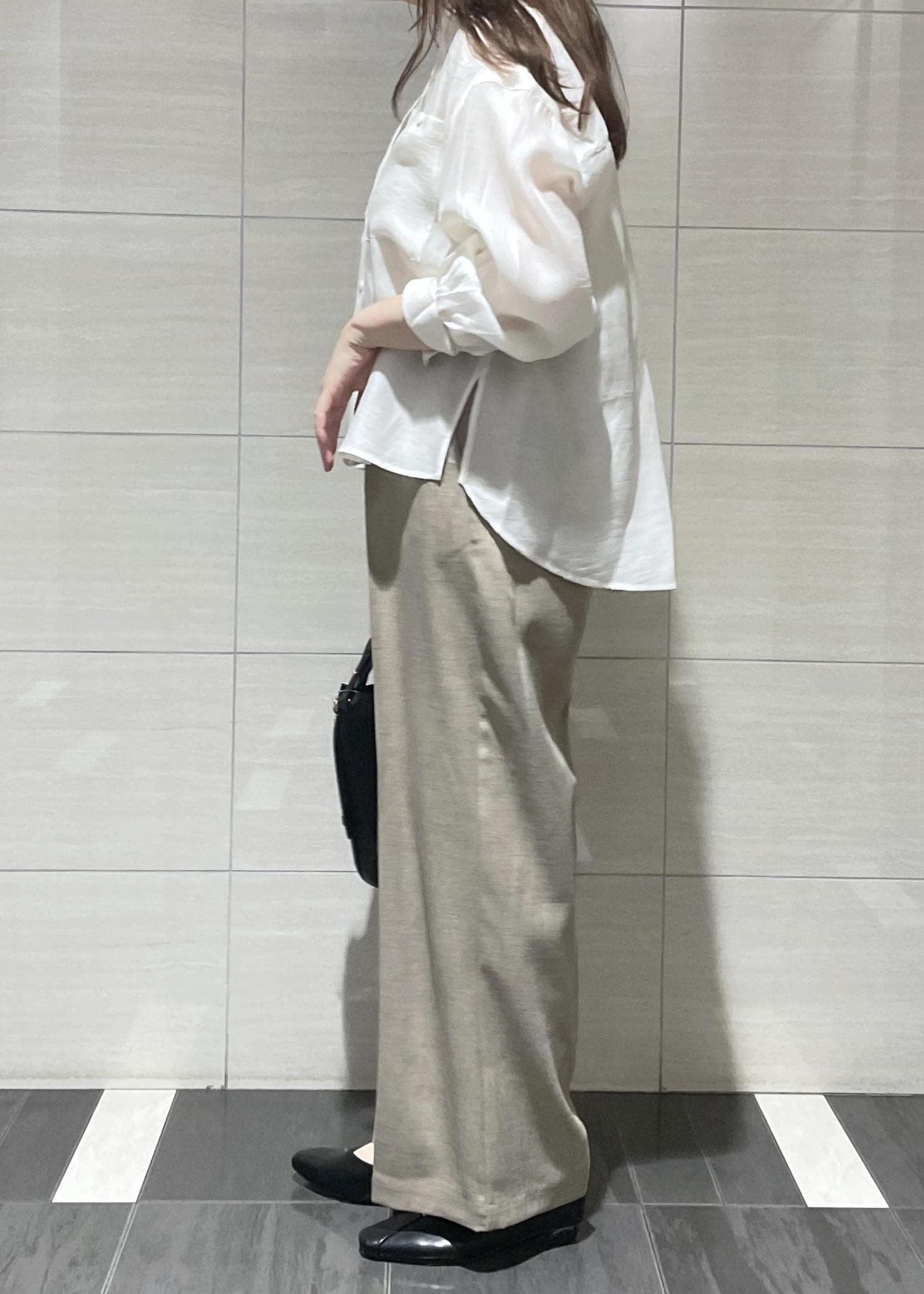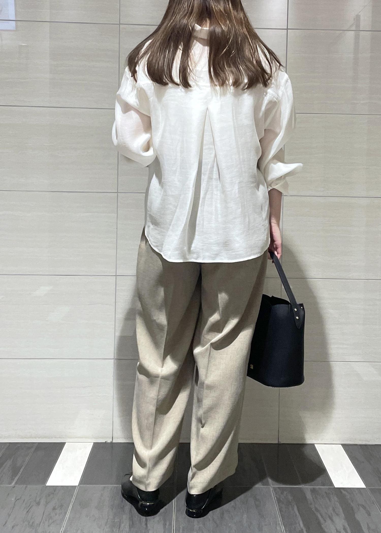 ゆとりがあるサイズ感ですが光沢感があるのでカジュアルすぎずに着ていただけます。