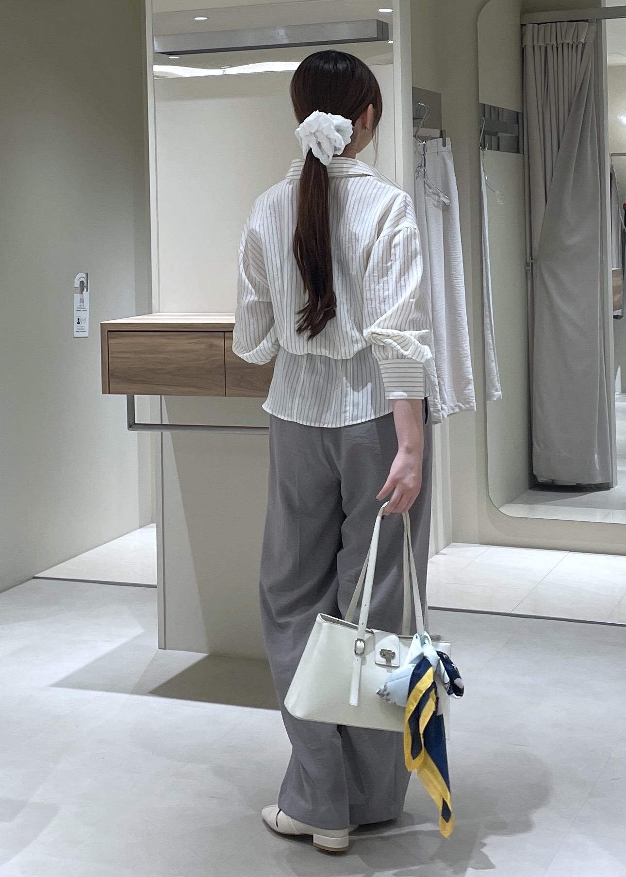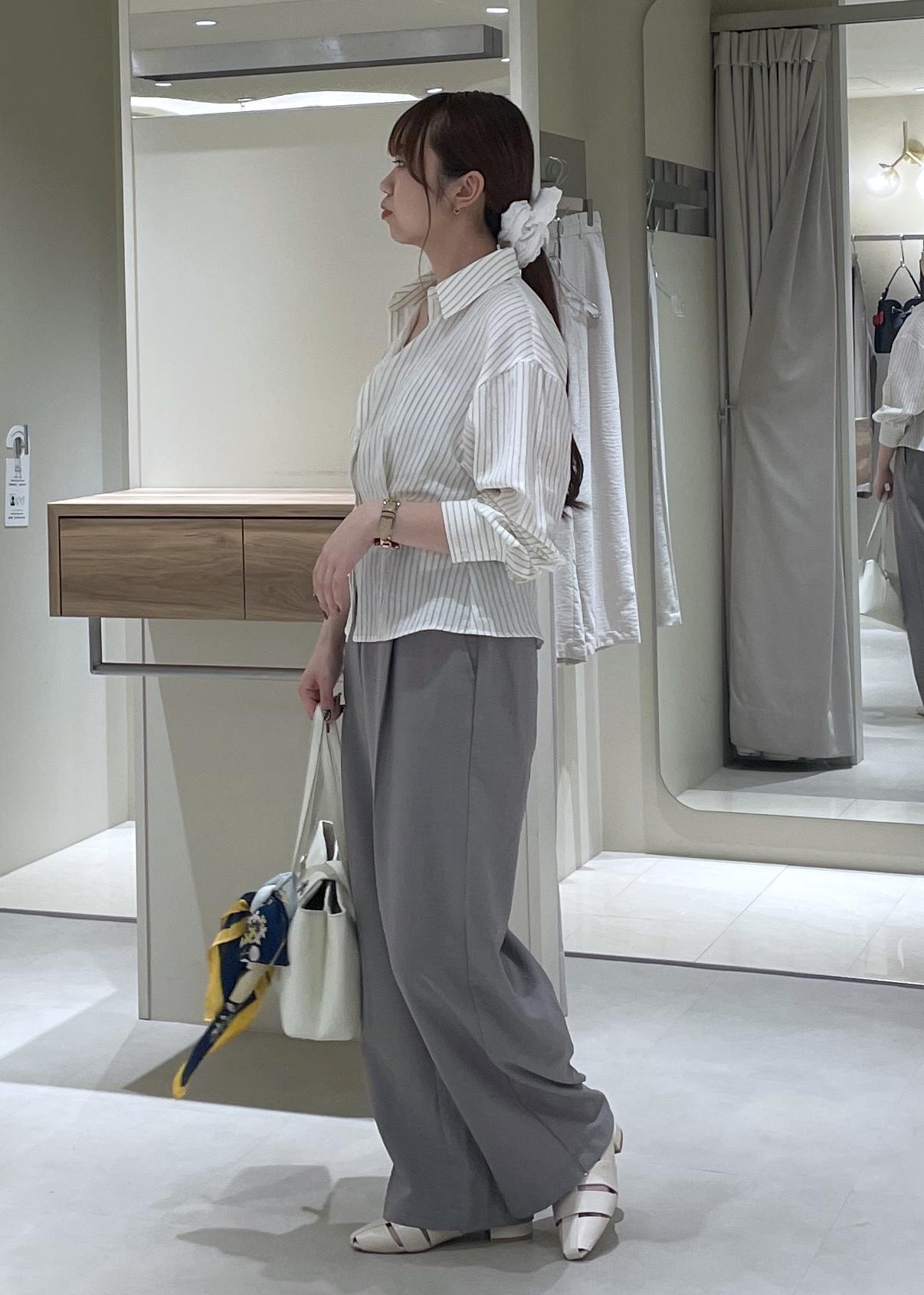 春から夏の終わりまで使っていただける麻風素材で、薄手で着た感じもとても軽いです。ボタンでウエスト調整可能な点も推しポイントです。 -