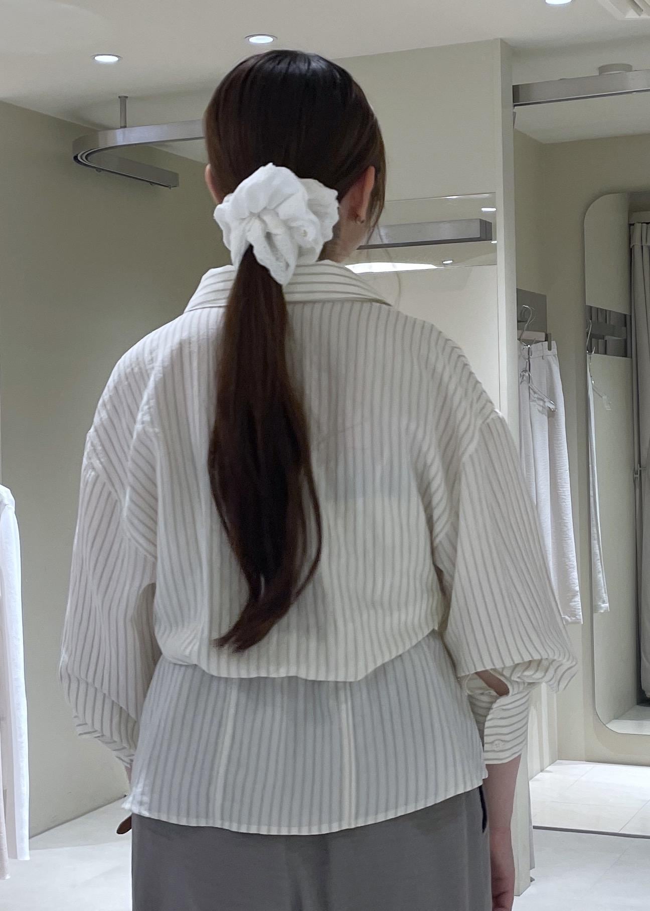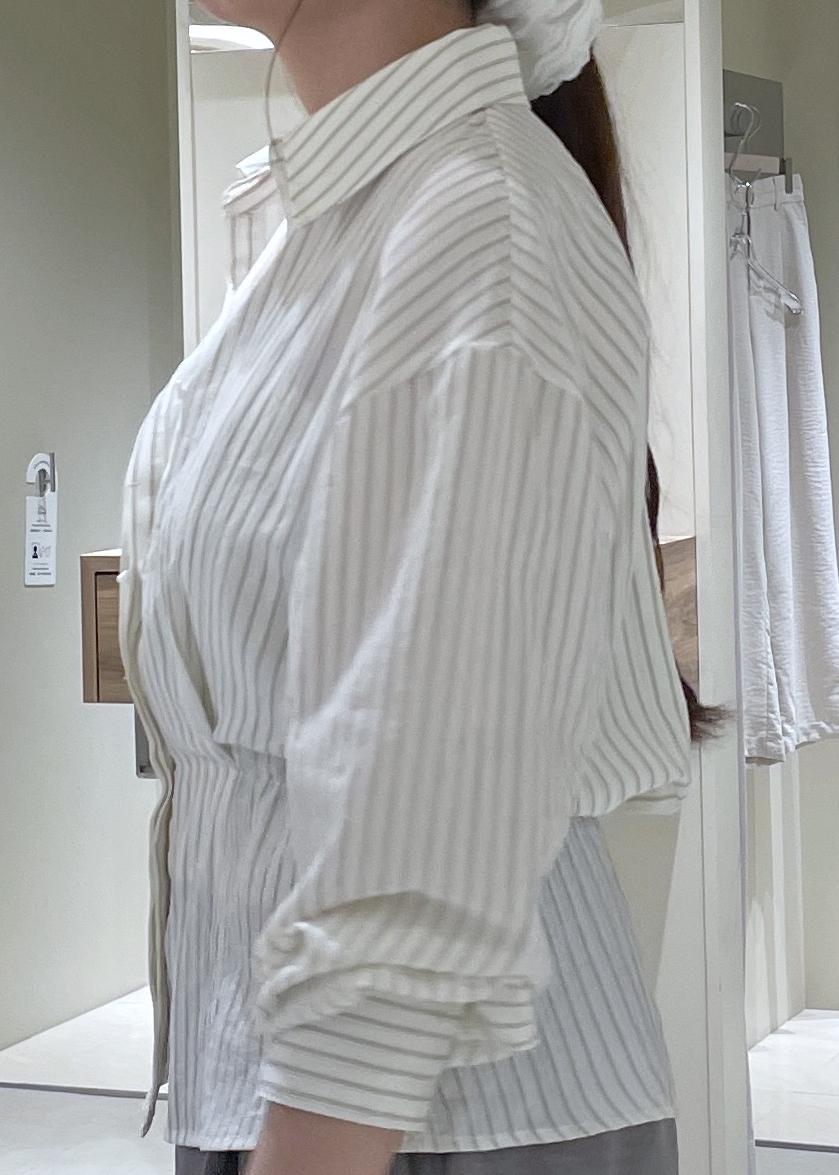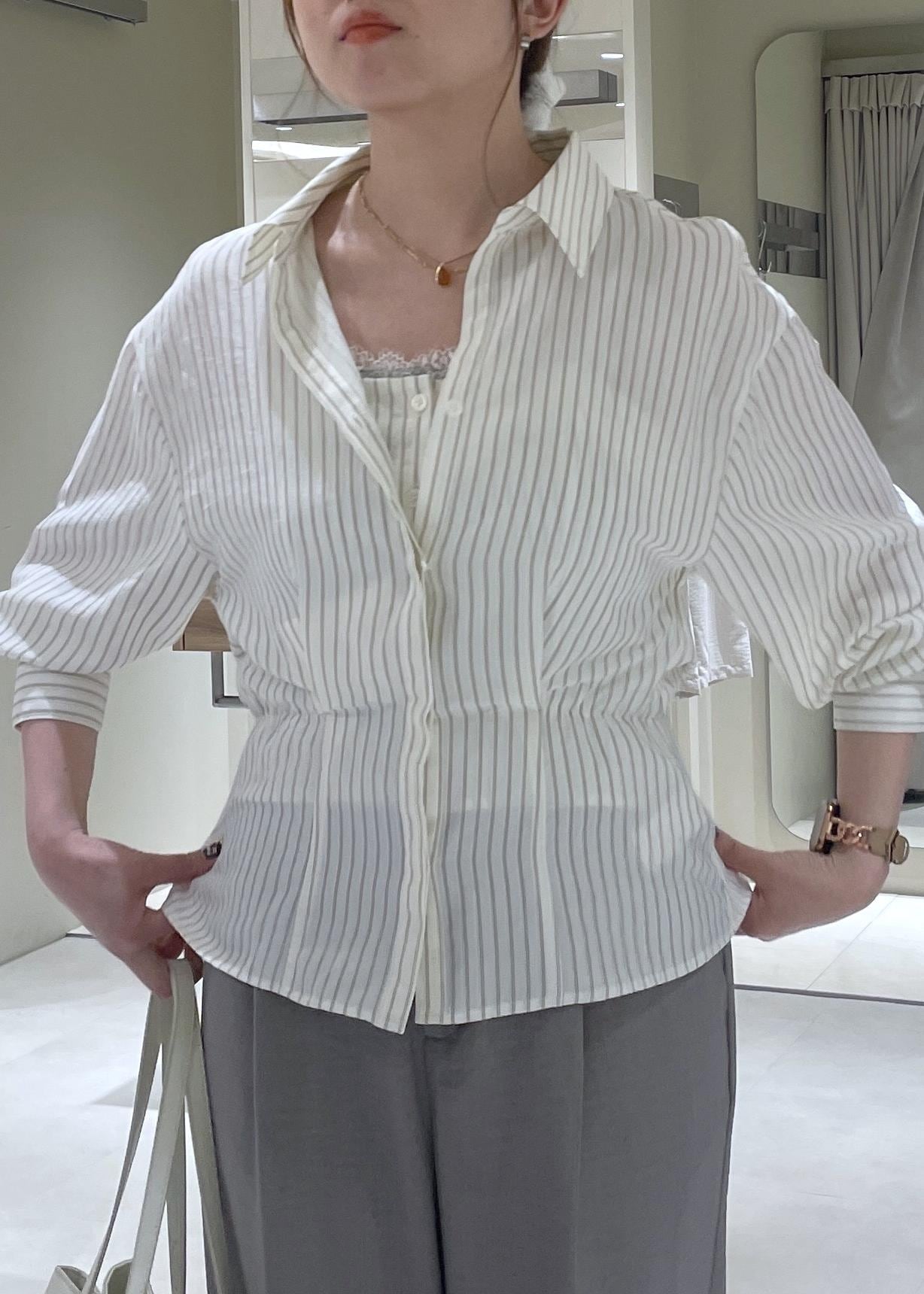 VISレイヤードストライプシャツオフホワイト / F¥6,589レビュービスチェが中にドッキングされているレイヤードシャツです。外のシャツはウエスト部分にタックが入っているので、自然とスタイルアップ効果も◎