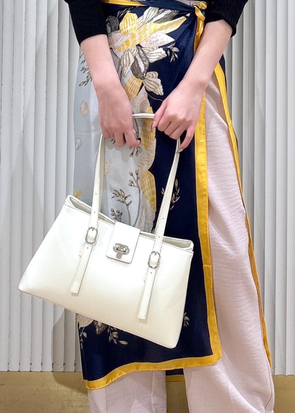 VIS2層ロングハンドルバッグキナリ / F¥6,919レビューポケットも多く大容量です!持ち手が長いので肩掛けしやすいです!光沢感のある素材が甘すぎずカジュアルから綺麗め幅広く合わせられます!金具がシルバーなのも可愛いポイントです!