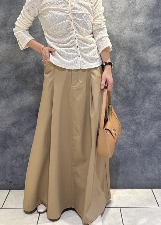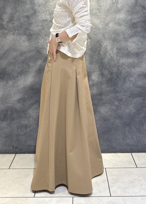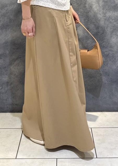 自然なフレアシルエットで、フラットシューズでくるぶし下の着丈です。