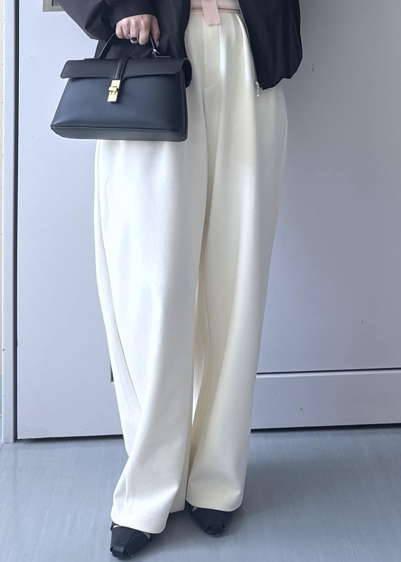 VISカットカーブスラックスパンツオフホワイト / F¥6,589レビュー生地感がモチモチで、ウエストゴムなのでとても着心地の良いパンツです◎