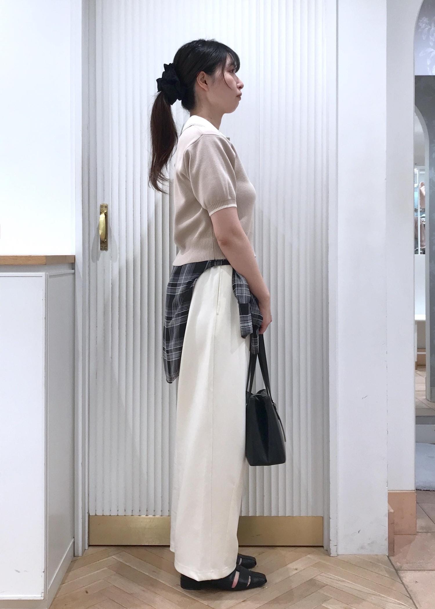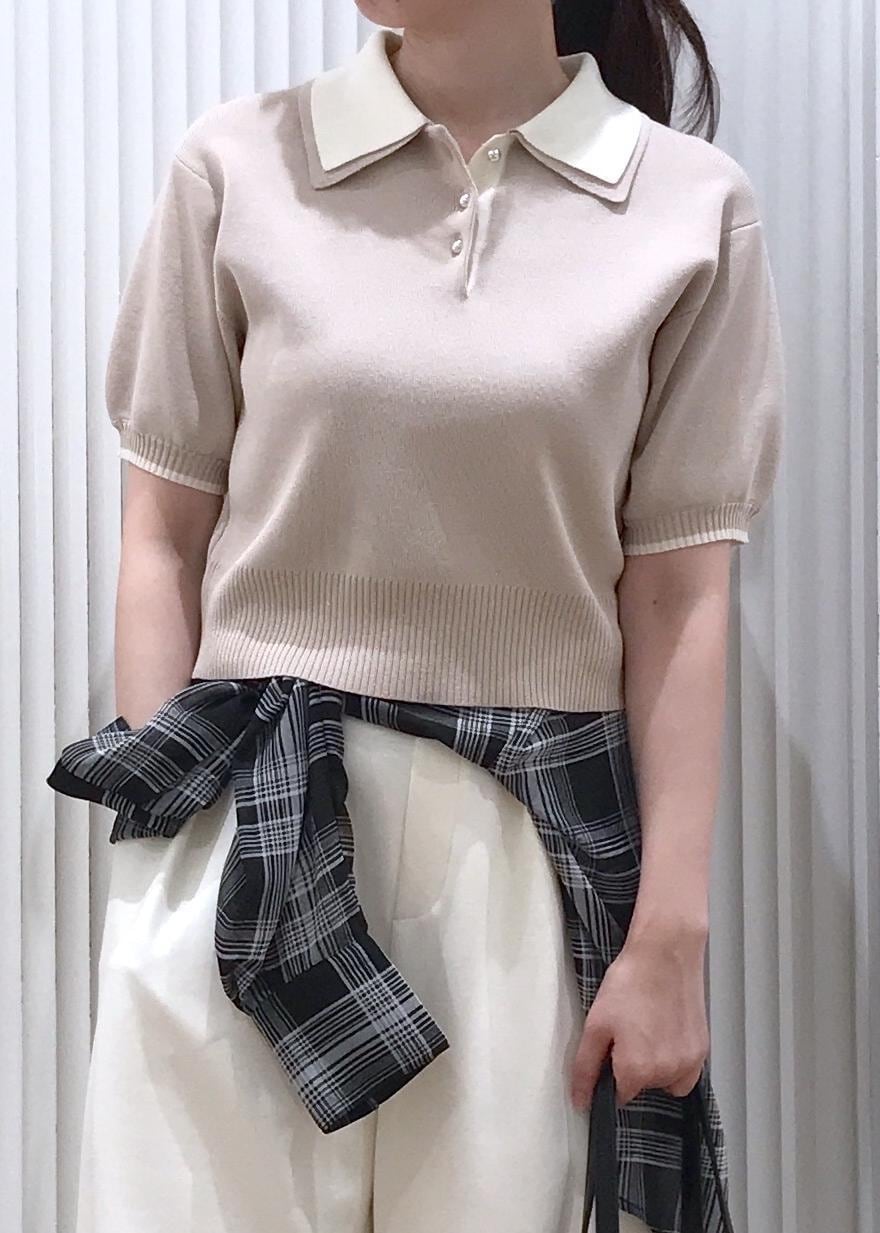 今トレンドのダブルカラーが可愛いポロニットを合わせたカジュアルコーデです!
