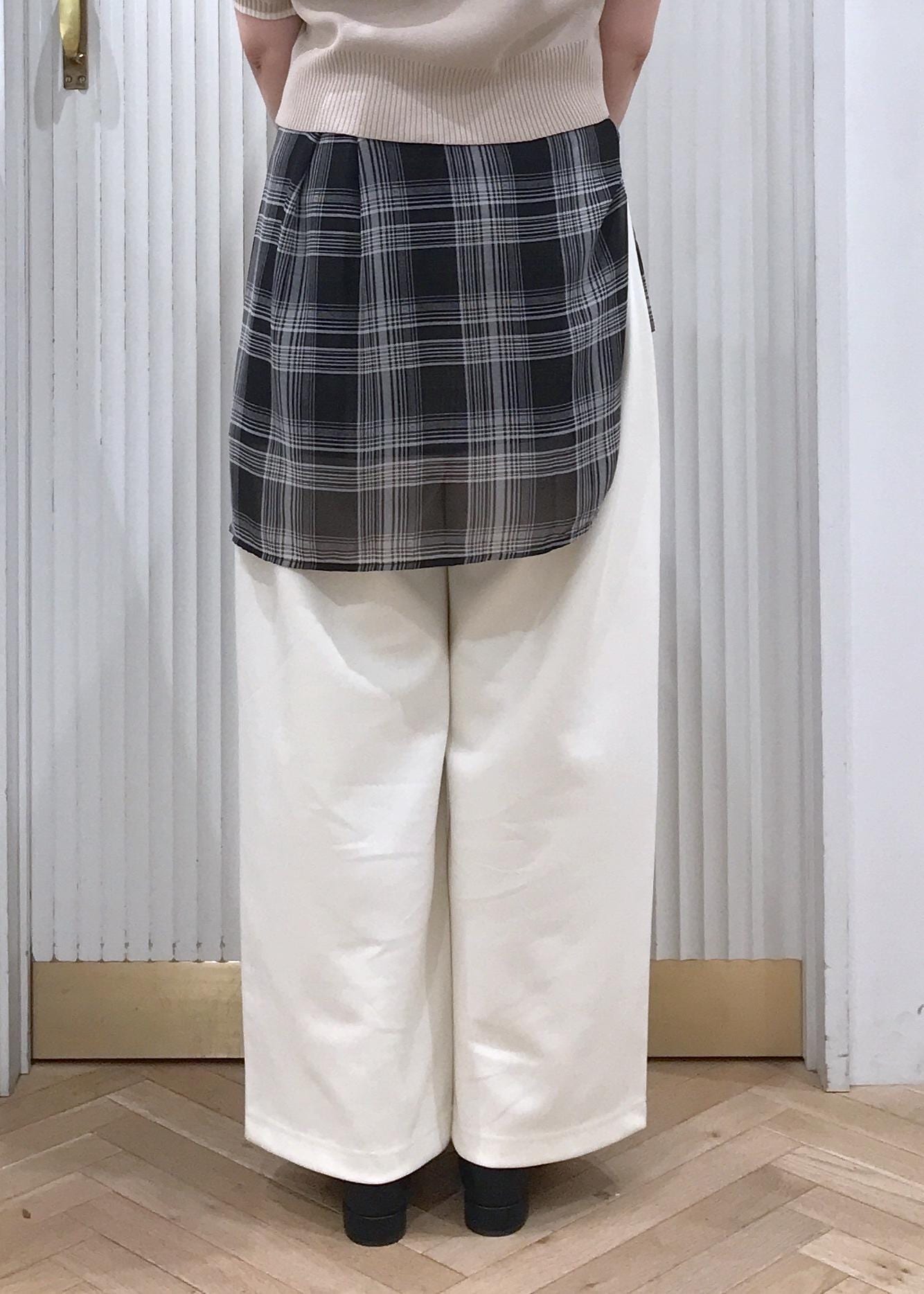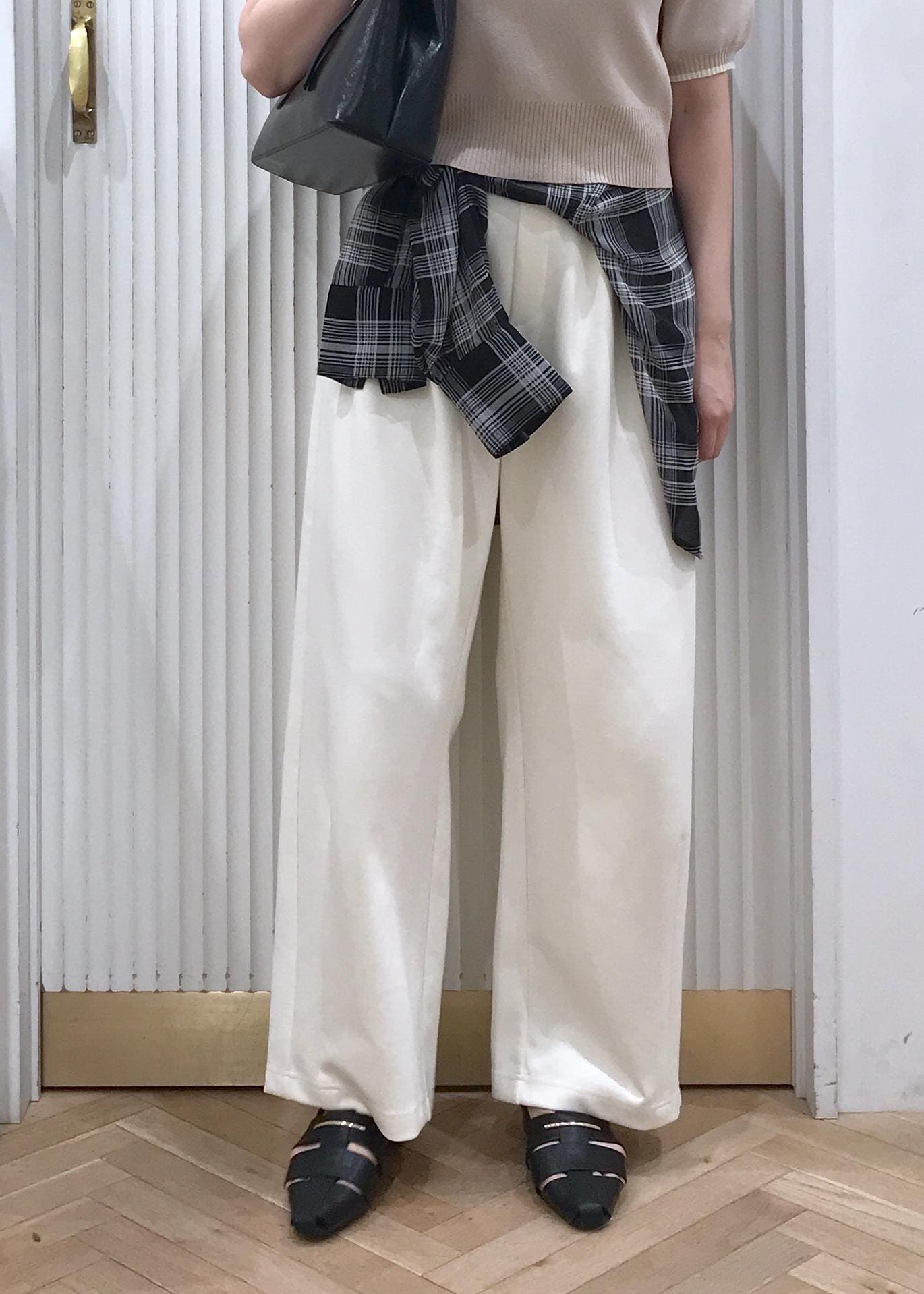 身幅はややゆったりしているので身体のラインは拾い過ぎずないですが、着丈感が短めなのでスッキリシルエットで着用出来ます。