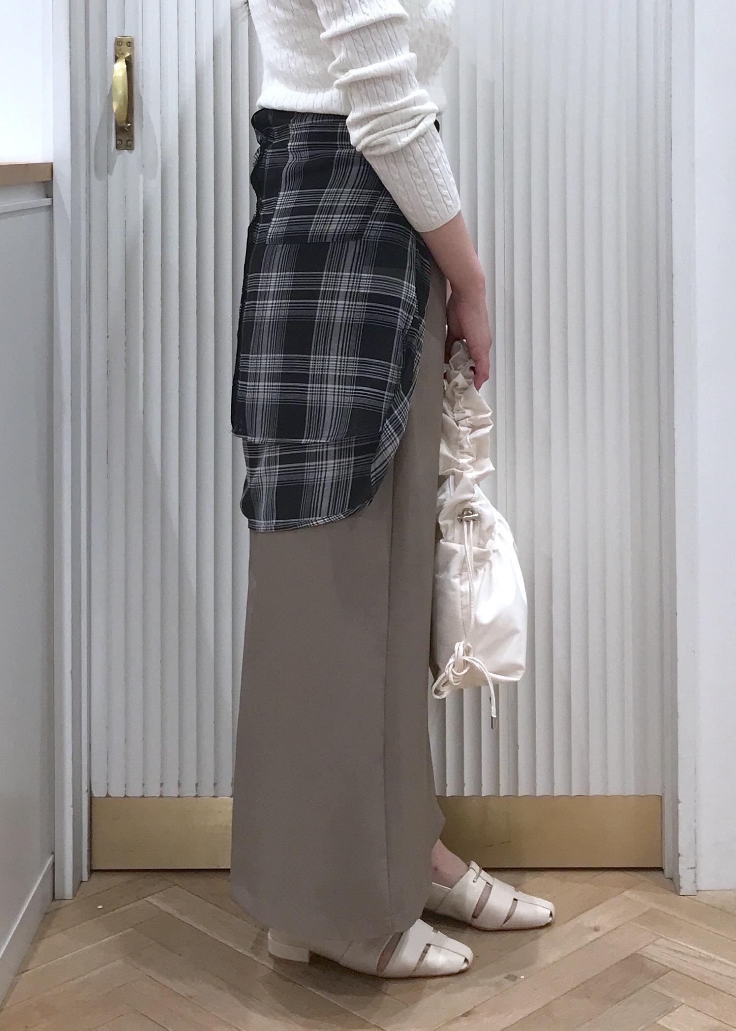 また、後ろがゴムなのでスッキリしたシルエットなのにリラックスして着用出来ますよ。 -