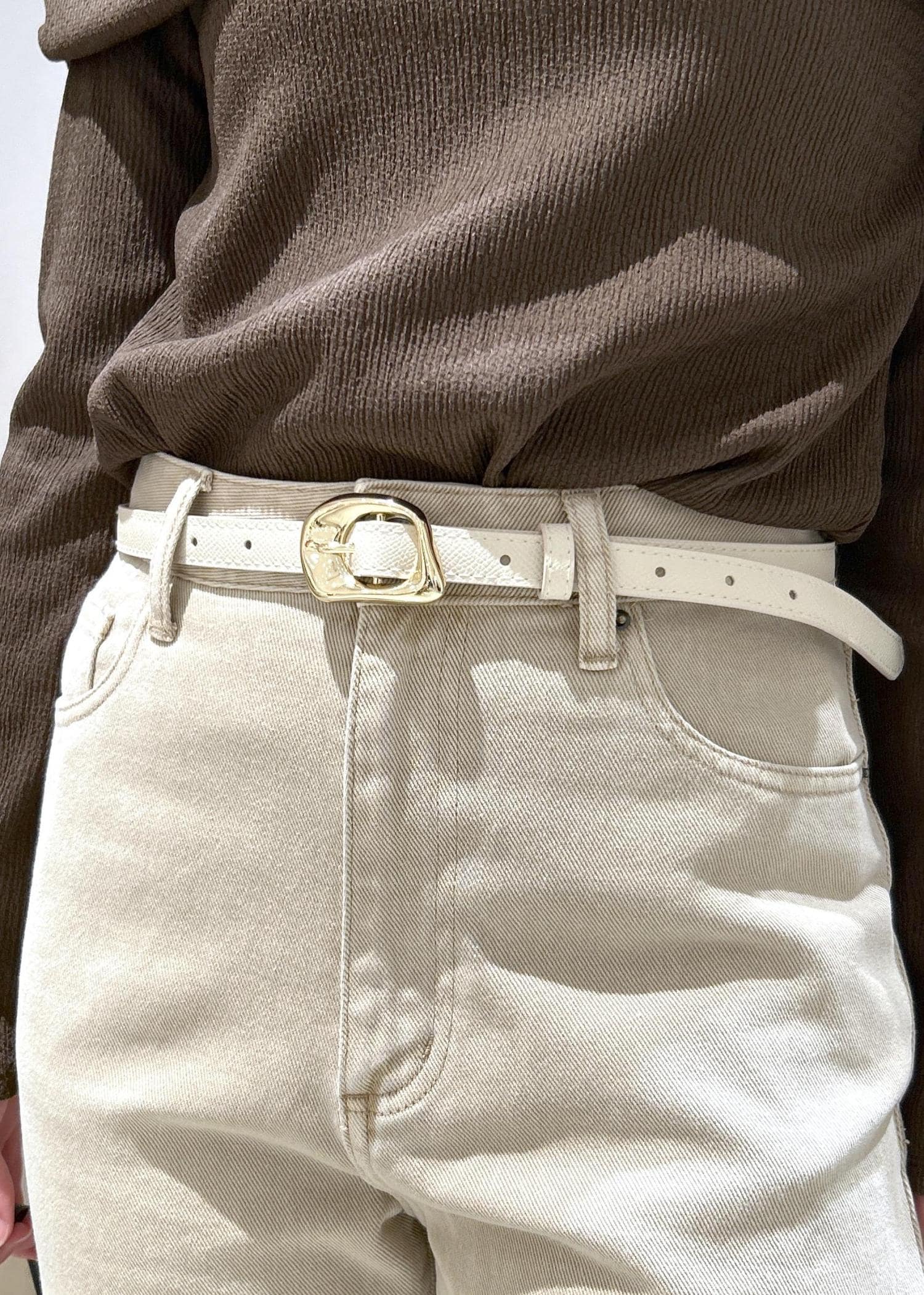 ゴールドのバックルも高級感があり、合わせやすいデザインです。