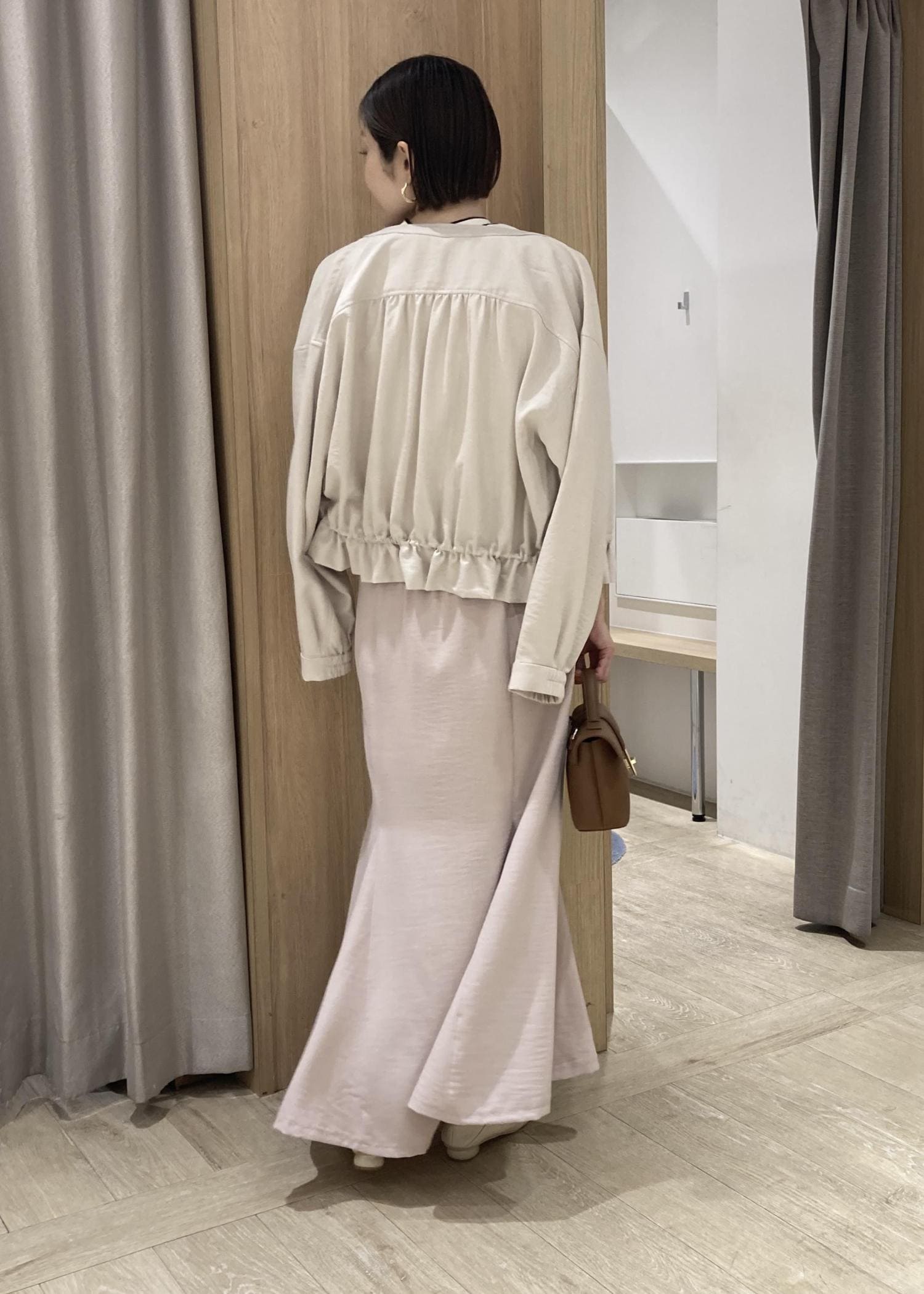 ベージュやキャメルの小物でトーンを合わせた春らしいお出かけスタイルにしました。