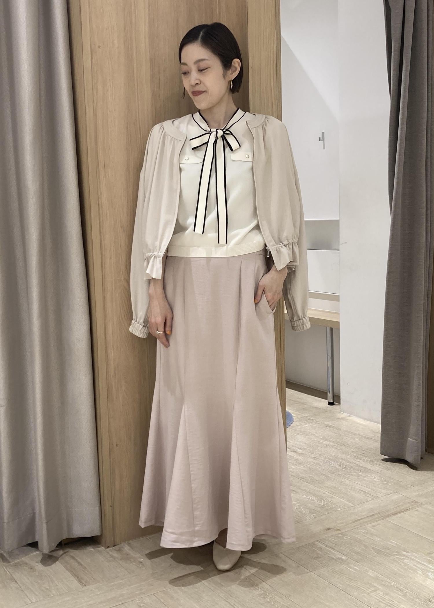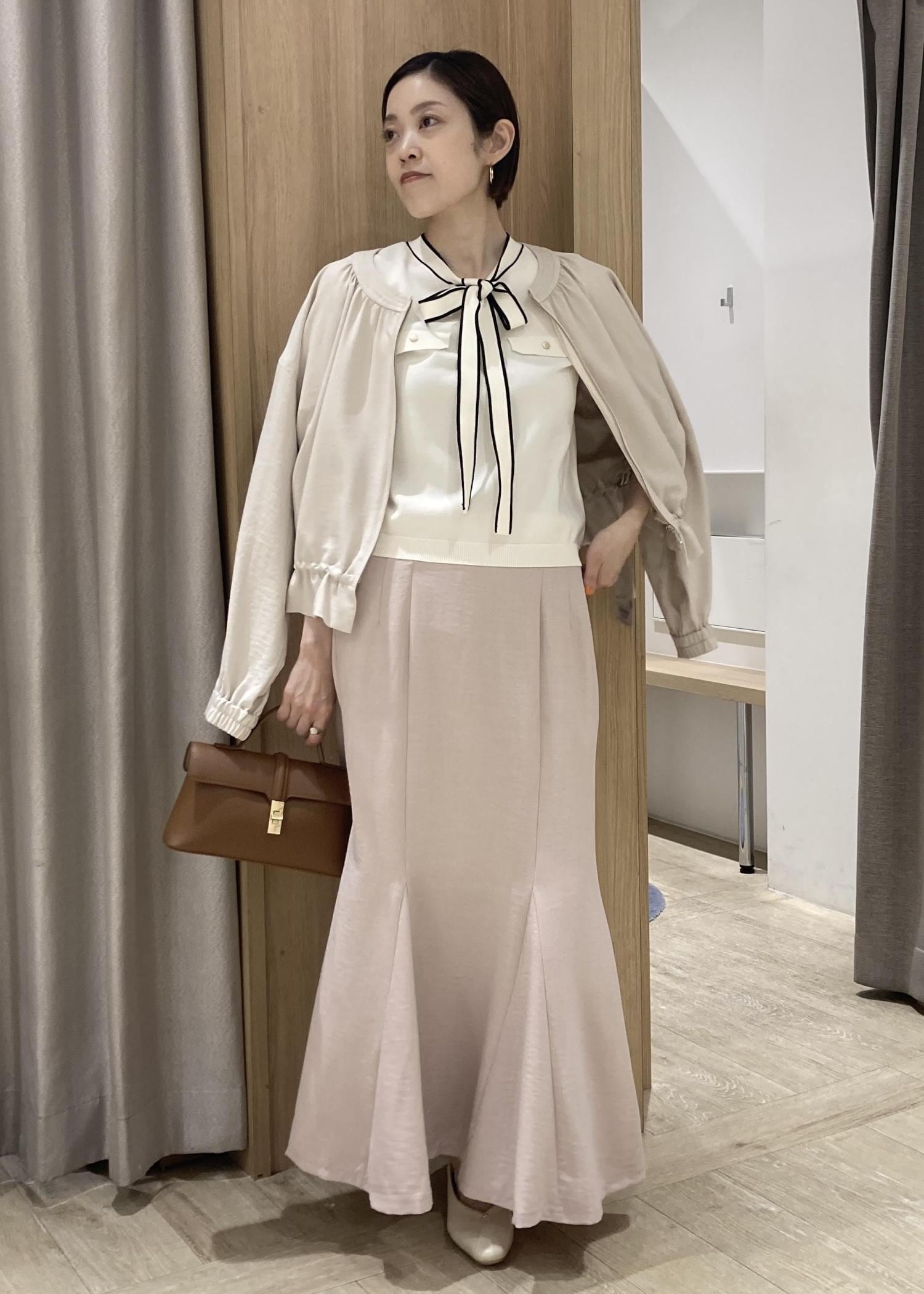 胸元のリボンがアクセントになり、すっきりしたシルエットでアウターの中に着やすいです。 -