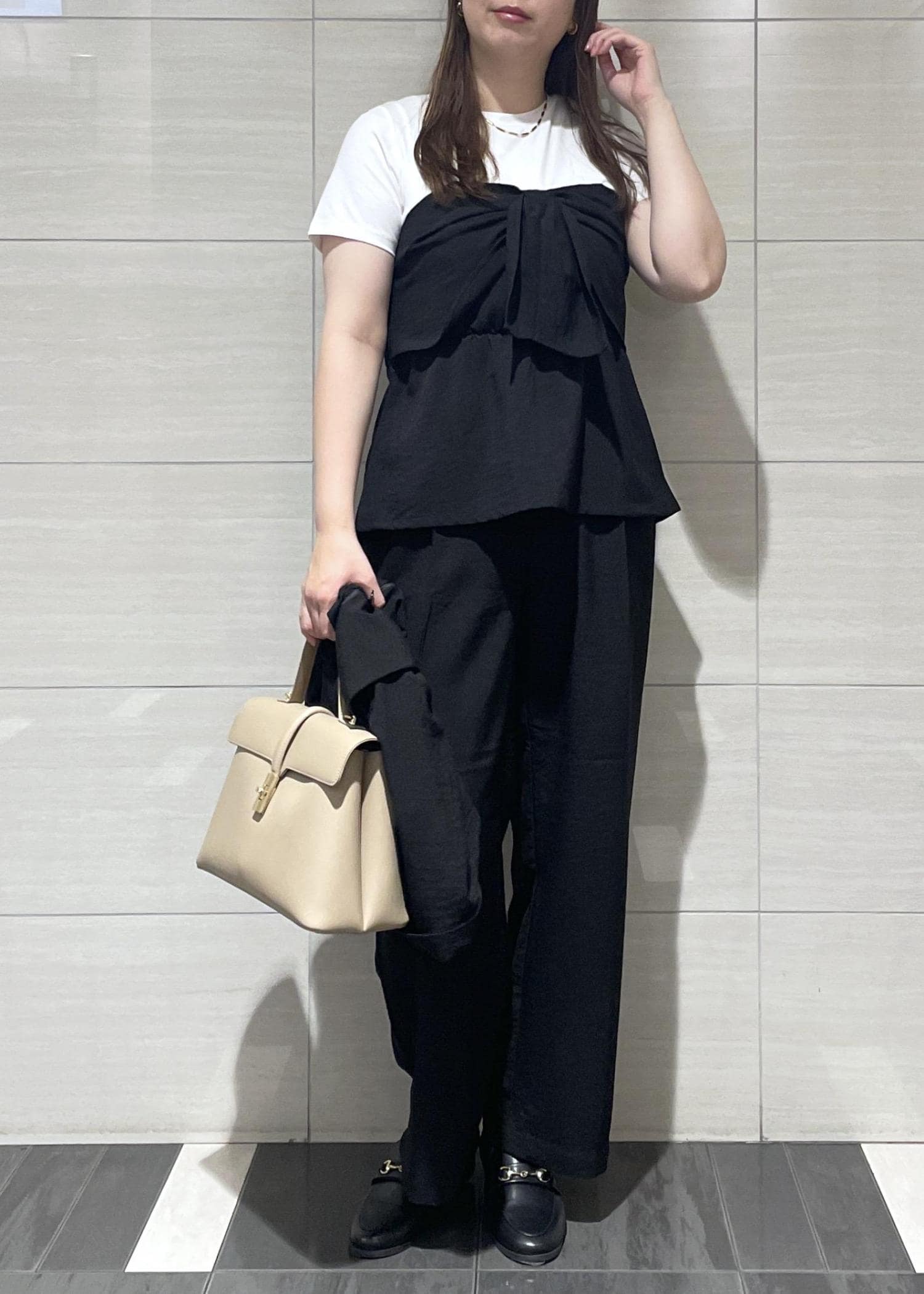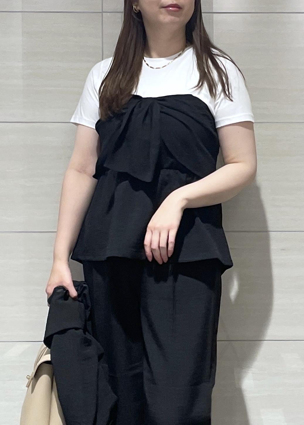 VIS美easyリネンライクリボンビスチェトップス/イージーケア・接触冷感・セットアップ対応ブラック / F¥5,489レビュービスチェドッキングのTシャツなので1枚で様になります☺︎