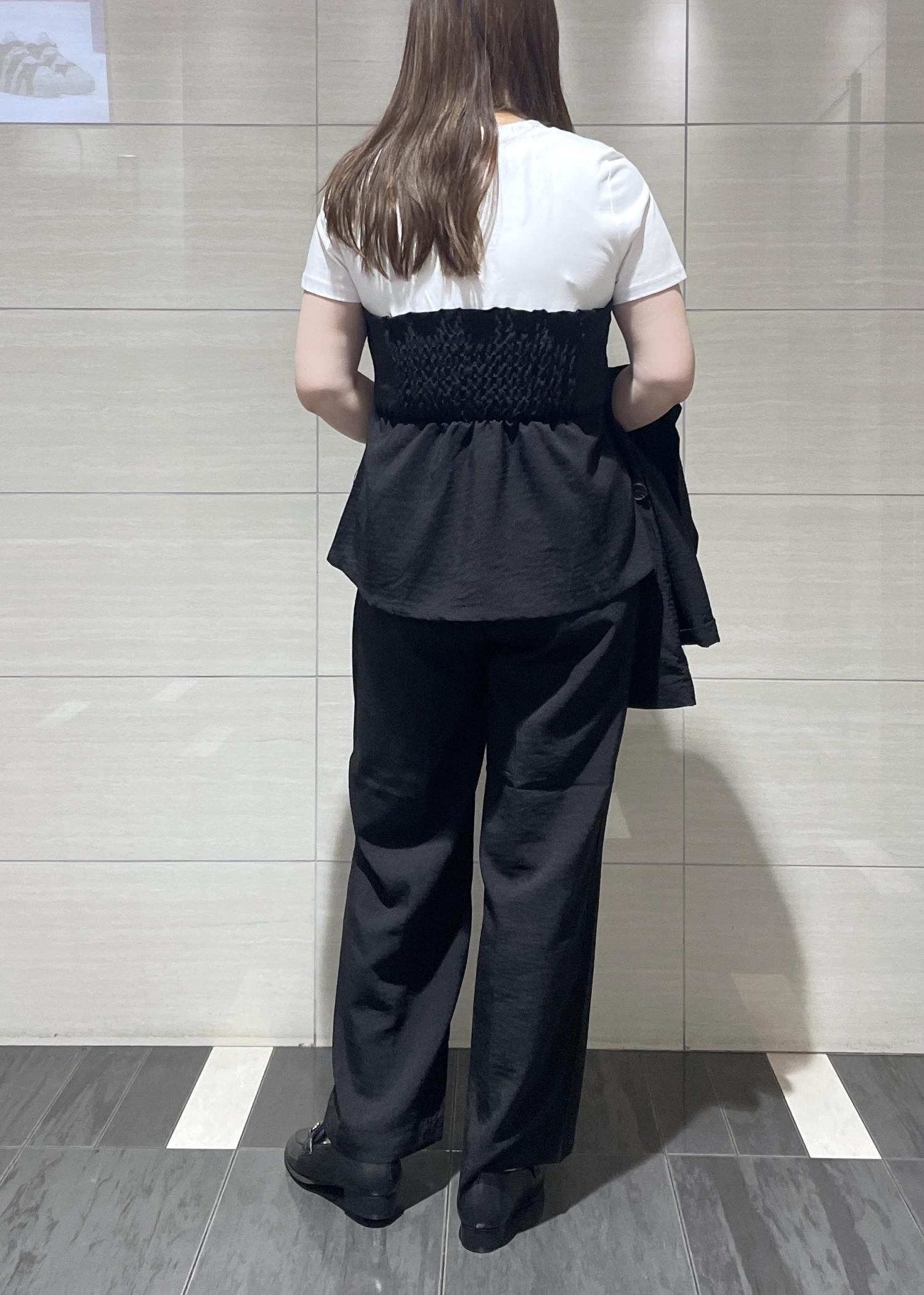 気になる腰周りやお腹が隠れるので安心感があり、上半身厚みがありますが後部分がゴムになっているので窮屈感なく着用できました。 -