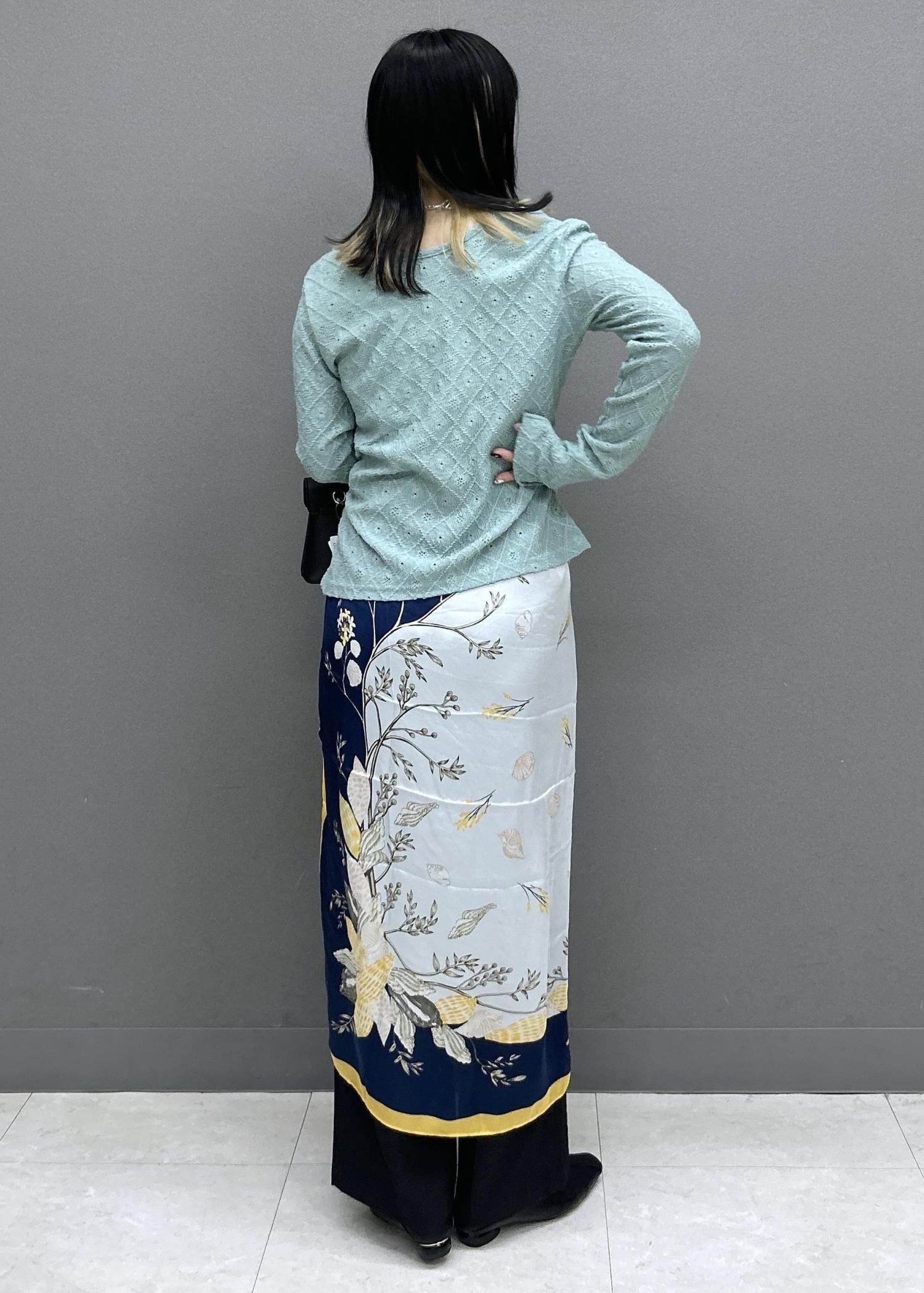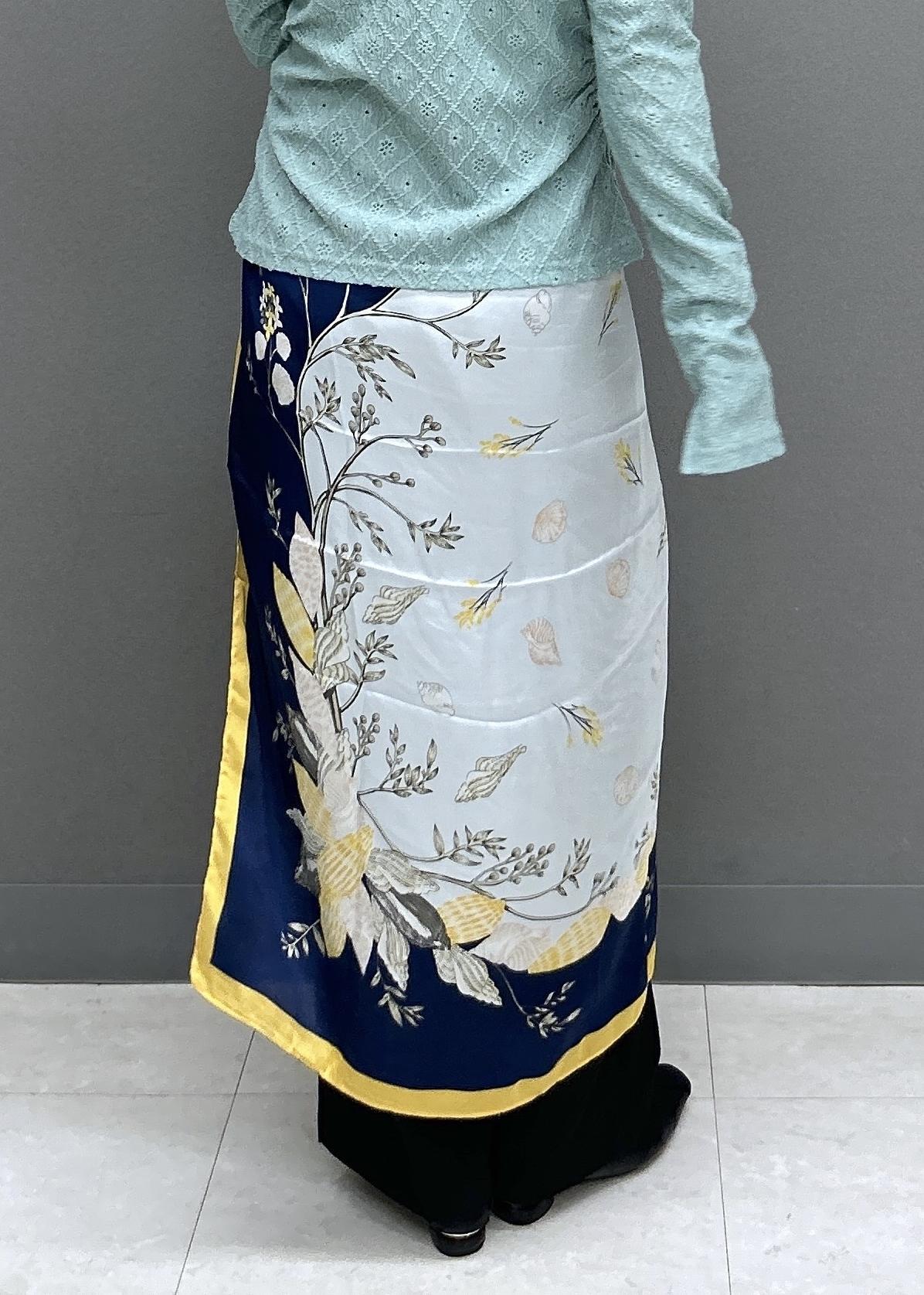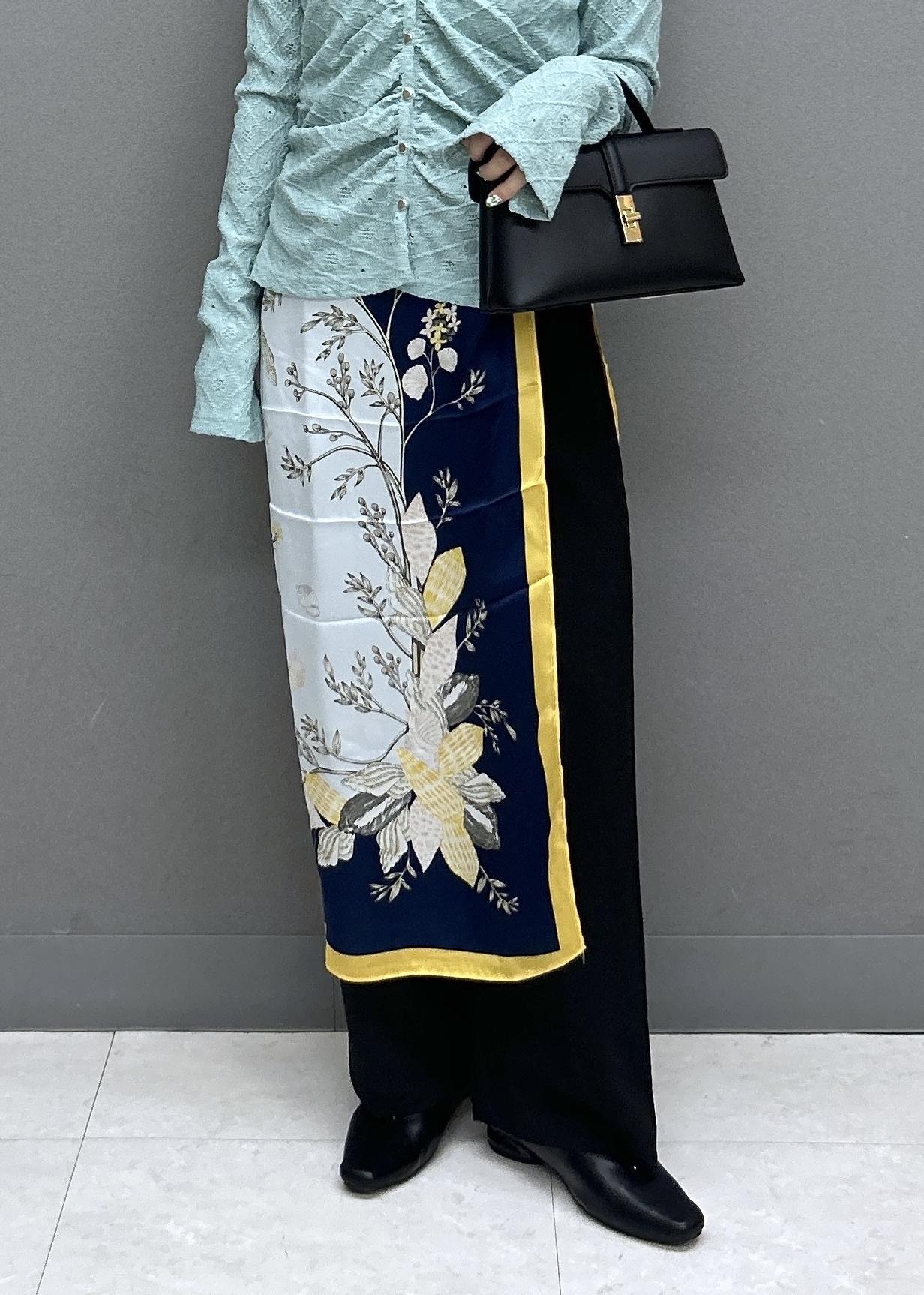 ベージュ系の柄はとっても写真映えするので、腰巻きで柄を見せるのがおススメです♡