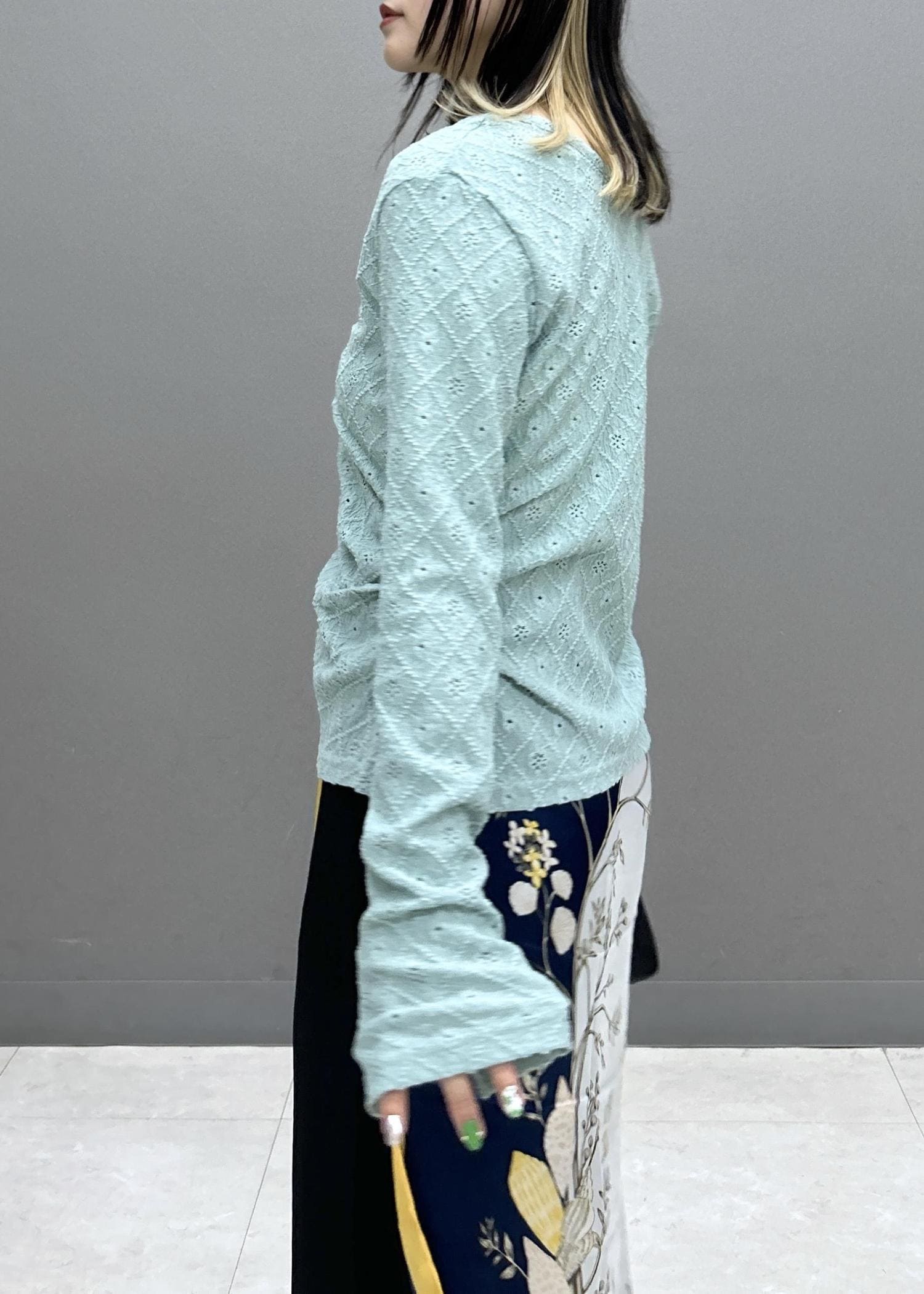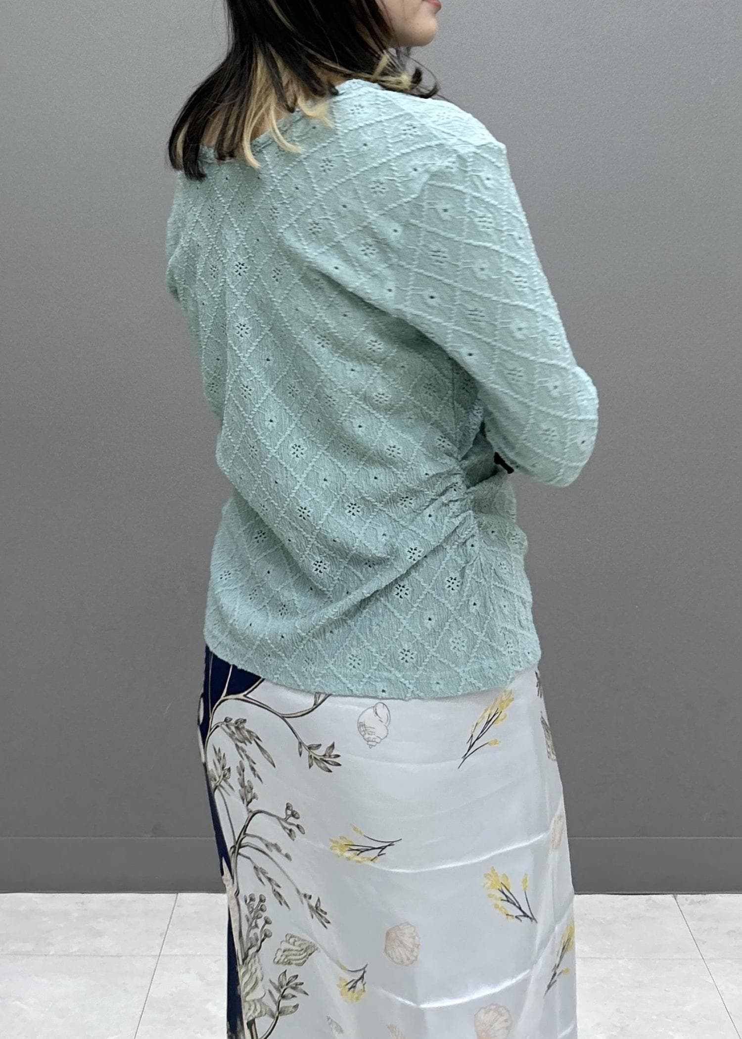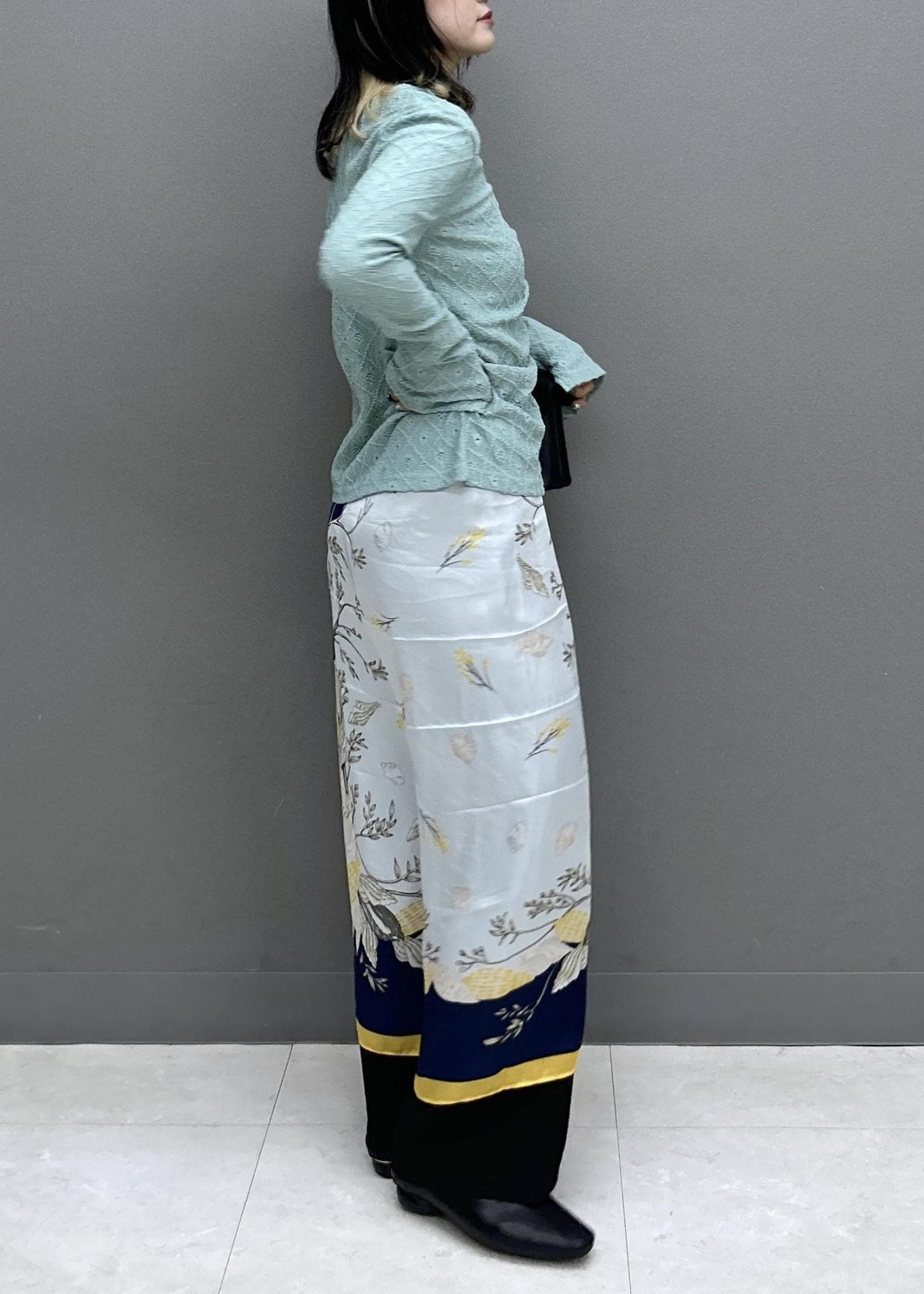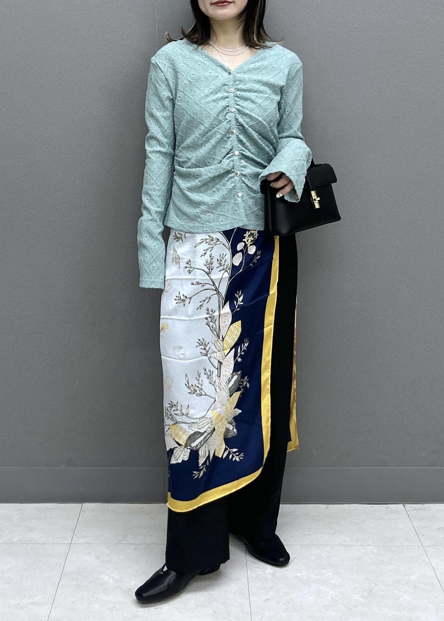 ベージュ系の柄はとっても写真映えするので、腰巻きで柄を見せるのがおススメです♡