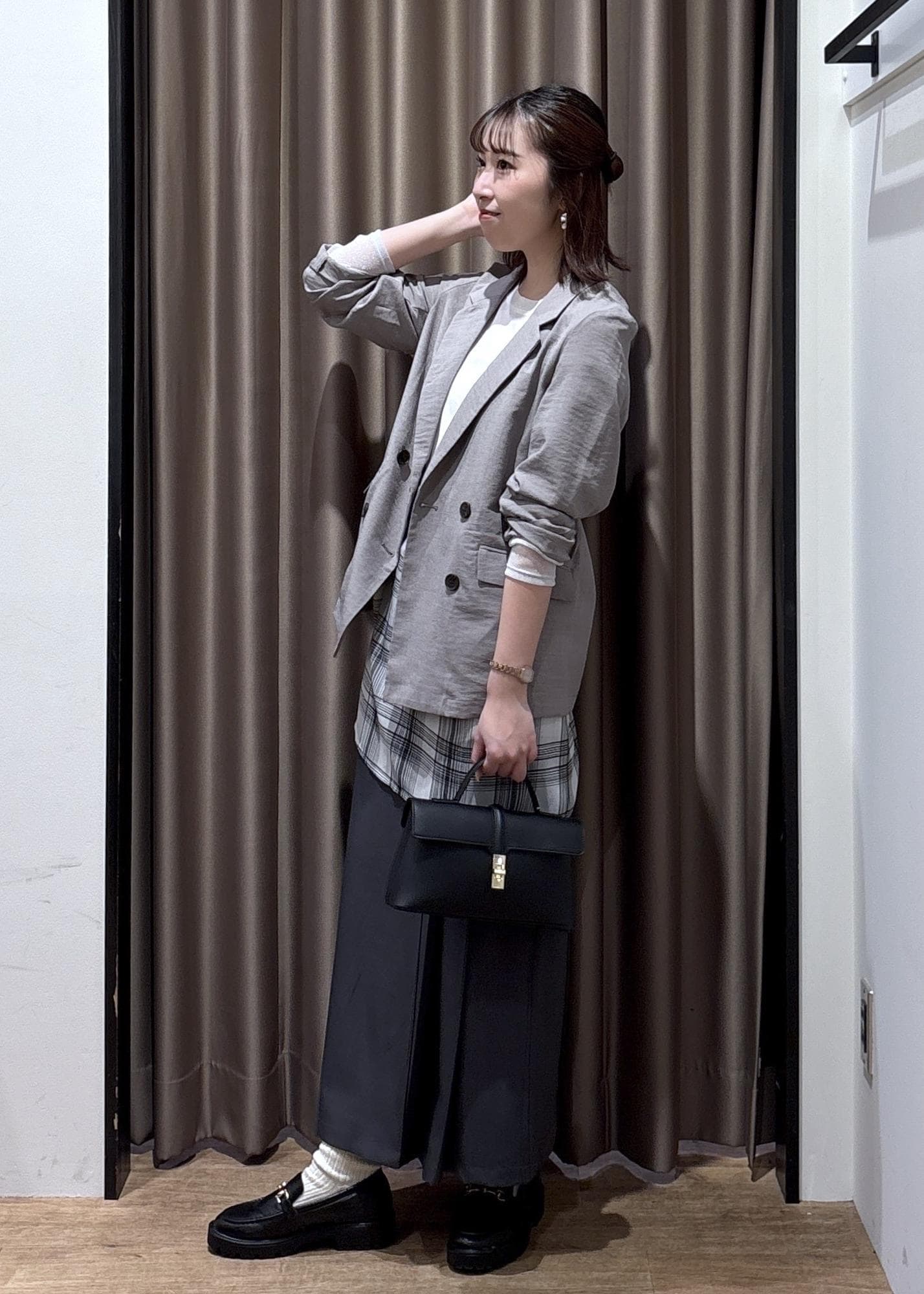 t Tシャツやドレープニット、ジャケットを合わせたコーデがおすすめです!