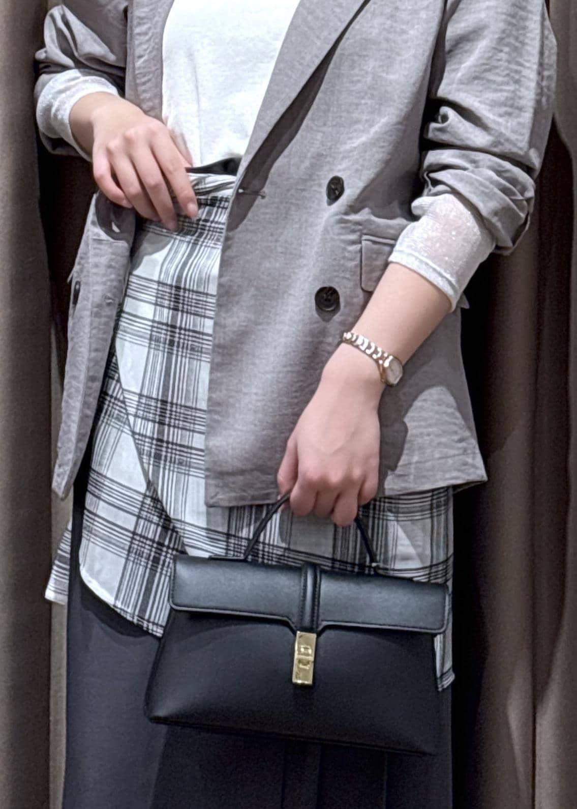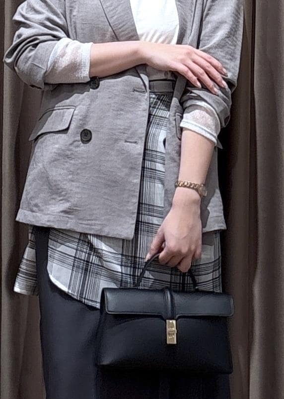 柔らかく落ち感のあるチェック柄と表面感のあるシアー無地素材。