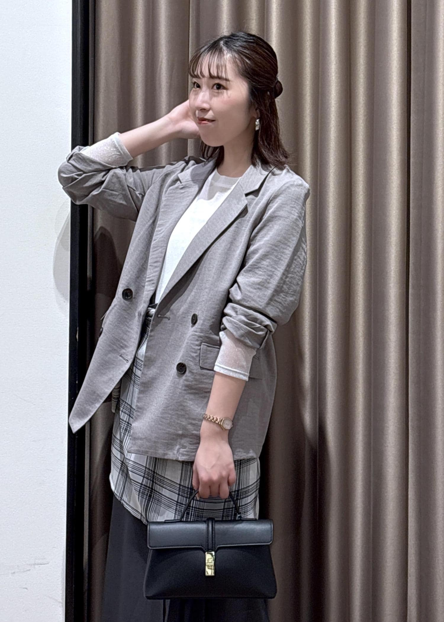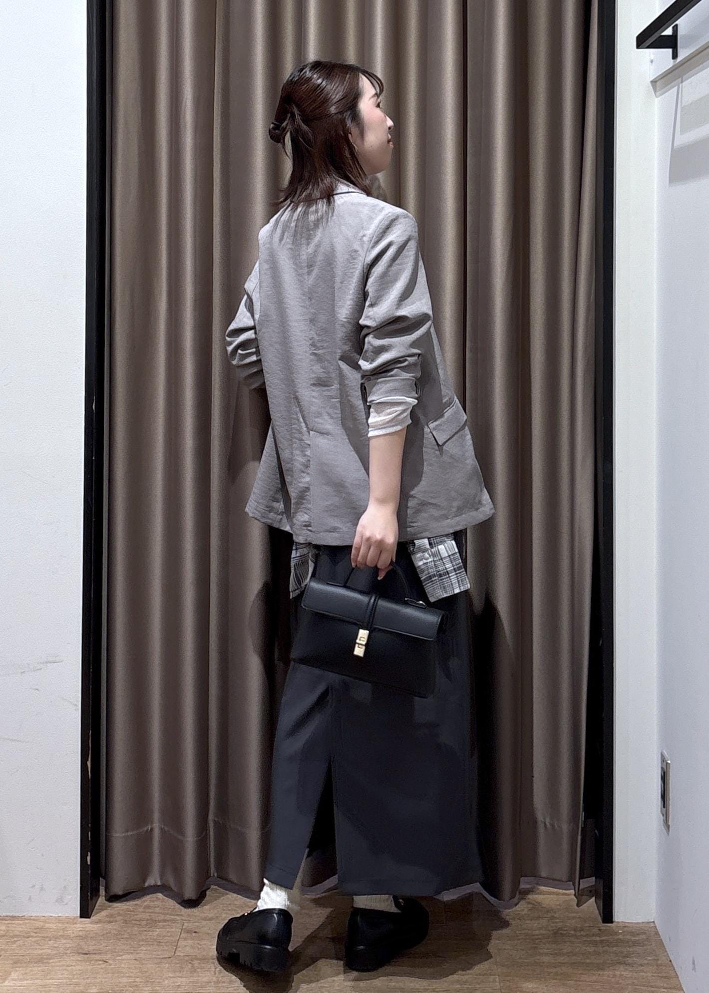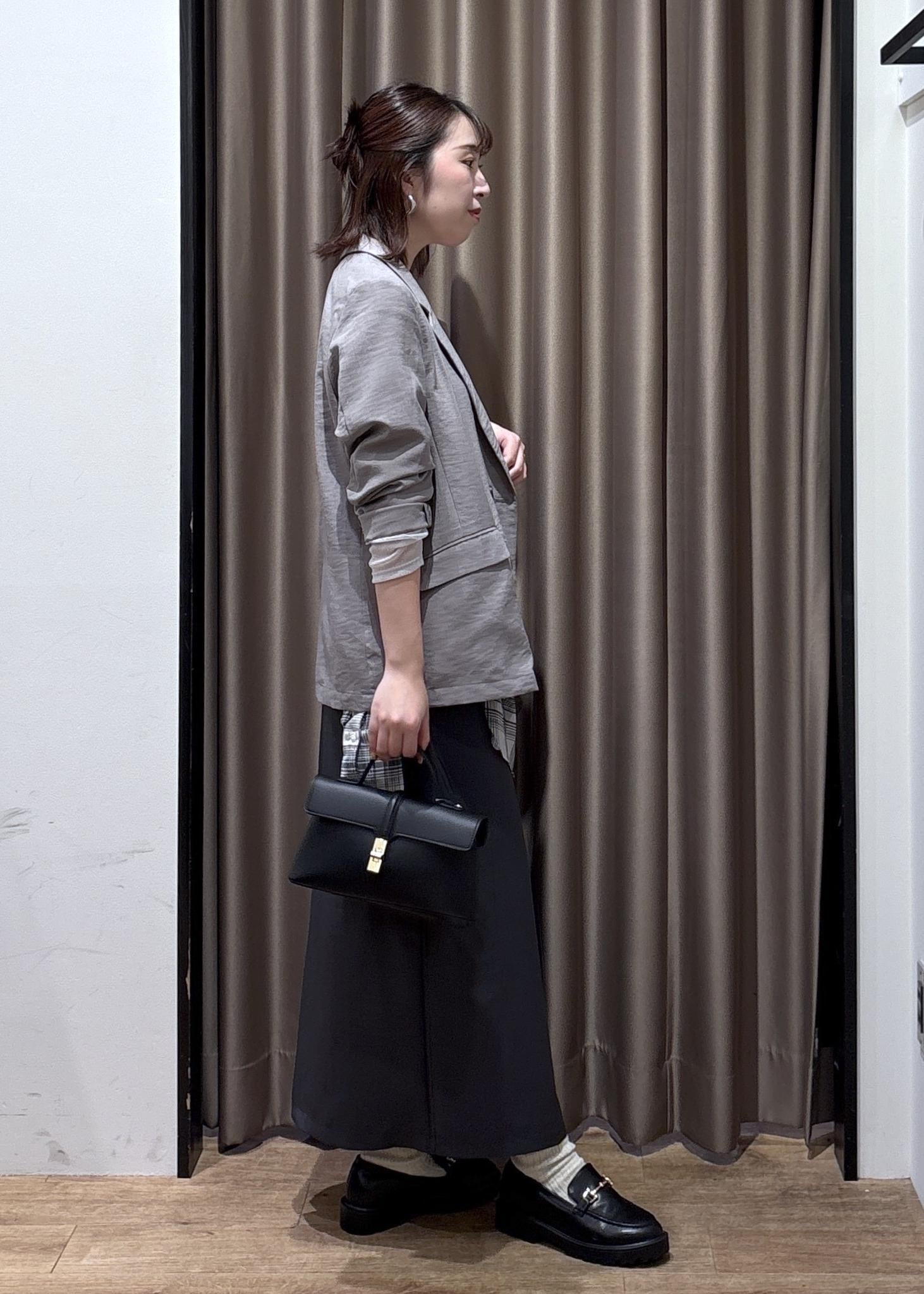 人気アイテム美easyリネンライクジャケットを使ったスカートコーデ。
