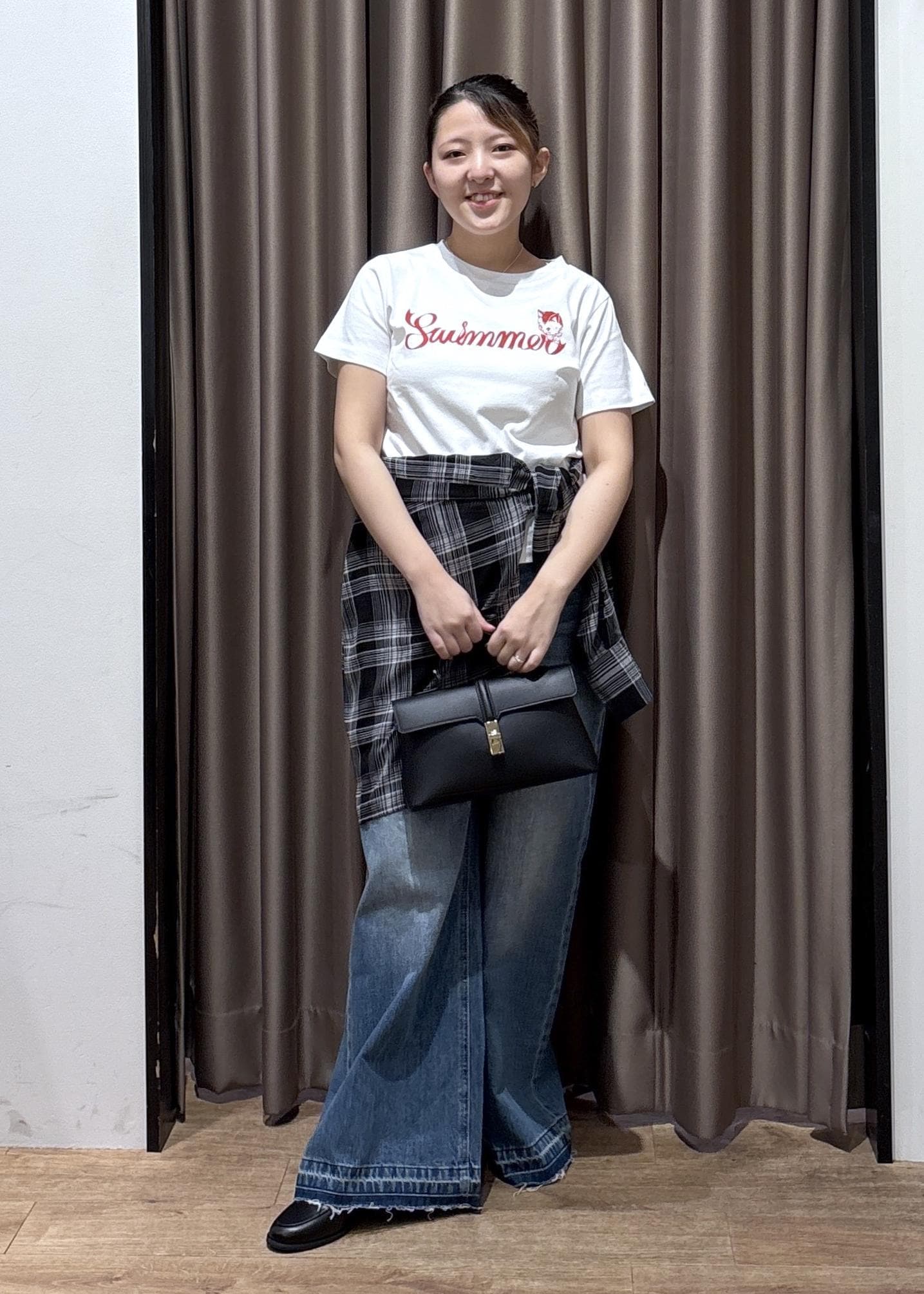 2BUY10%OFFVISカラーフレアデニムパンツベージュ / M¥8,899レビュー153cm、Mサイズ着用で少し高さのある靴を履いてギリギリつかない丈感です!