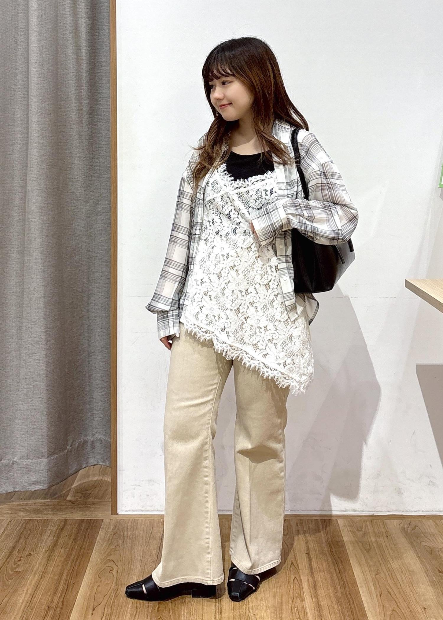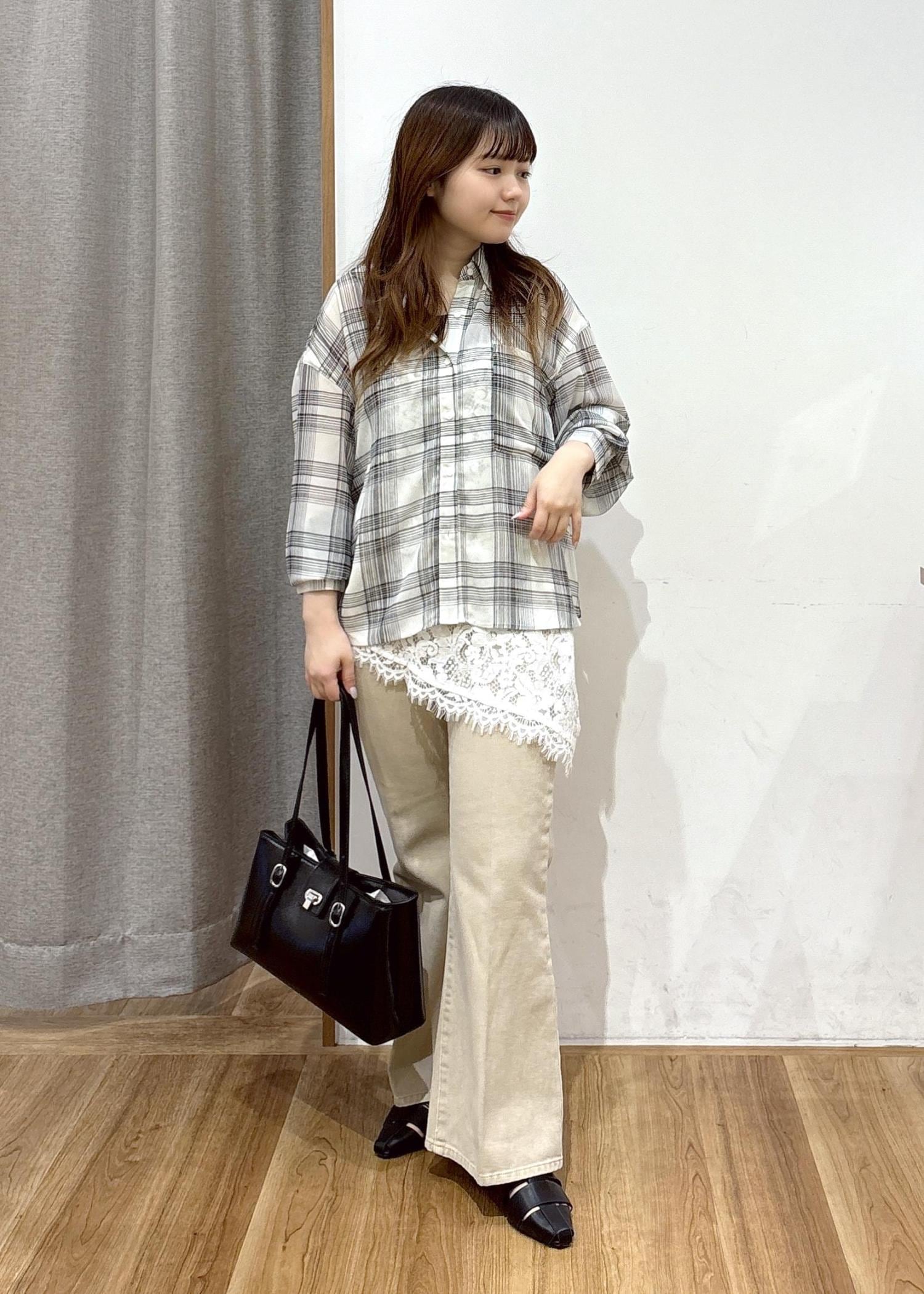 春から夏まで使いやすいサラッとした生地や、透け感のあるレース、シアーのアイテムを組み合わせてコーディネートしてみました。