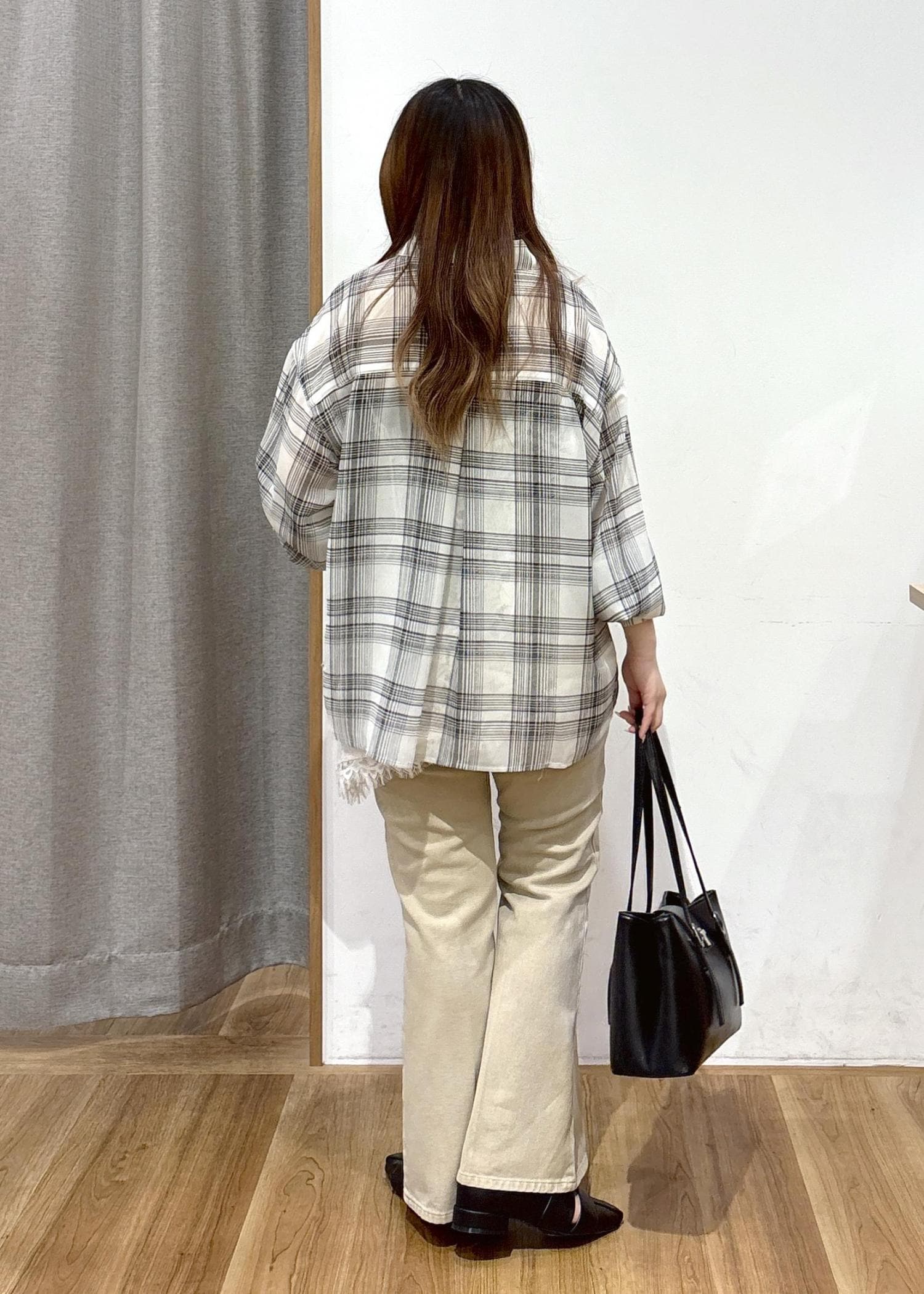 2BUY10%OFFVISチェック&シアーオーバーシャツホワイト系 / F¥5,489レビュー【着用感】